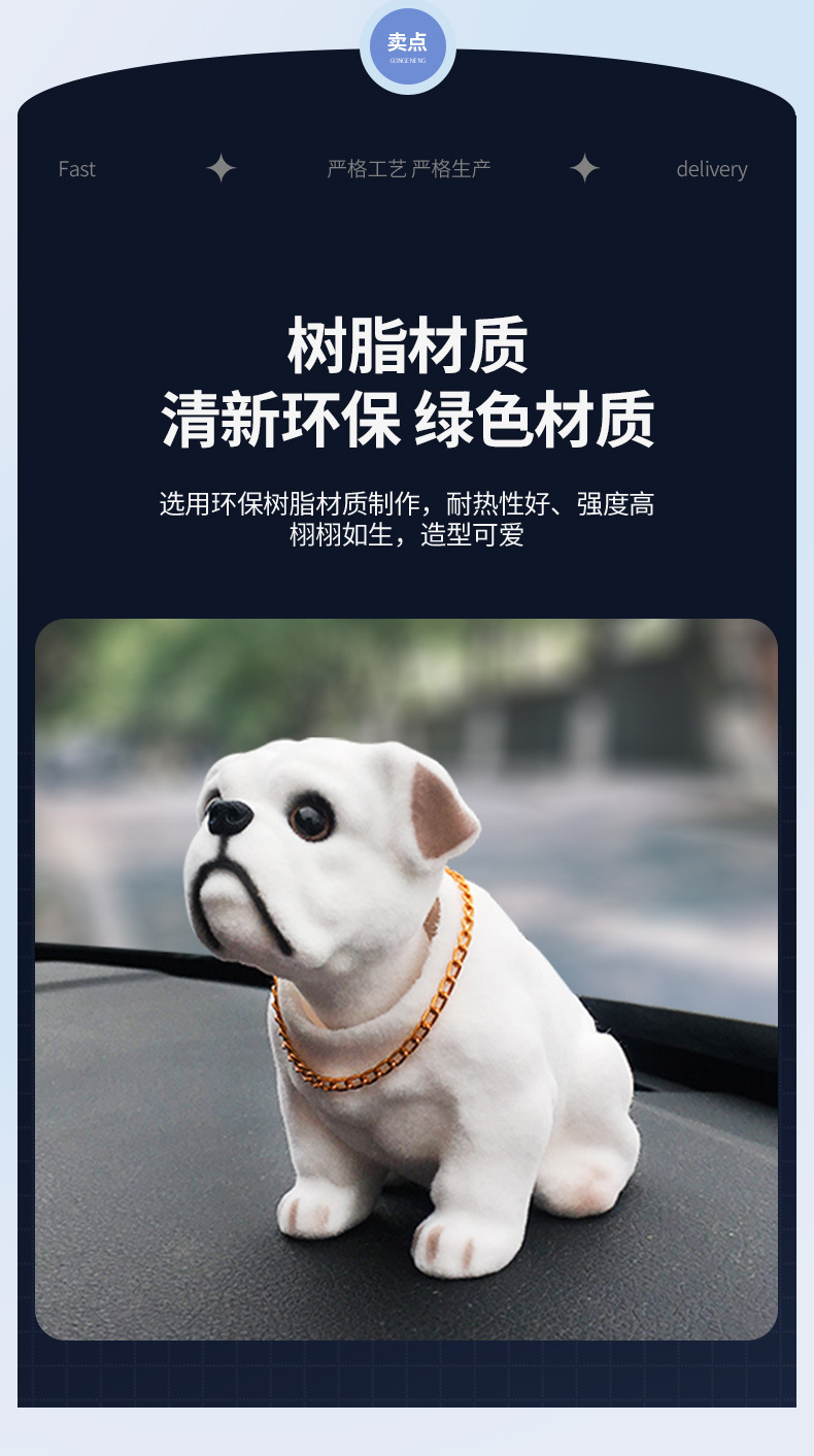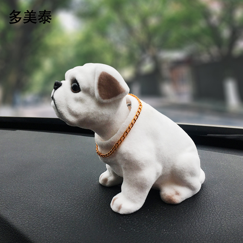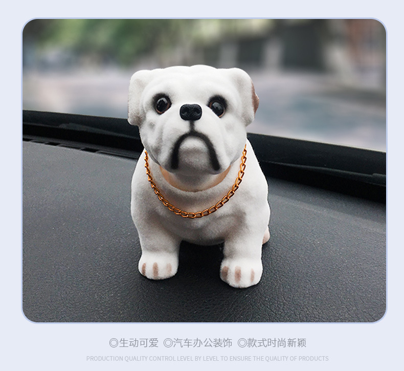 现货批发中控台车内装饰品树脂摇头狗动物斗牛犬创意可爱车载摆件