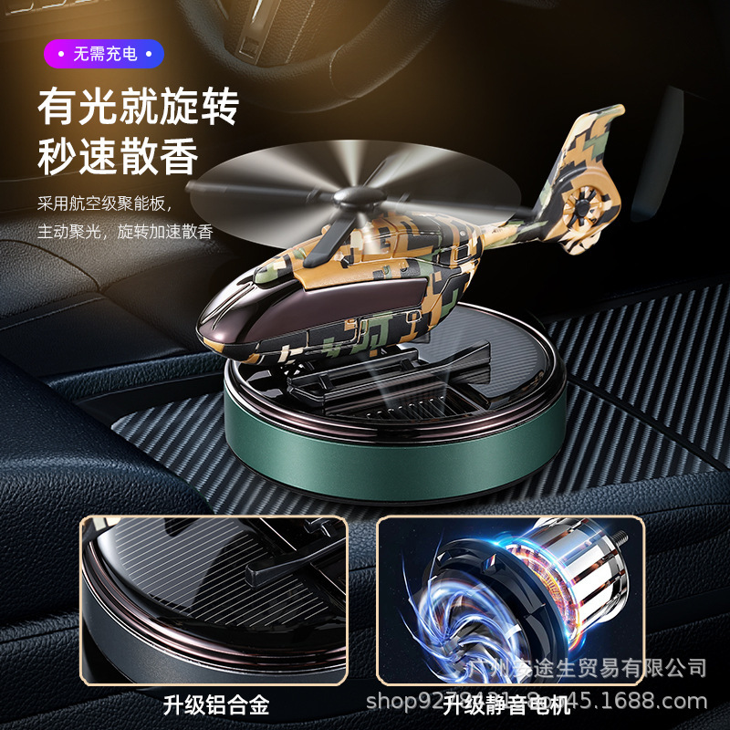 太阳能旋转车载直升机香薰创意汽车香水车载香氛飞机香水座摆件