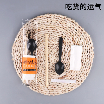 美式勺一次性筷子四件套餐包外卖拌饭打包加硬勺子纸巾牙签四合一