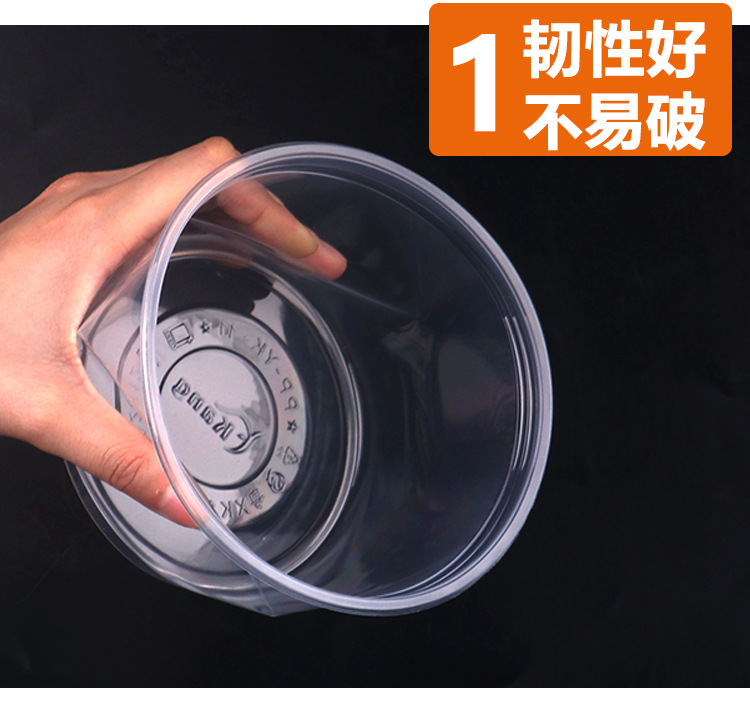 1000碗商用一次性餐盒食品用塑料碗带盖外卖汤粉面圆形打包盒餐具