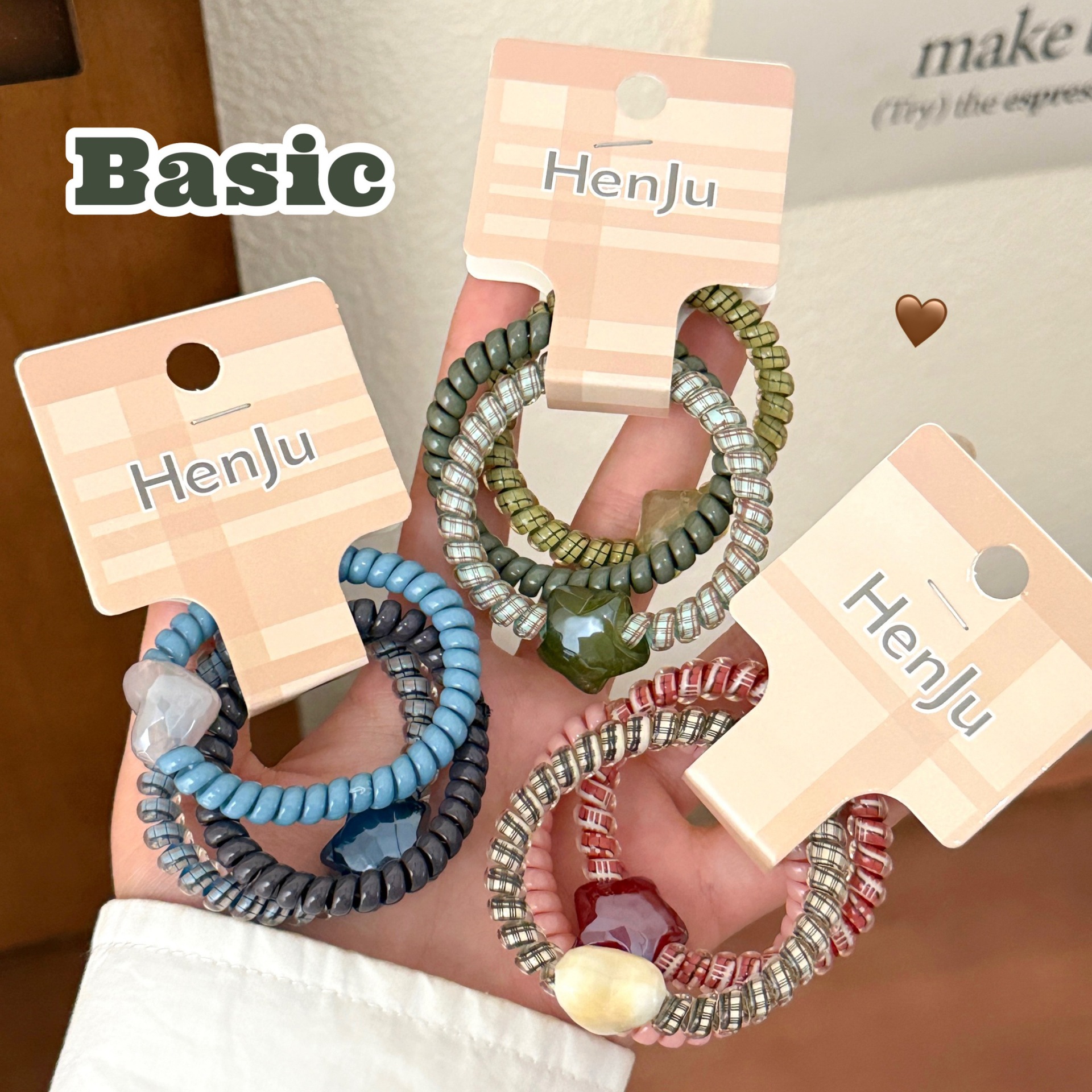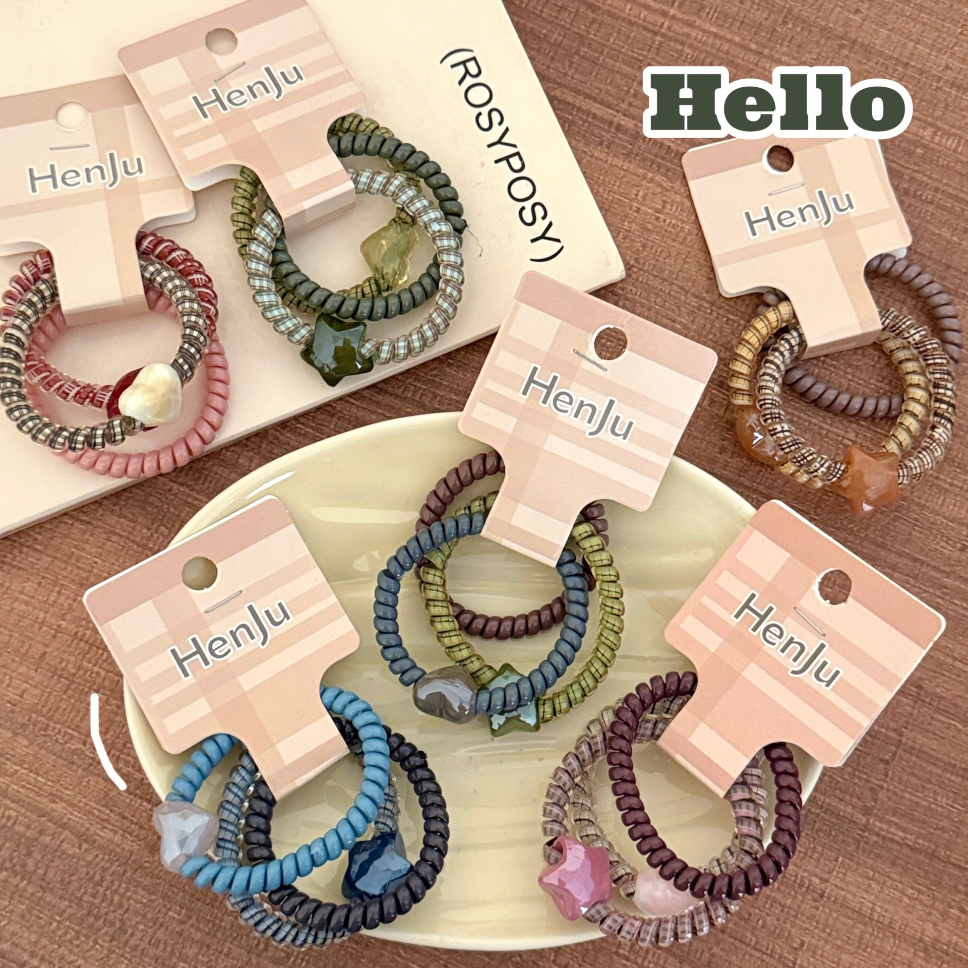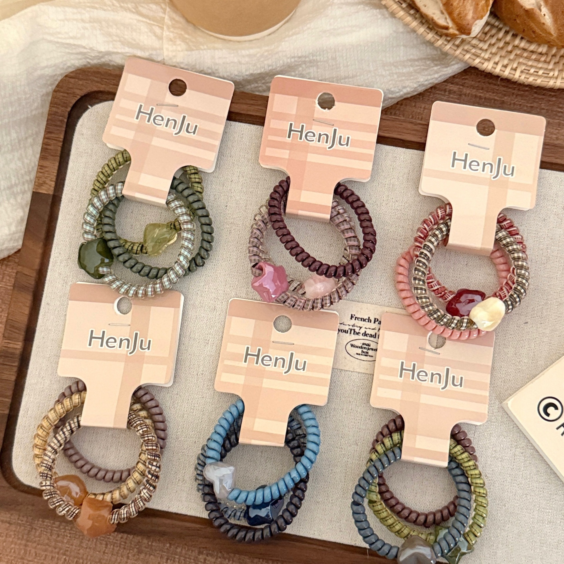 糖果色五角星电话线发圈套装无痕扎马尾头绳皮筋少女百搭气质头饰