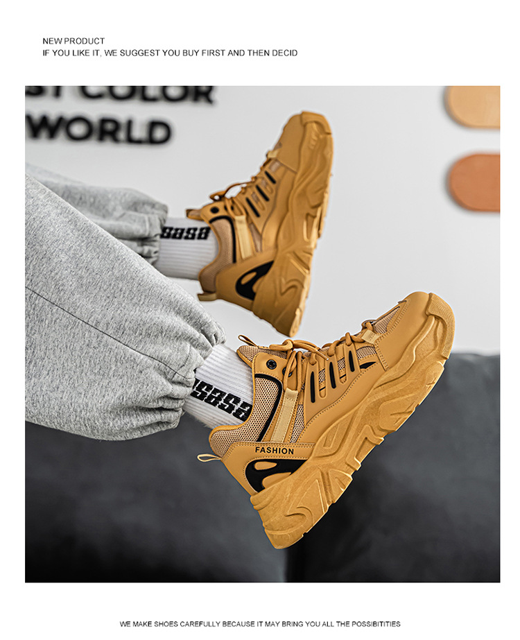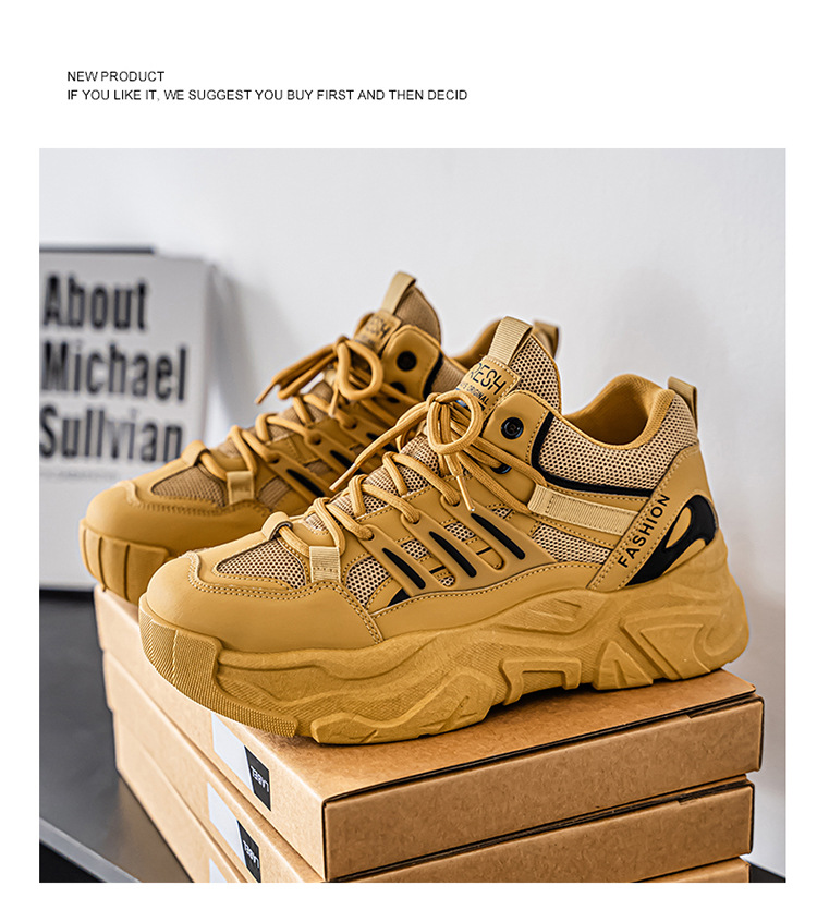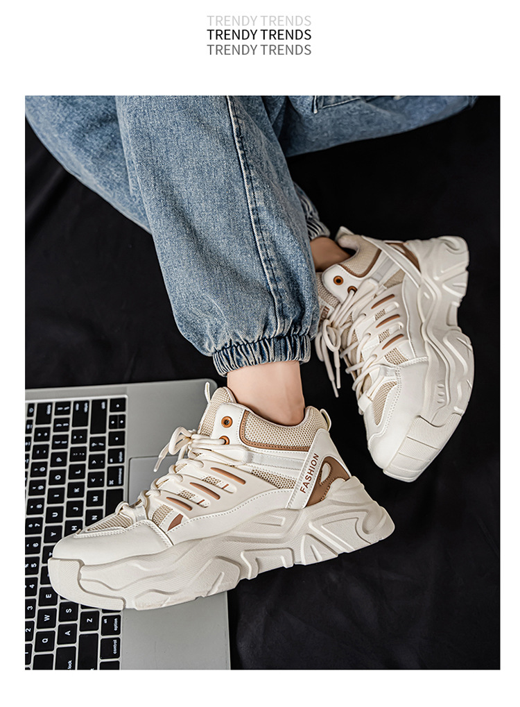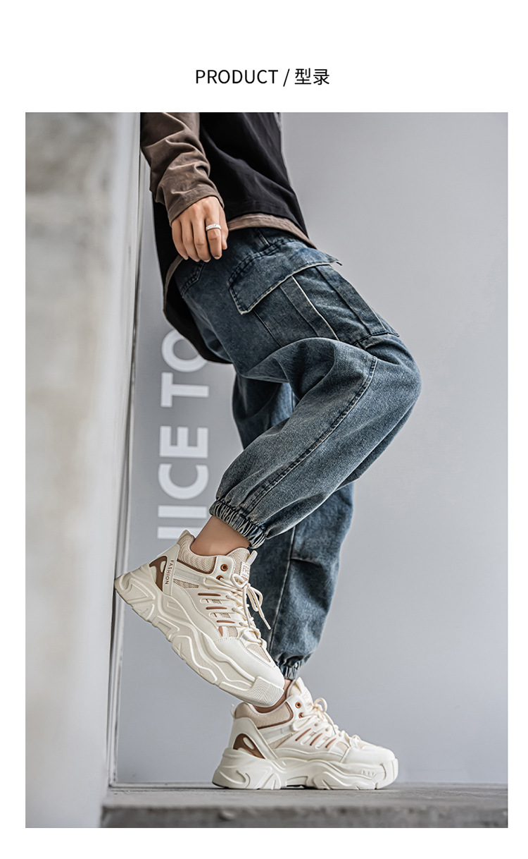 秋季男鞋新款透气运动鞋子男款潮流百搭厚底增高休闲跑步老爹鞋男