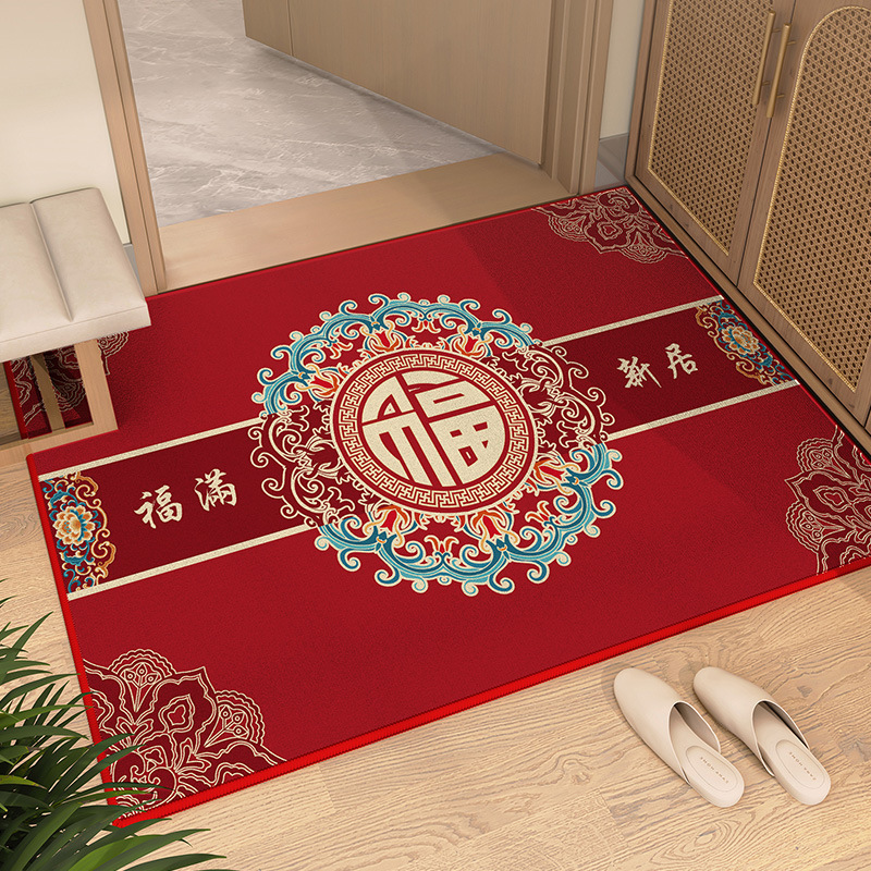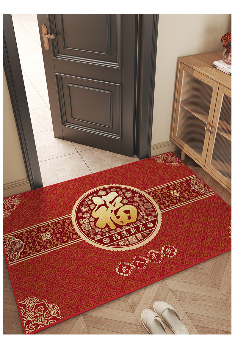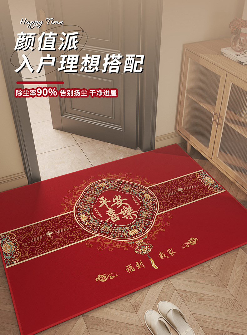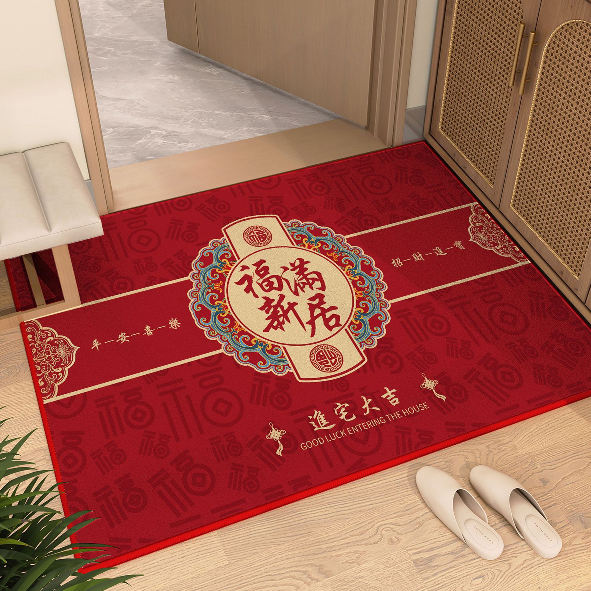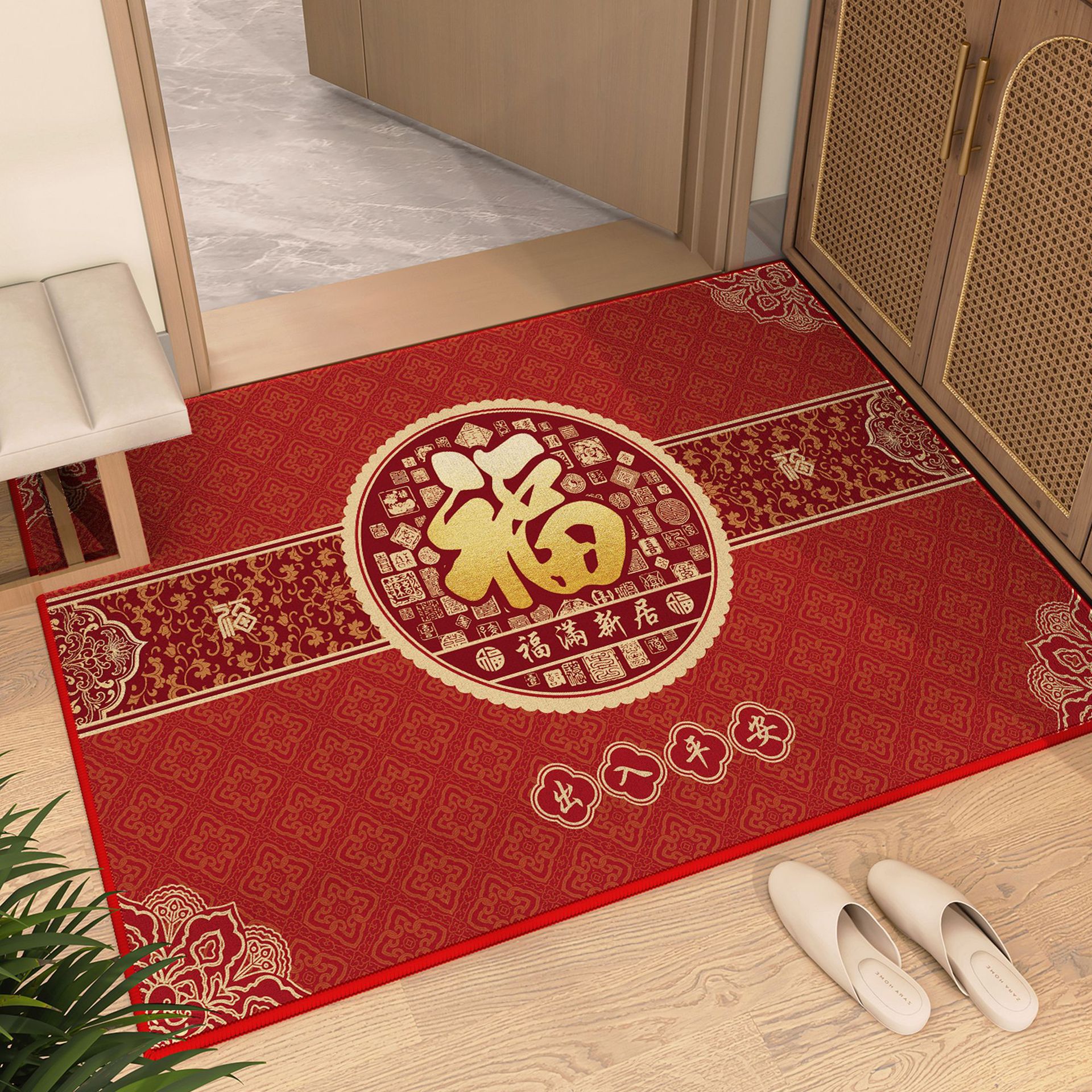 入户门地垫红色乔迁之喜脚垫中式防滑门口可裁剪蹭土进门新居地毯