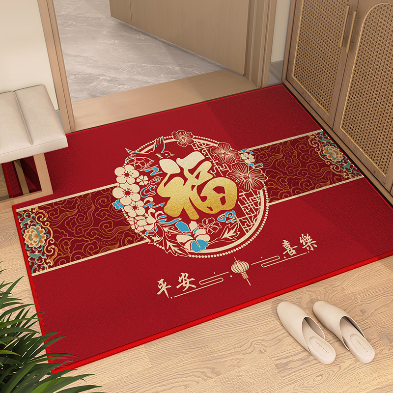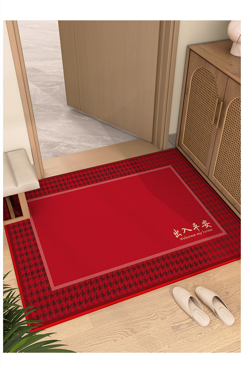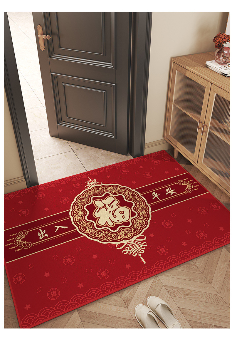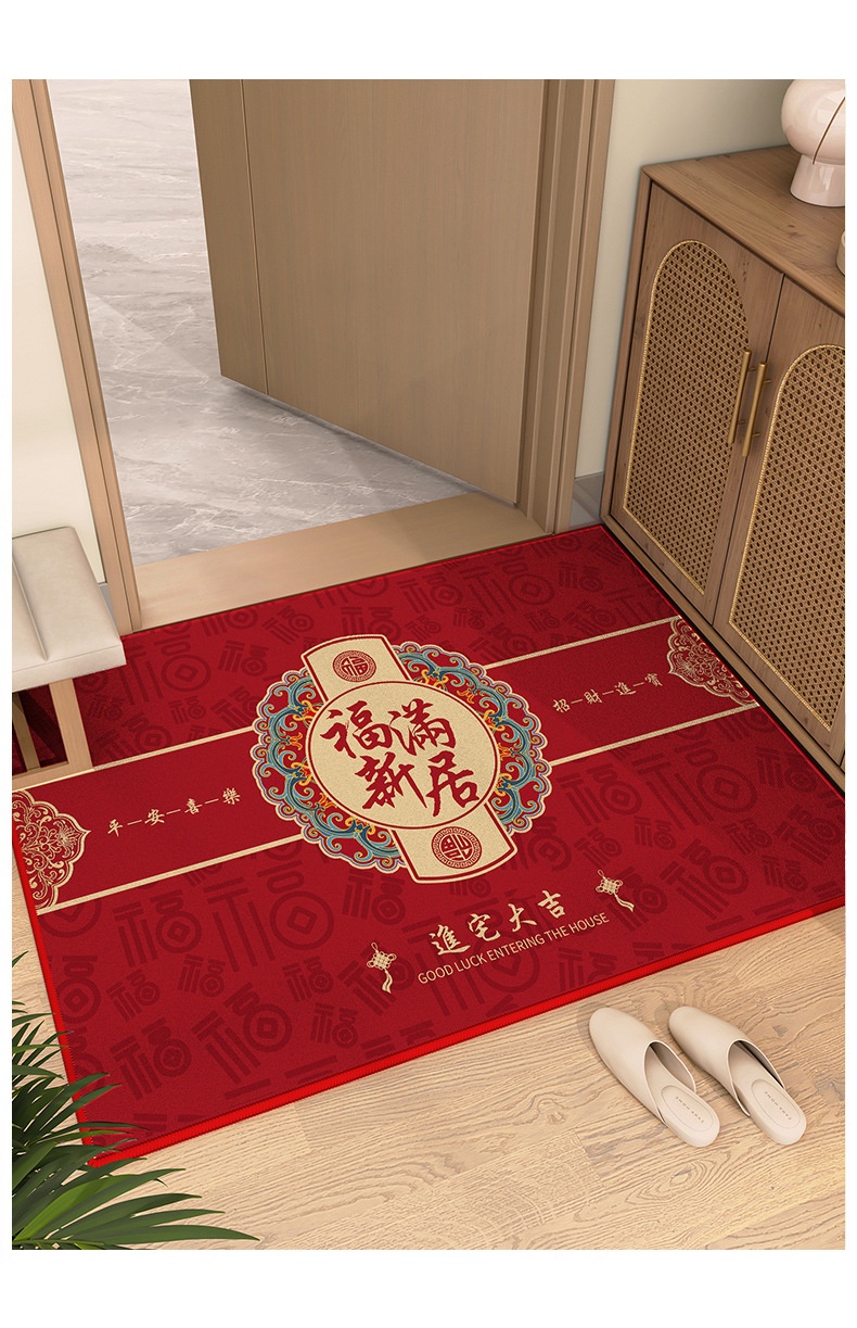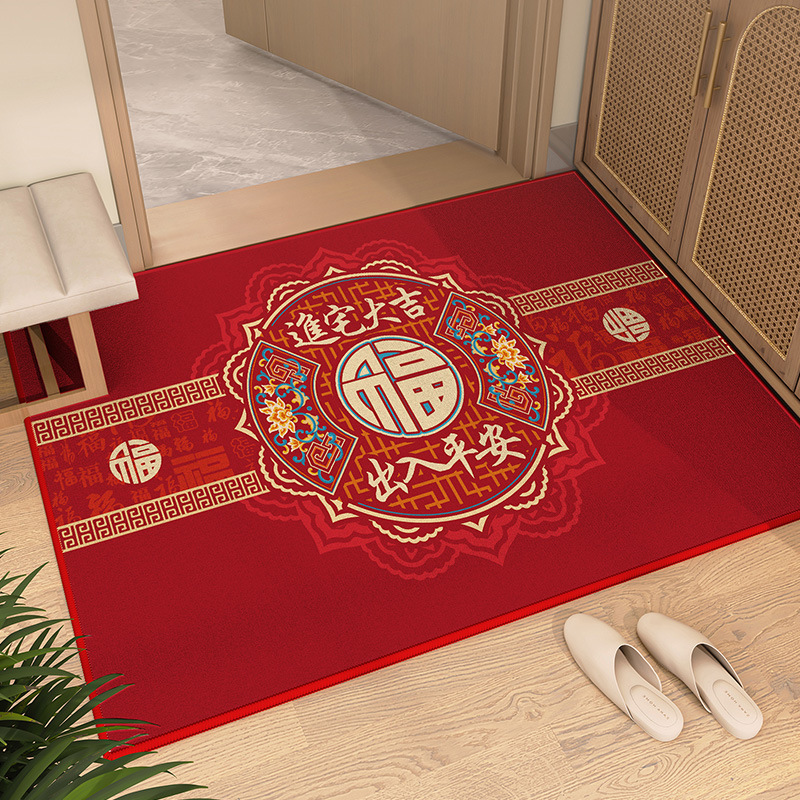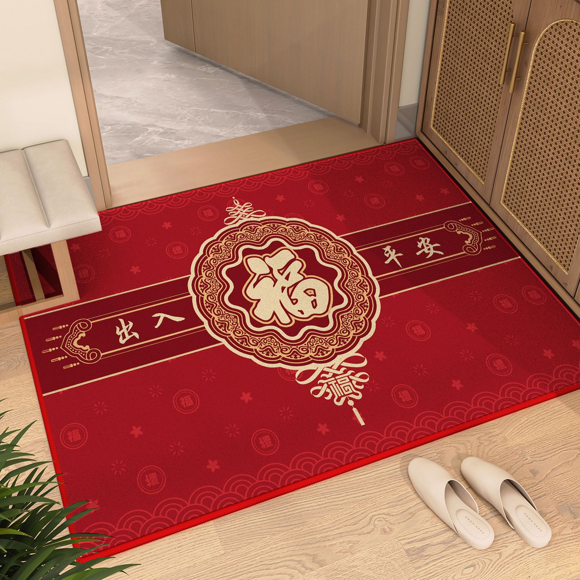入户门地垫红色乔迁之喜脚垫中式防滑门口可裁剪蹭土进门新居地毯