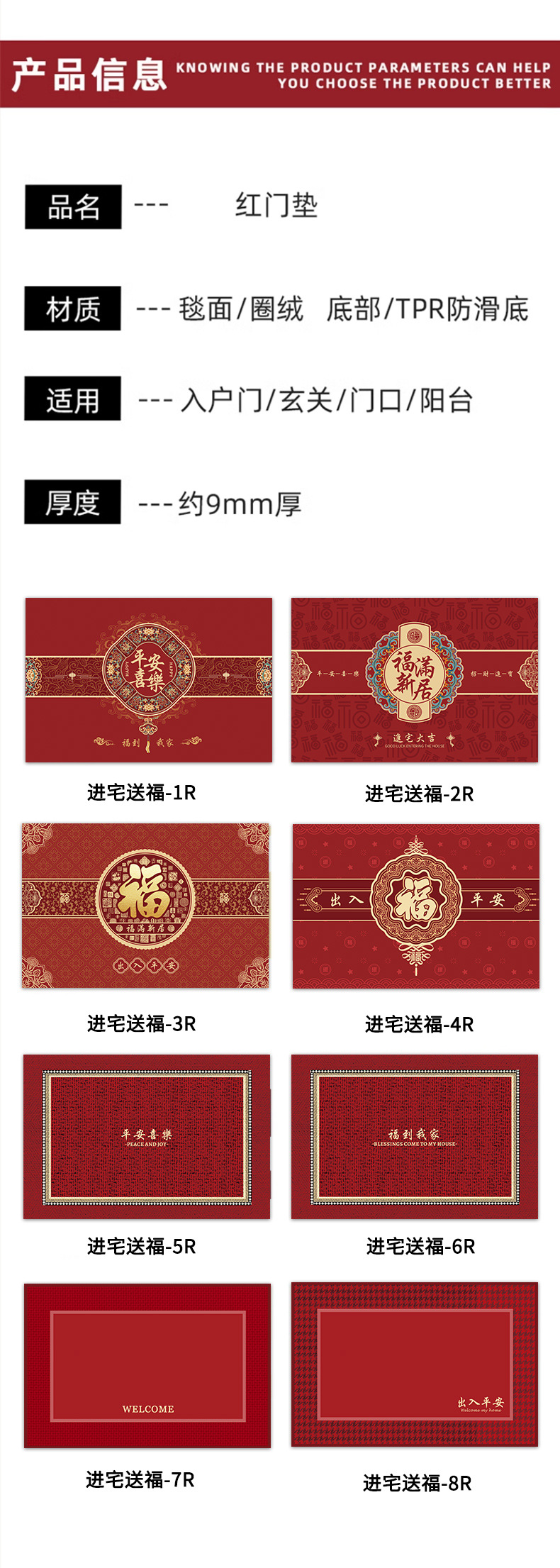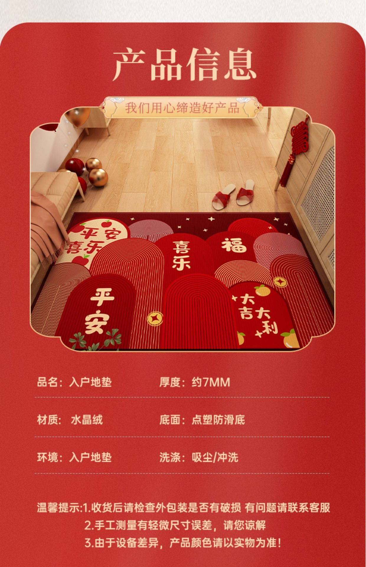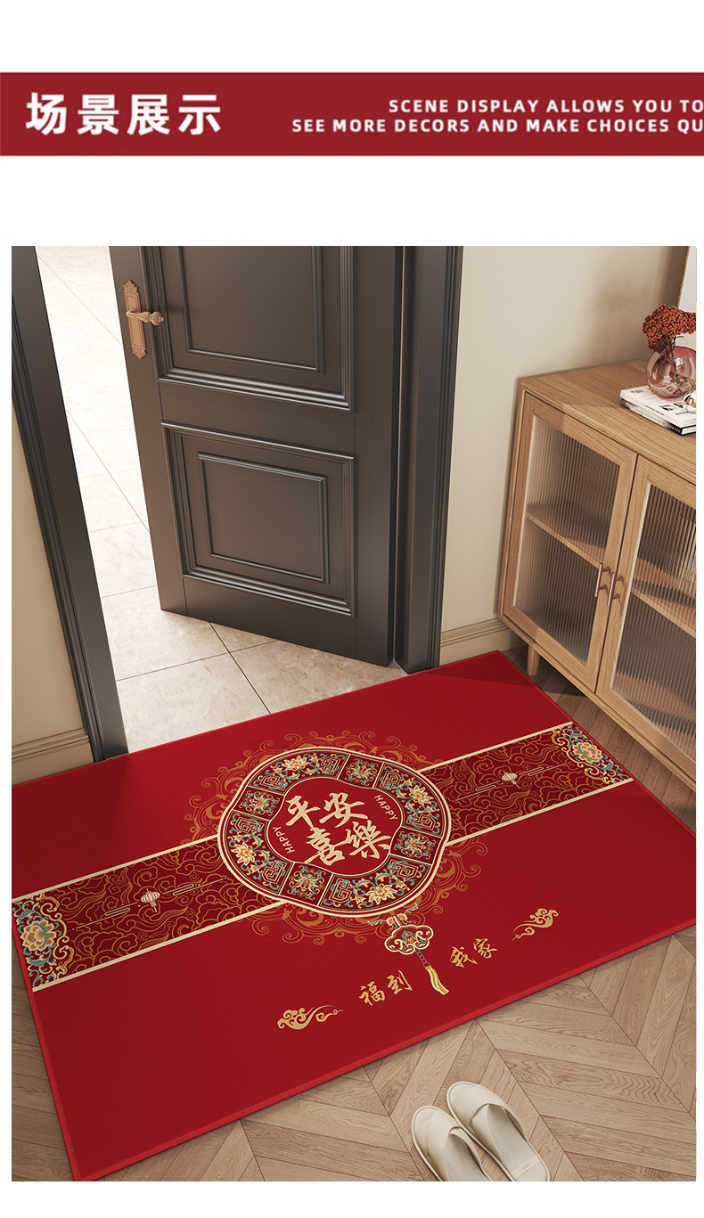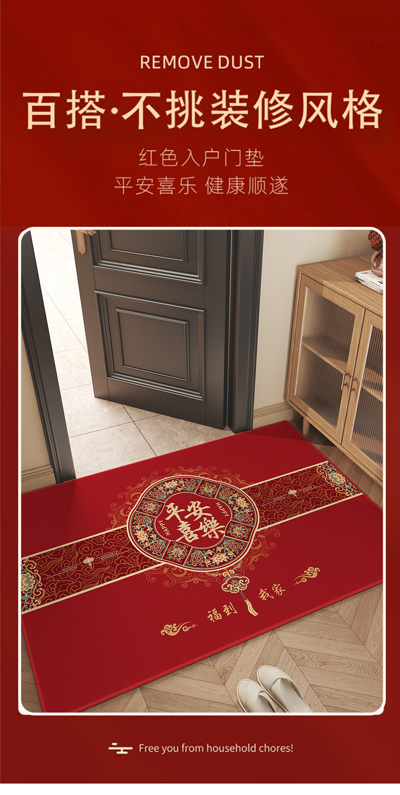 入户门地垫红色乔迁之喜脚垫中式防滑门口可裁剪蹭土进门新居地毯