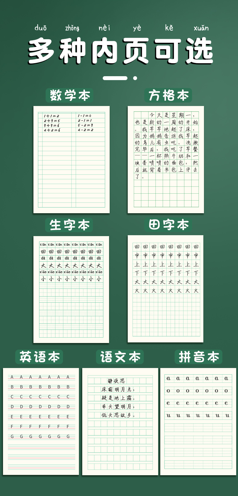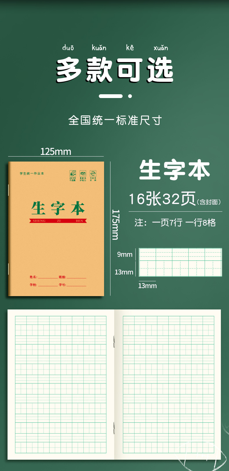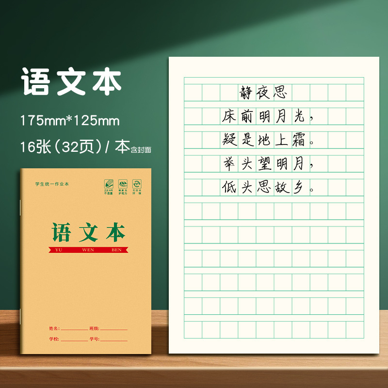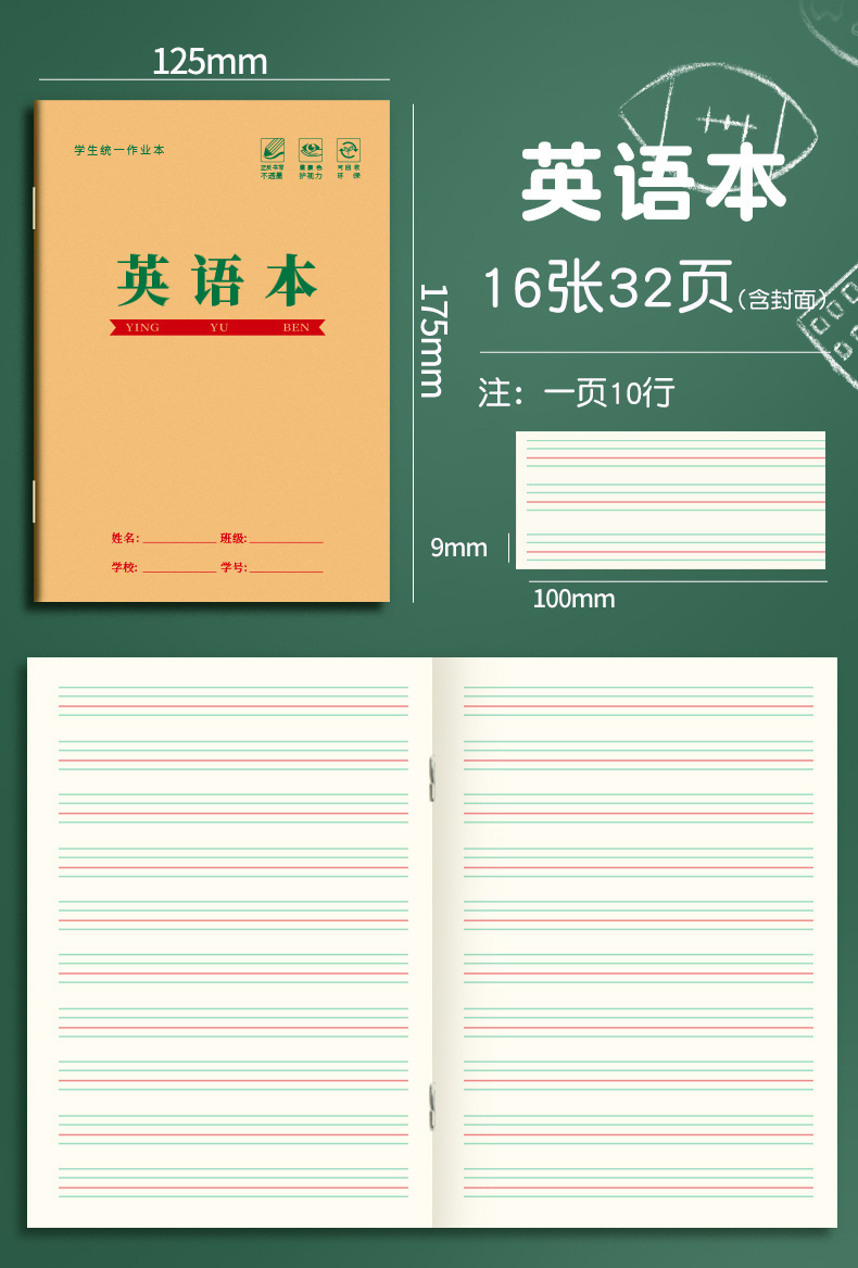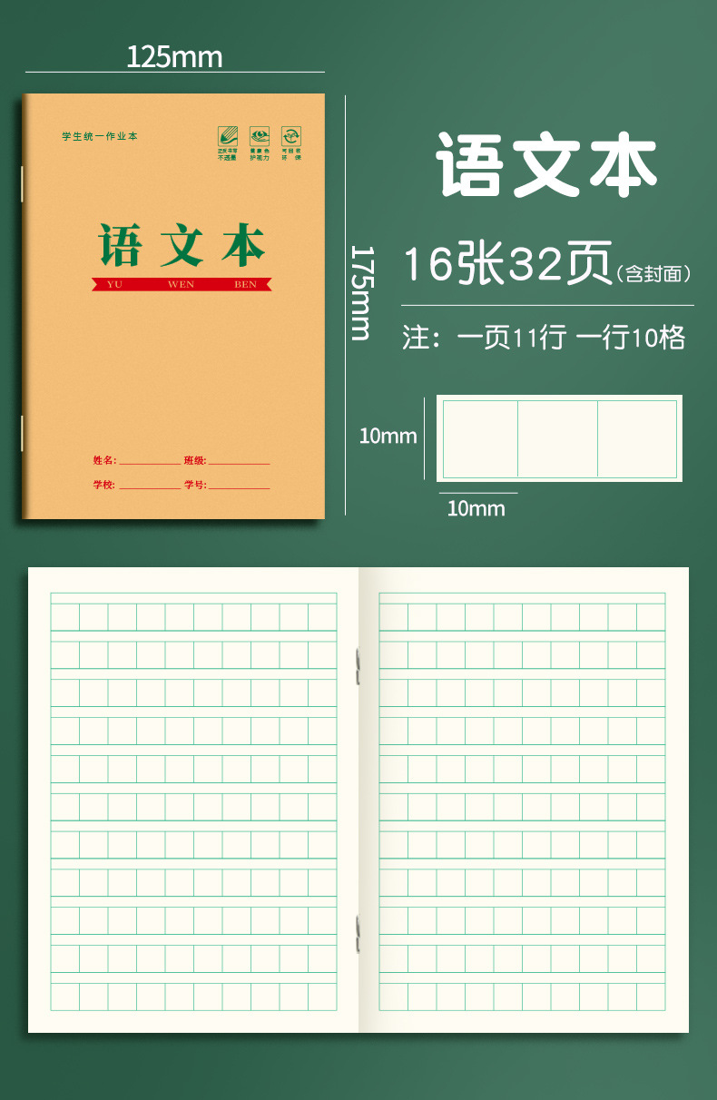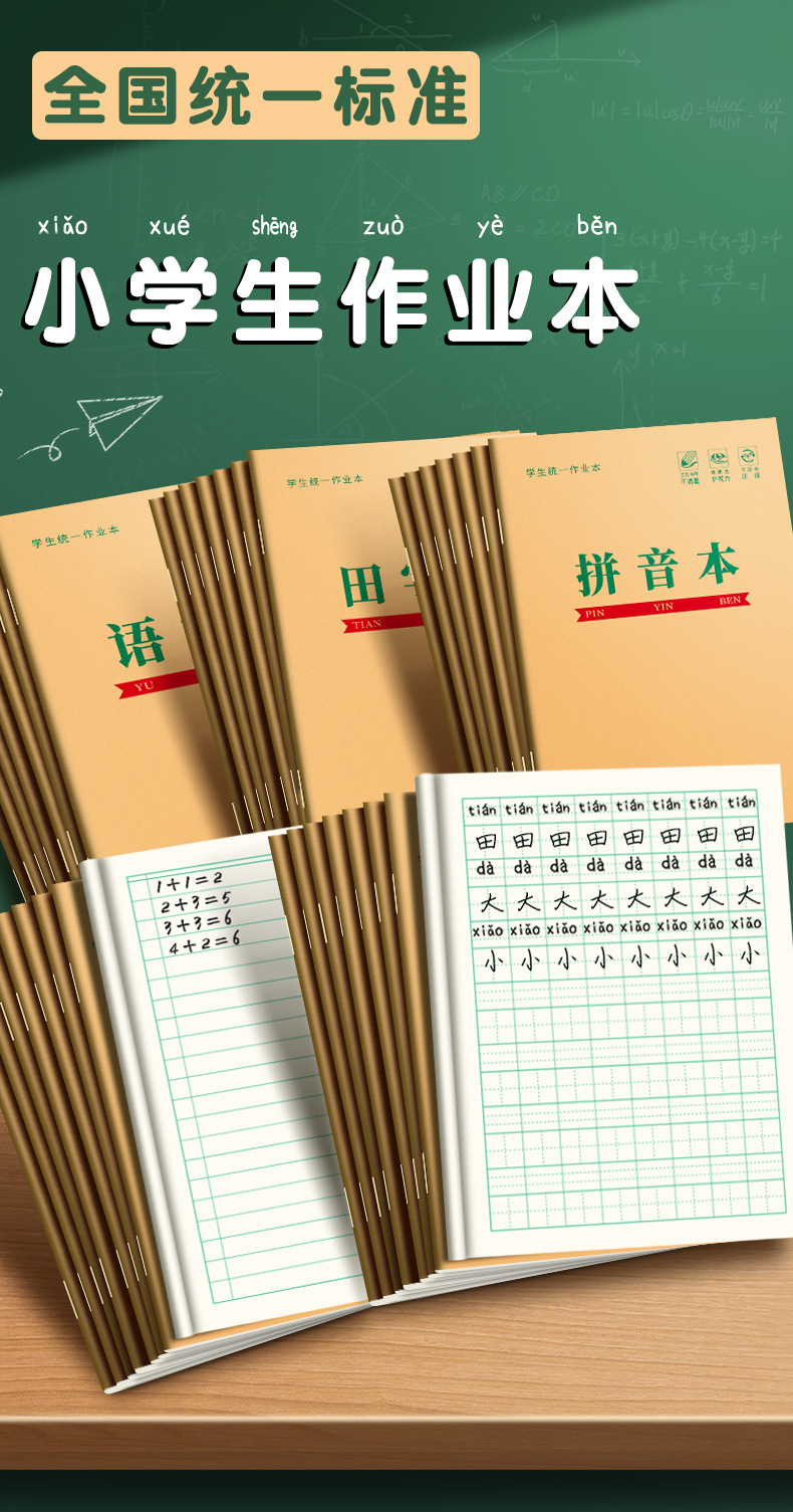 小学生作业本1-3年级幼儿园专用32K语文本田字方格数学拼音生字本