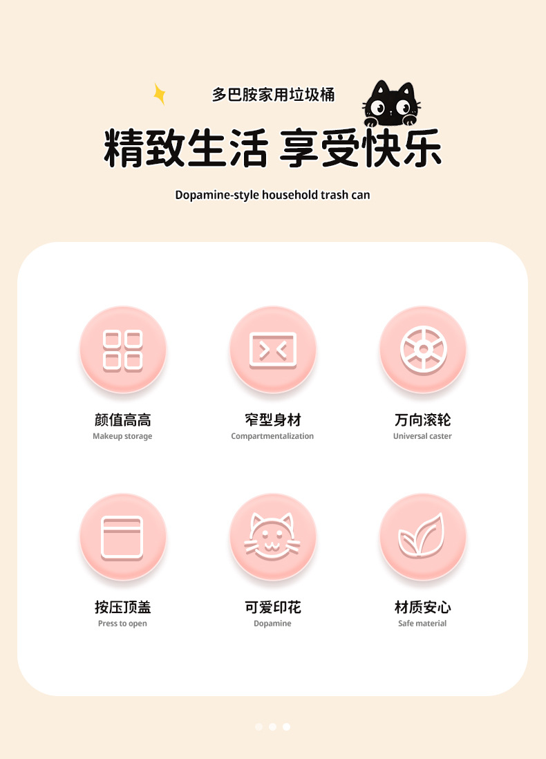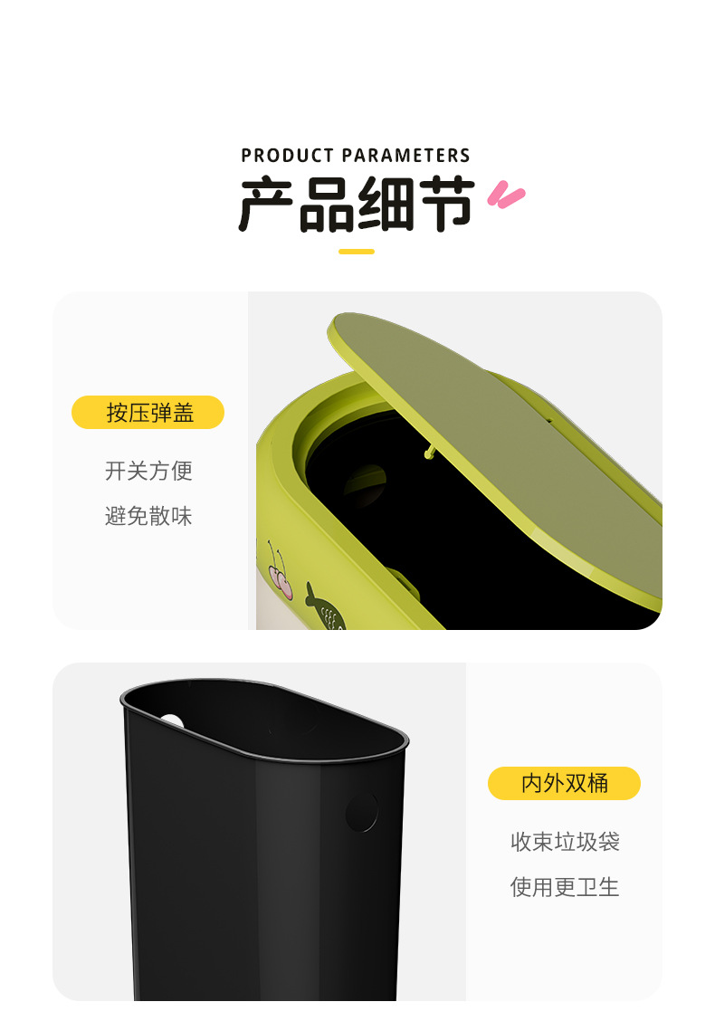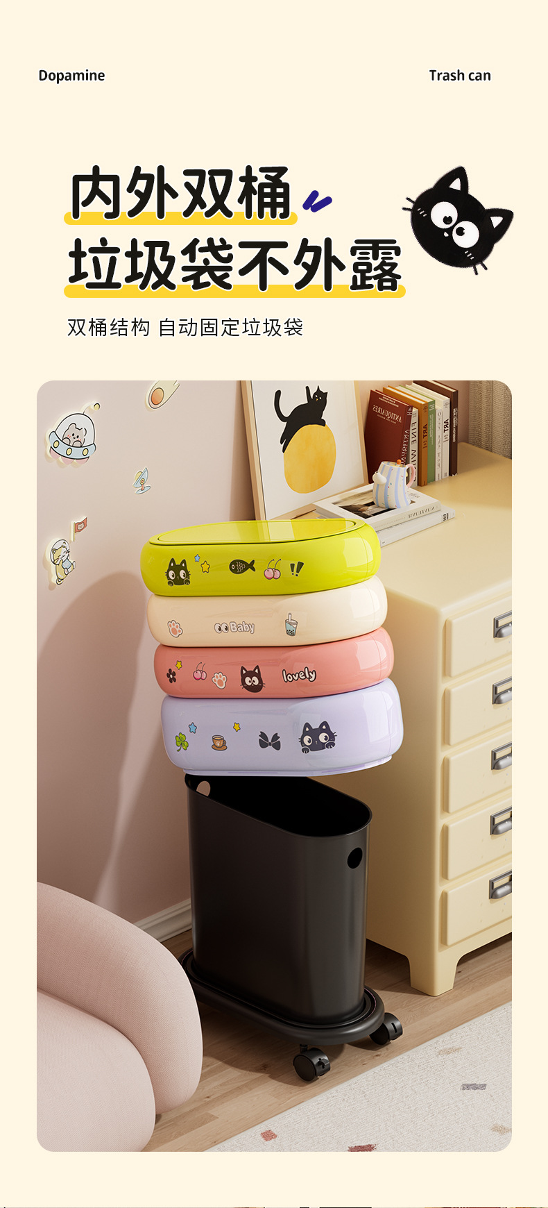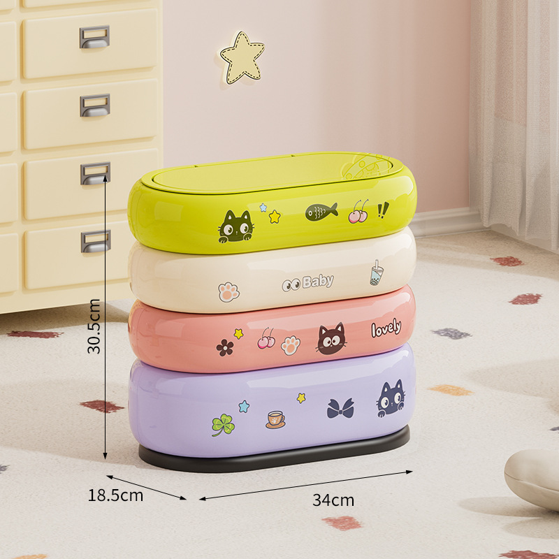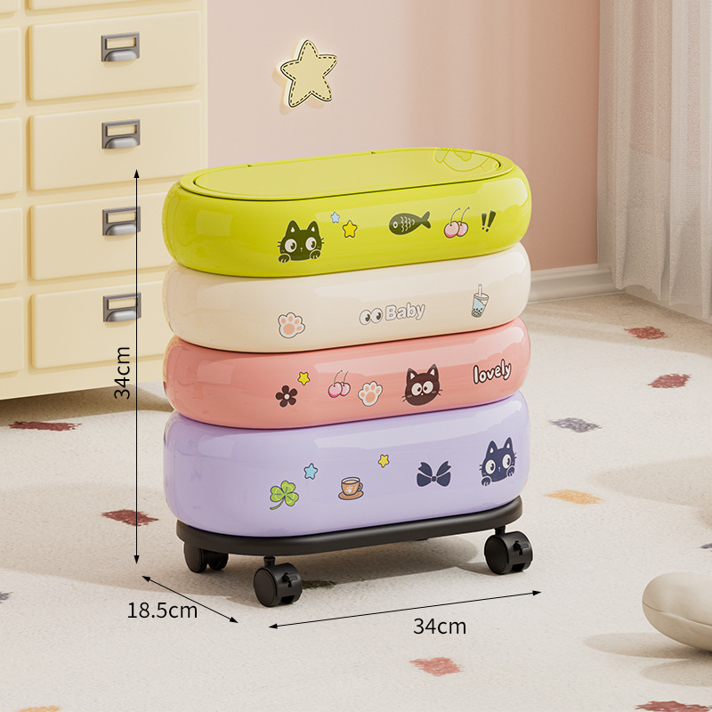 垃圾桶家用大容量带轮可移动多巴胺卡通收纳桶卧室客厅带盖纸篓
