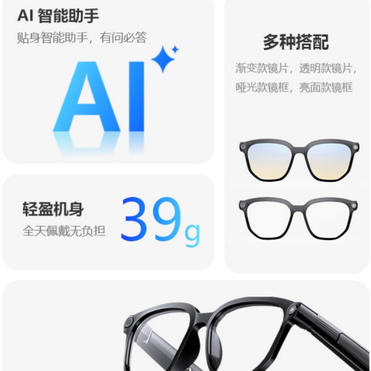 AI106智能眼镜通话高清拍照识物眼镜录像AI翻译语音助手听音乐