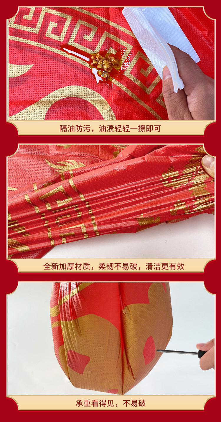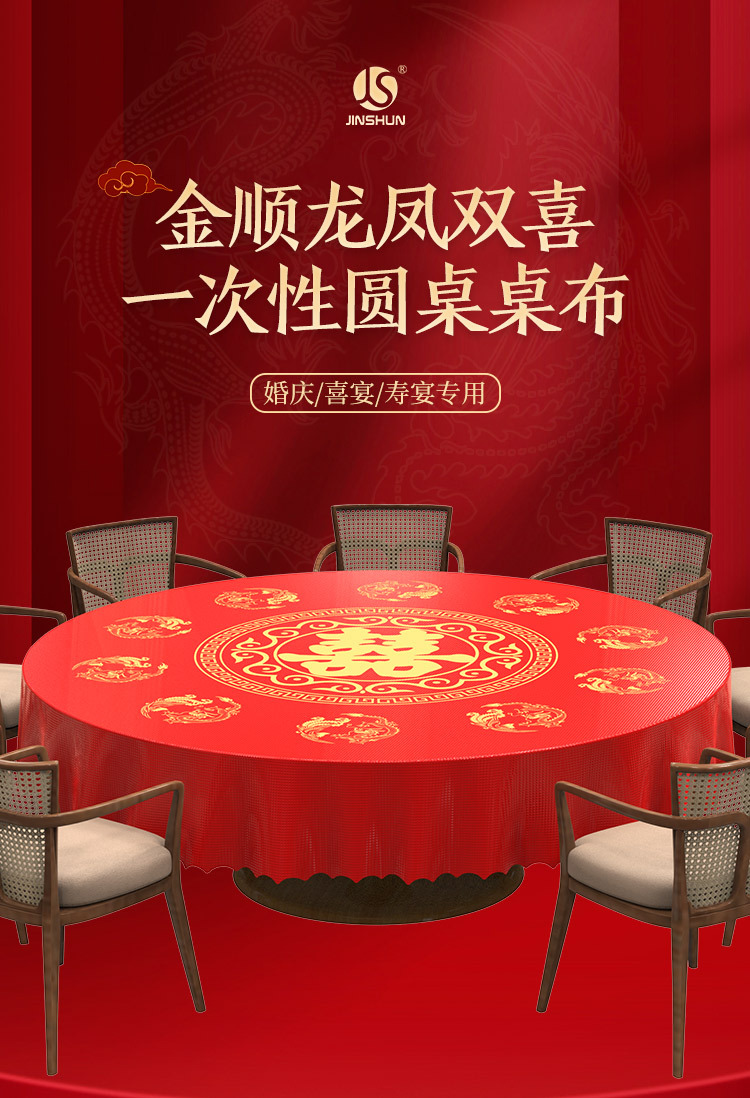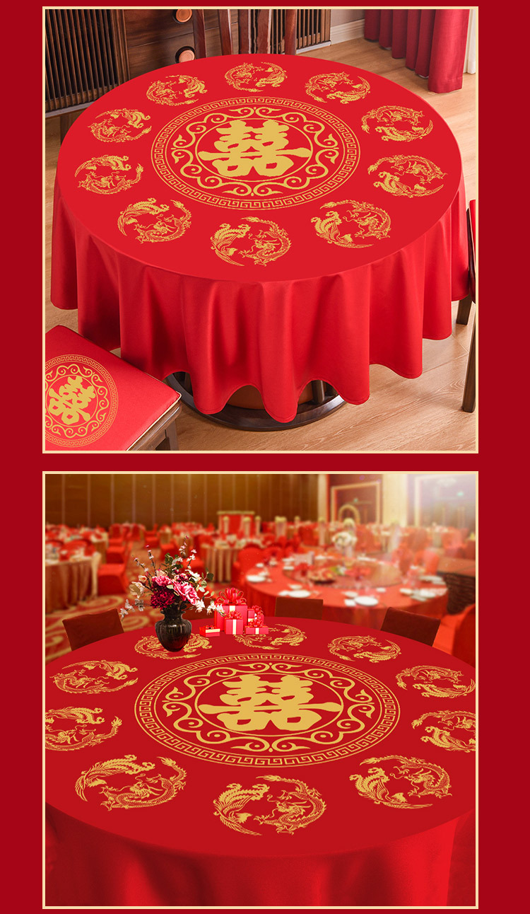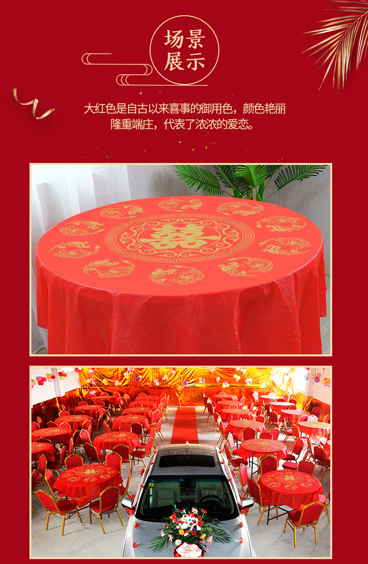 可降解结婚一次性桌布批发加厚红色婚庆酒席喜字圆桌桌布防水防油