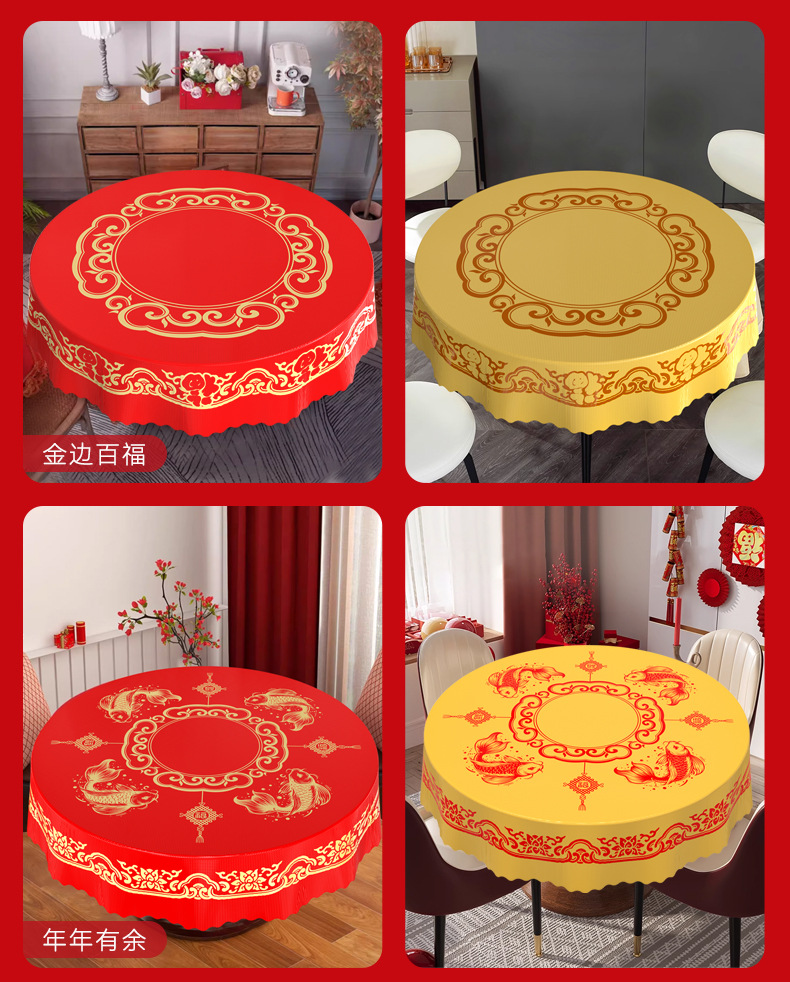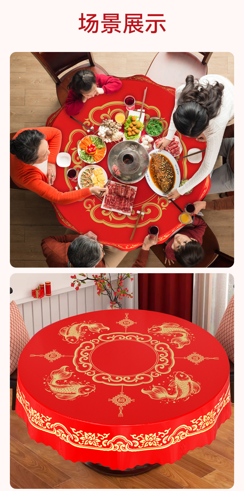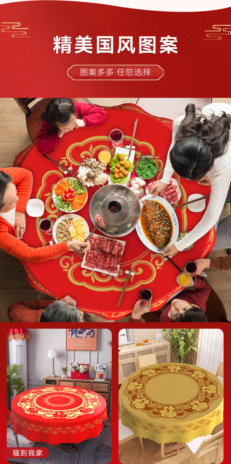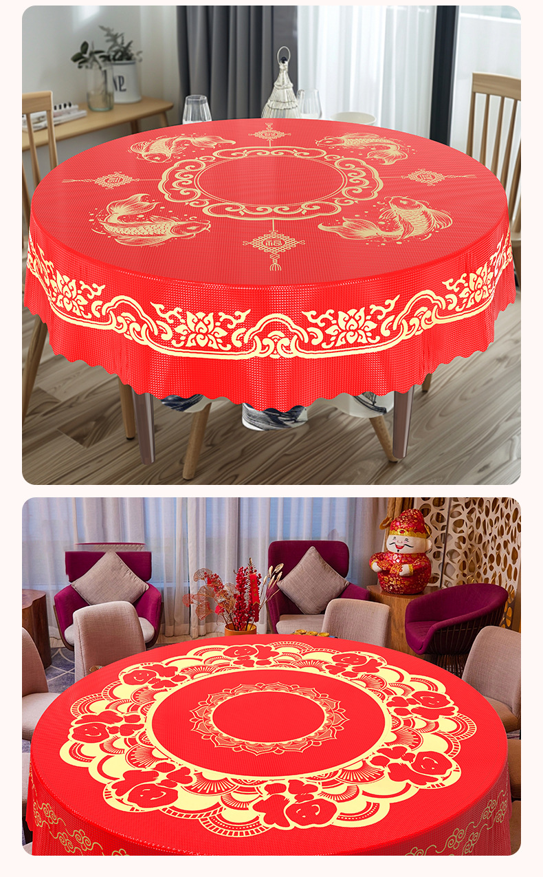加厚一次性桌布红色福字结婚乔迁升学宴家用酒席防水圆桌布