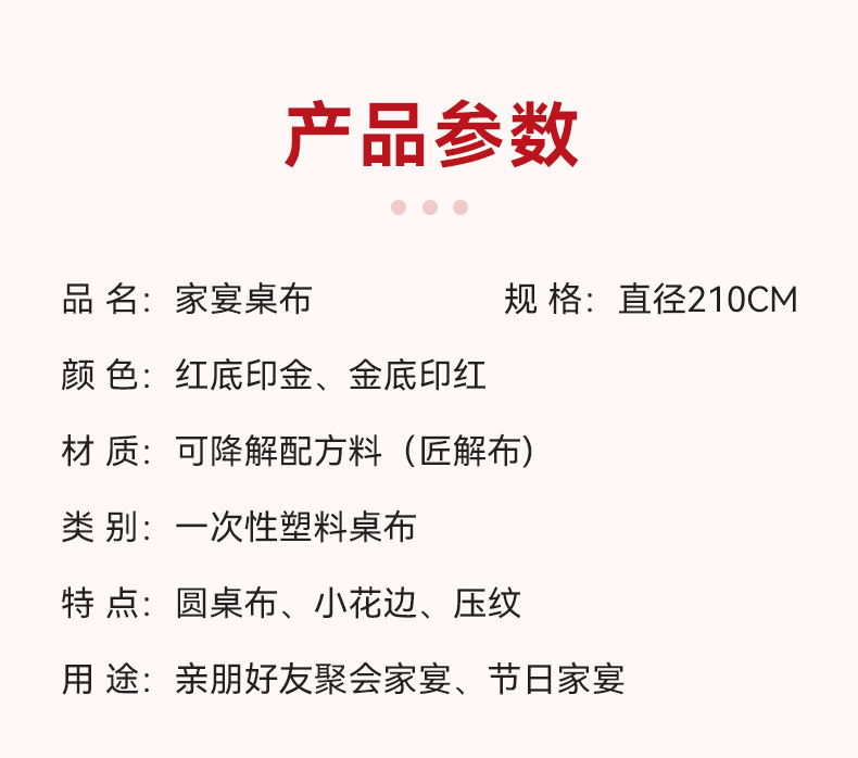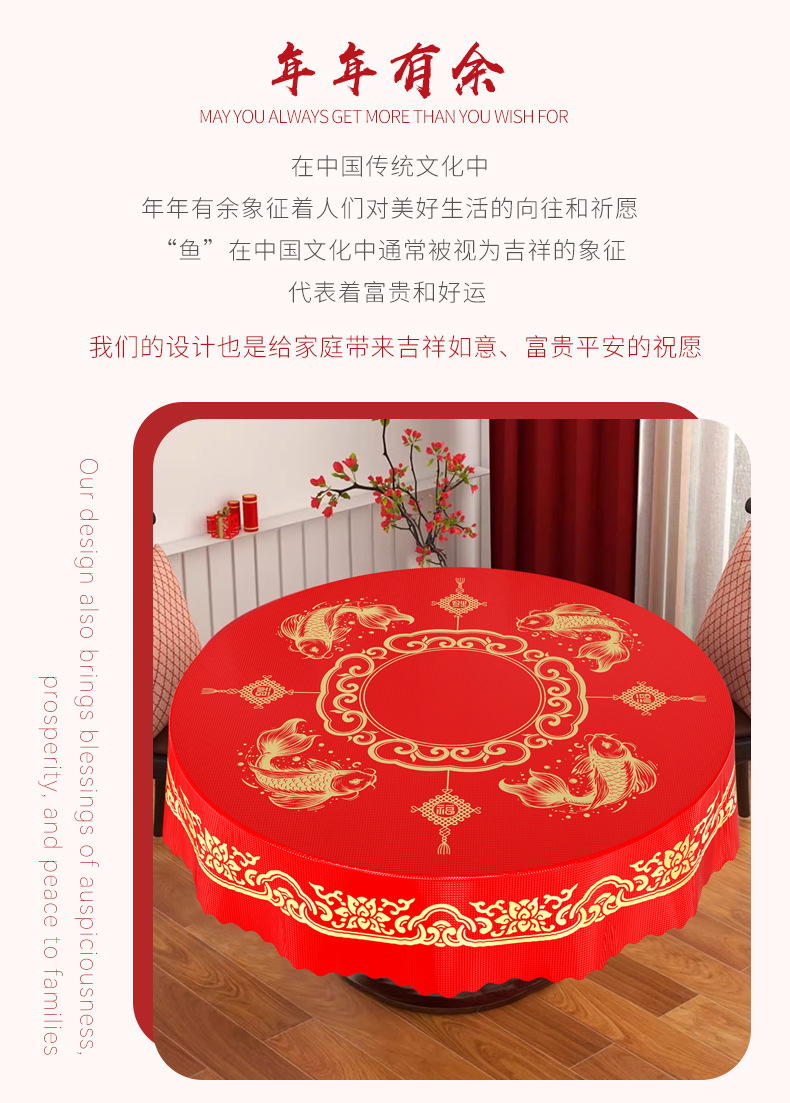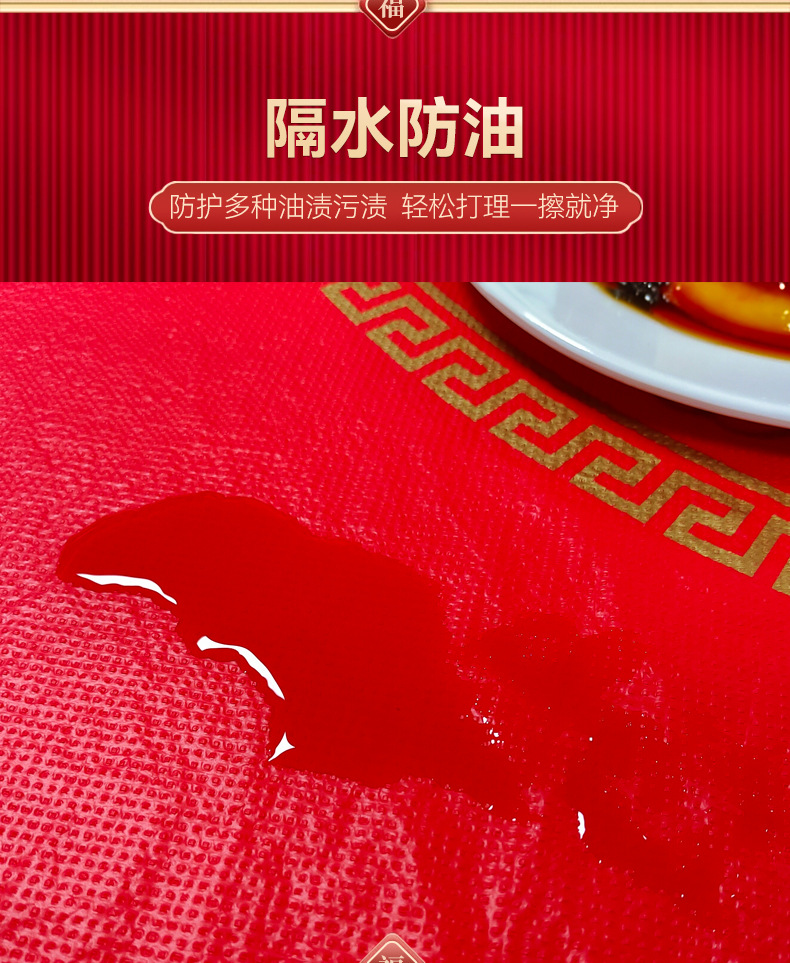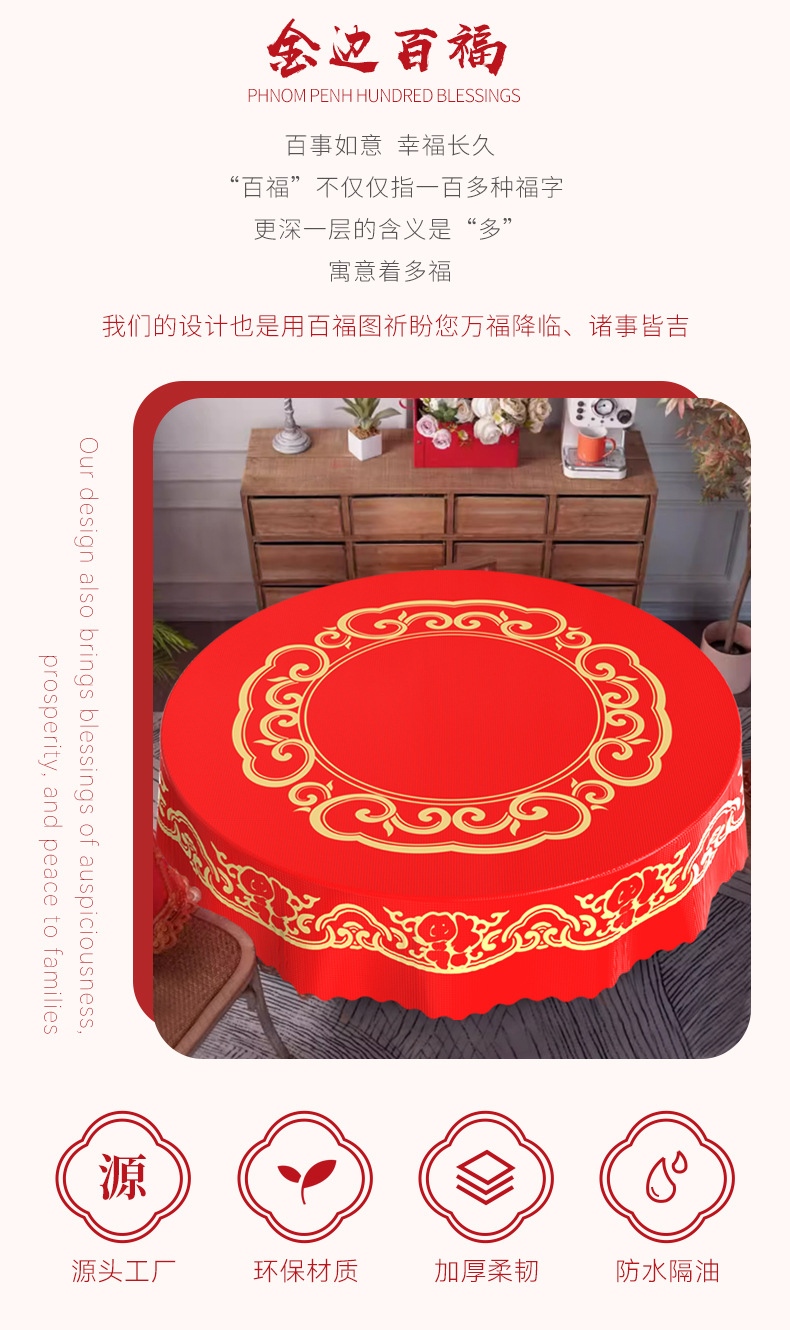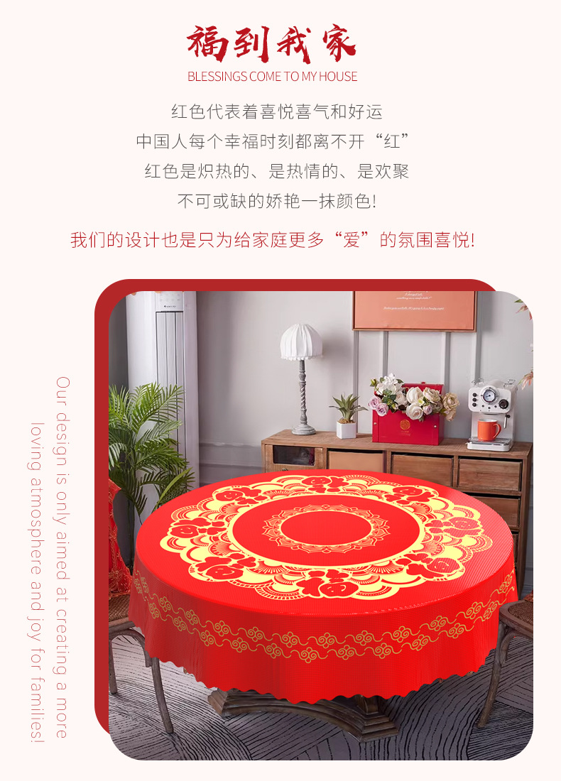 加厚一次性桌布红色福字结婚乔迁升学宴家用酒席防水圆桌布