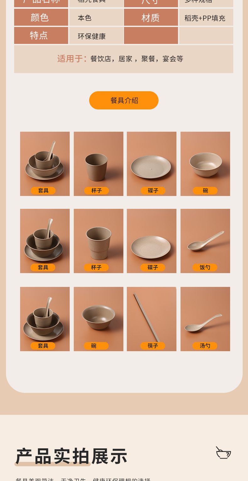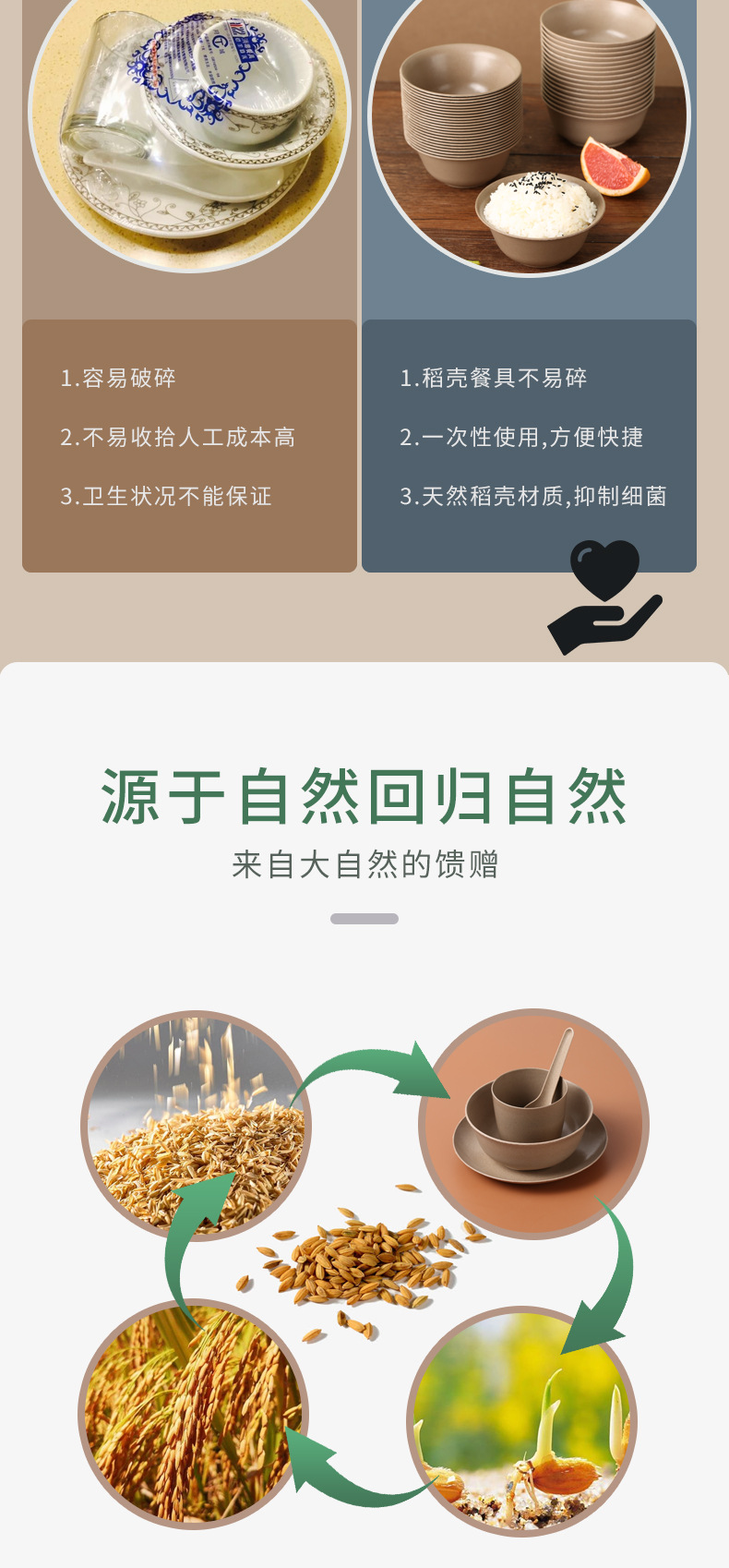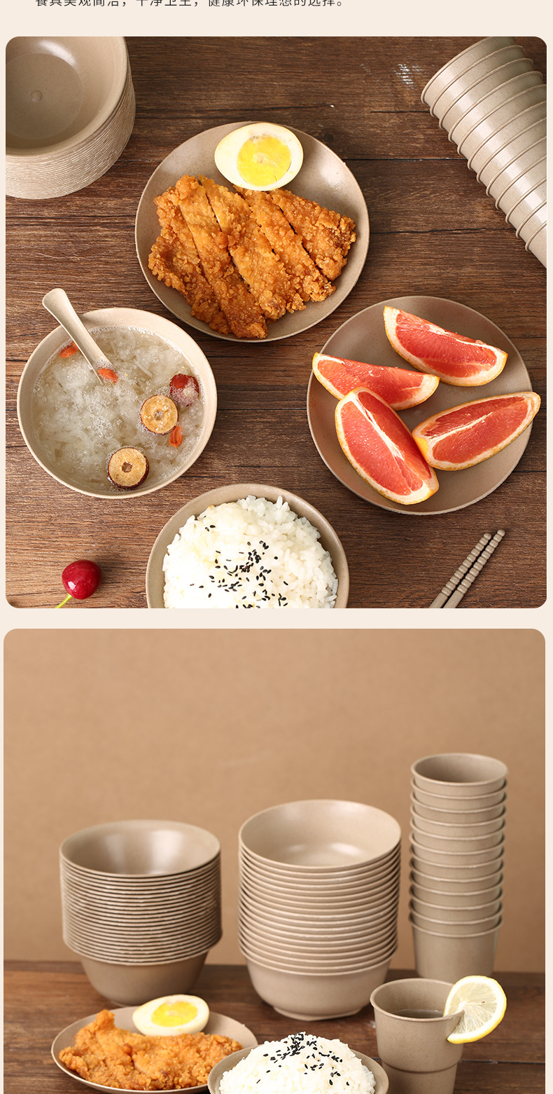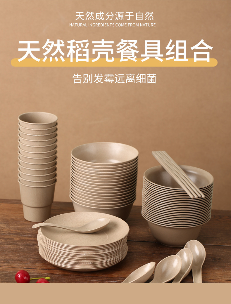 稻壳一次性碗碟套装餐具组合碗杯盘筷勺四件套三件套酒席商用高档