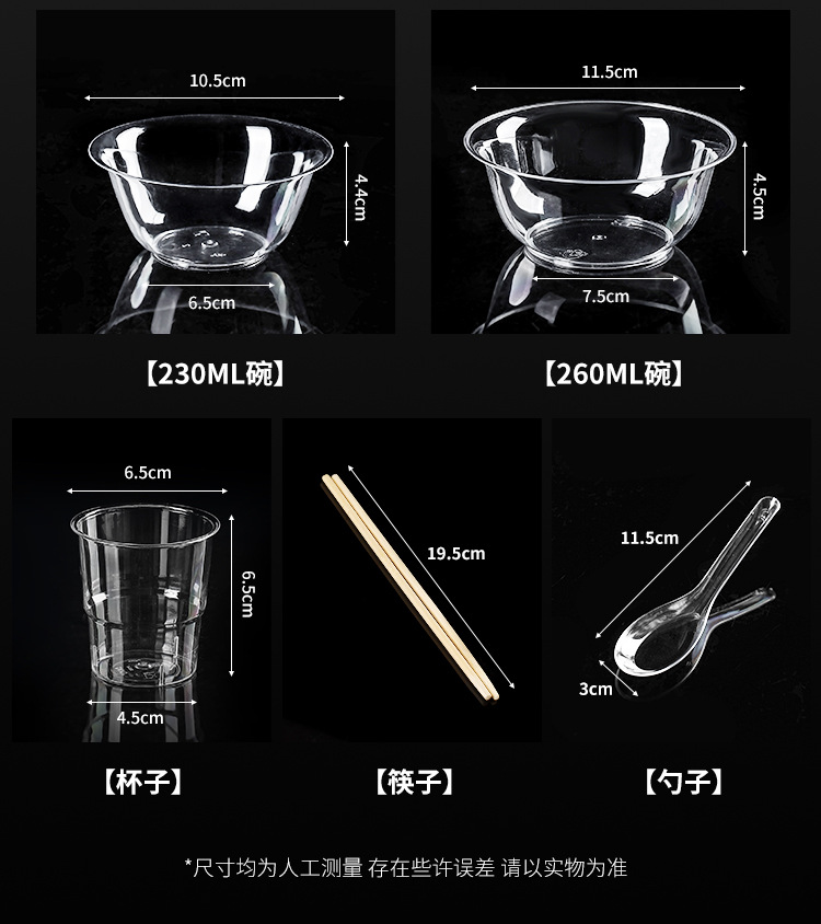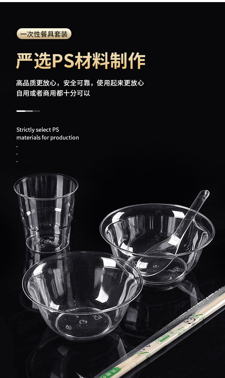 一次性碗筷杯三件套加厚塑料航空碗100只装酒席过年打包餐具套装