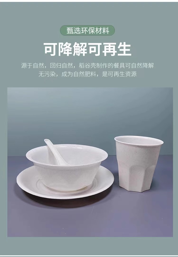 稻壳一次性餐具环保可降解加厚食品级四件套碗筷套装饭店酒席露营