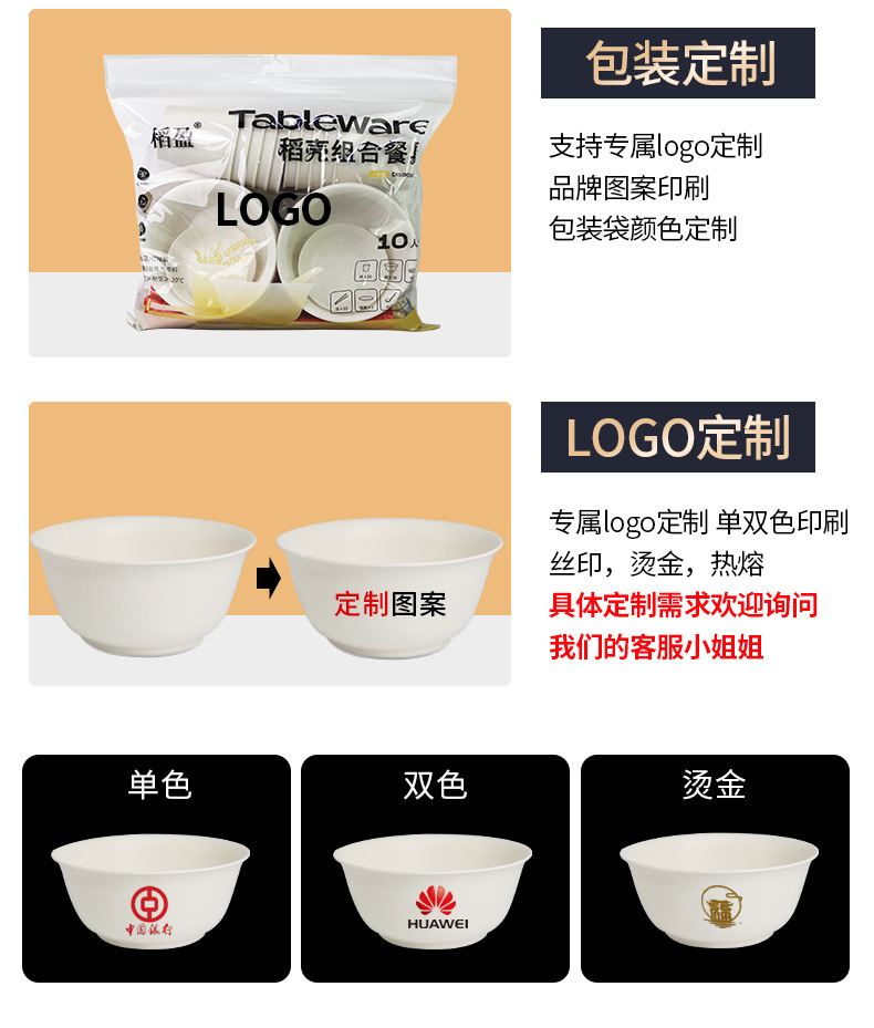 定制稻壳一次性餐具套装婚宴酒席10人份碗筷杯组合一次性的碗饭碗