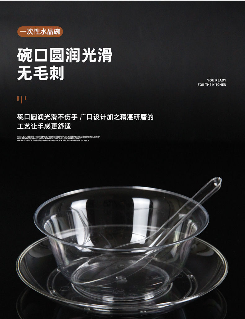 一次性碗透明硬质塑料碗火锅餐具航空水晶饭碗食品级家用酒席碗筷