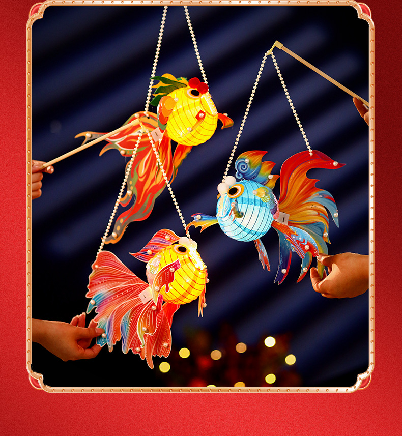 中秋节灯笼 2025新款儿童手工diy材料古风金鱼灯手提发光鱼形灯笼