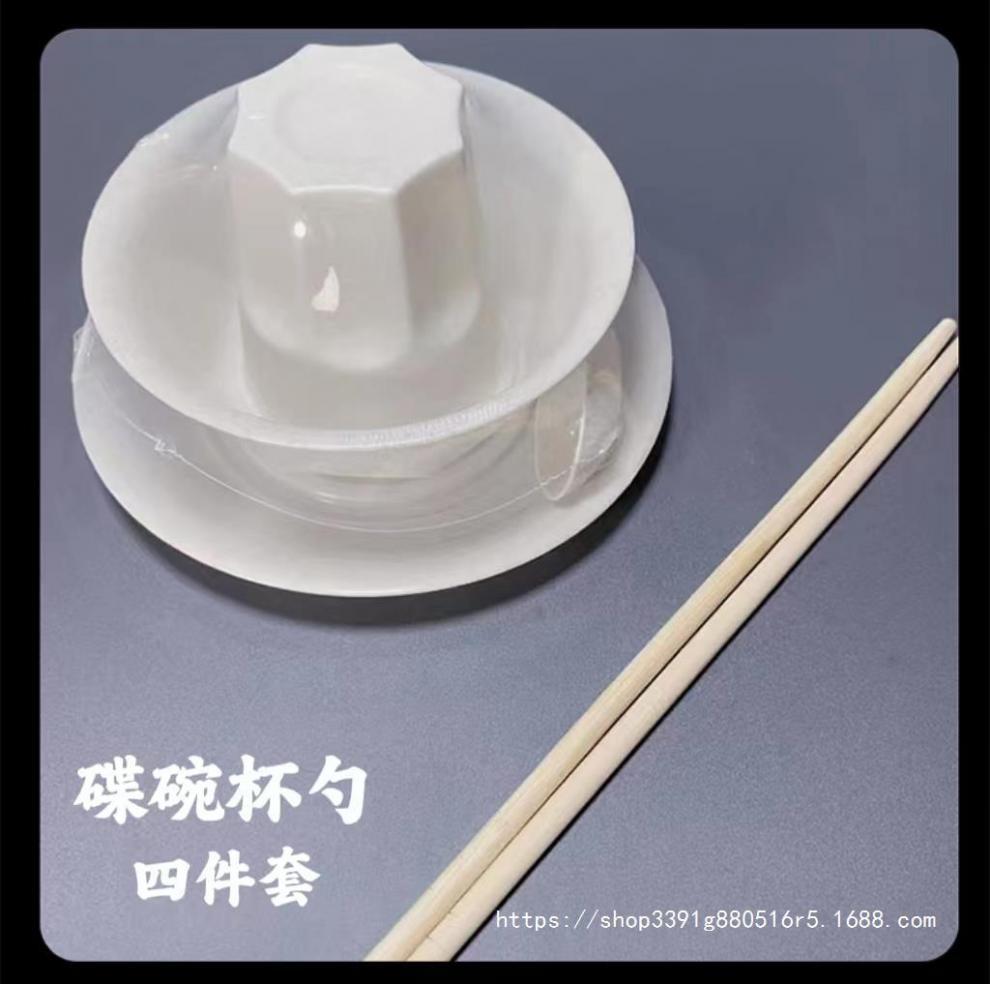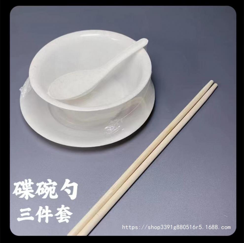 稻壳一次性餐具四件套碗筷套装食品级可降解加厚露营饭店酒席环保
