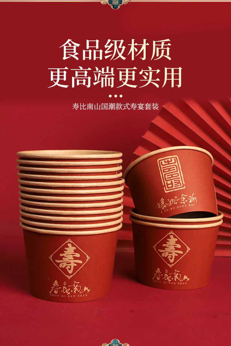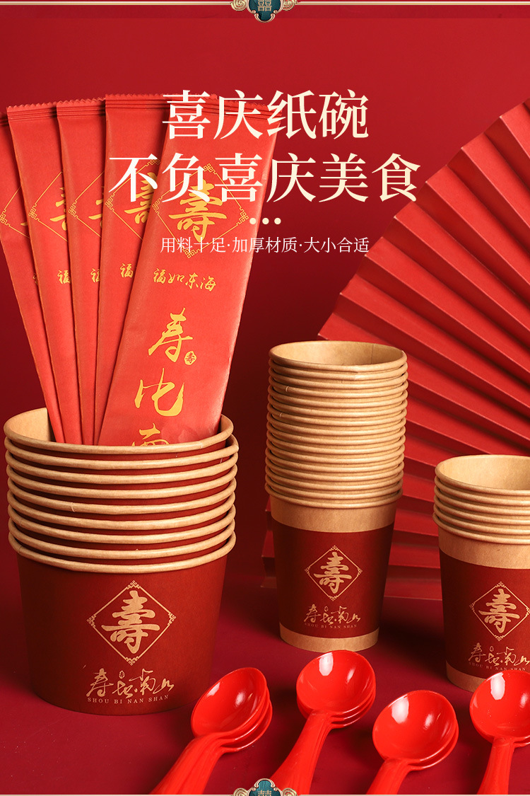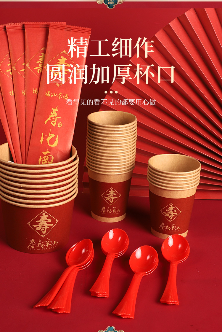 一次性纸碗寿字纸杯过寿勺子寿宴酒席一次性大寿餐具餐具套装喜庆