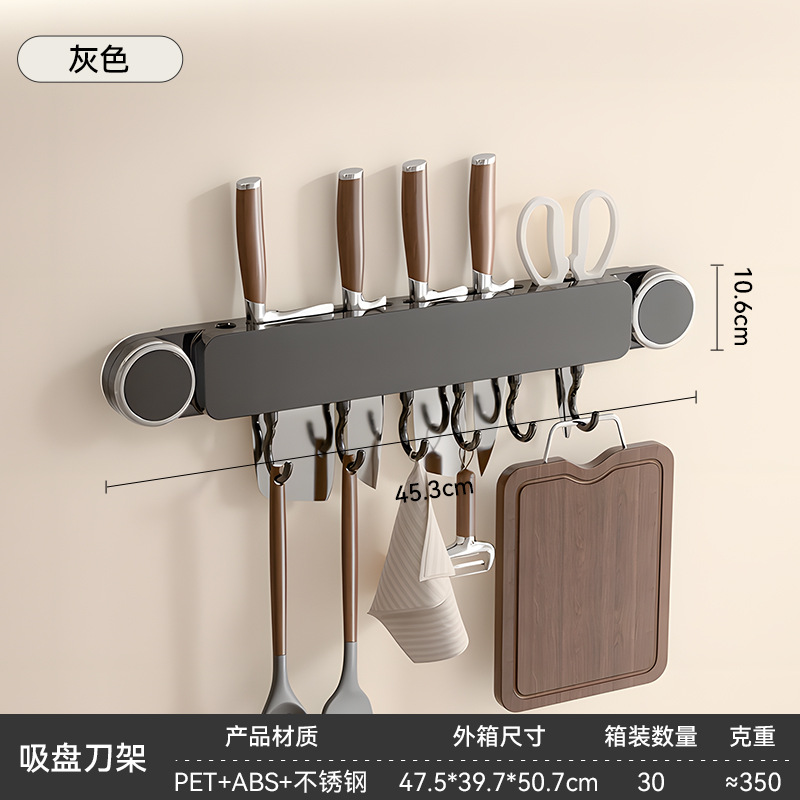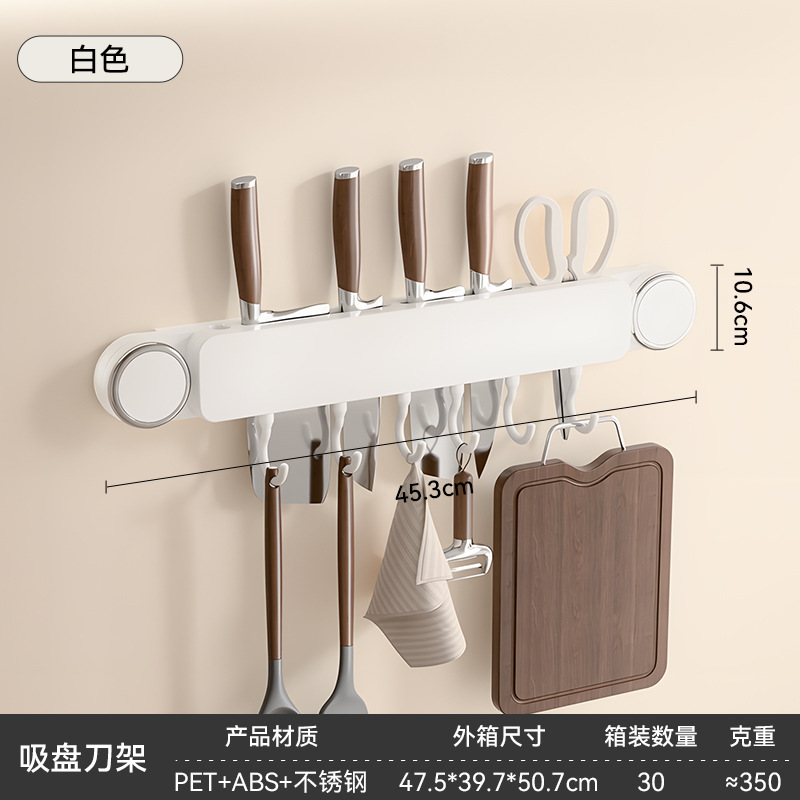 吸盘厨房刀架置物架家用壁挂式免打孔锅铲勺子排钩收纳刀具收纳架