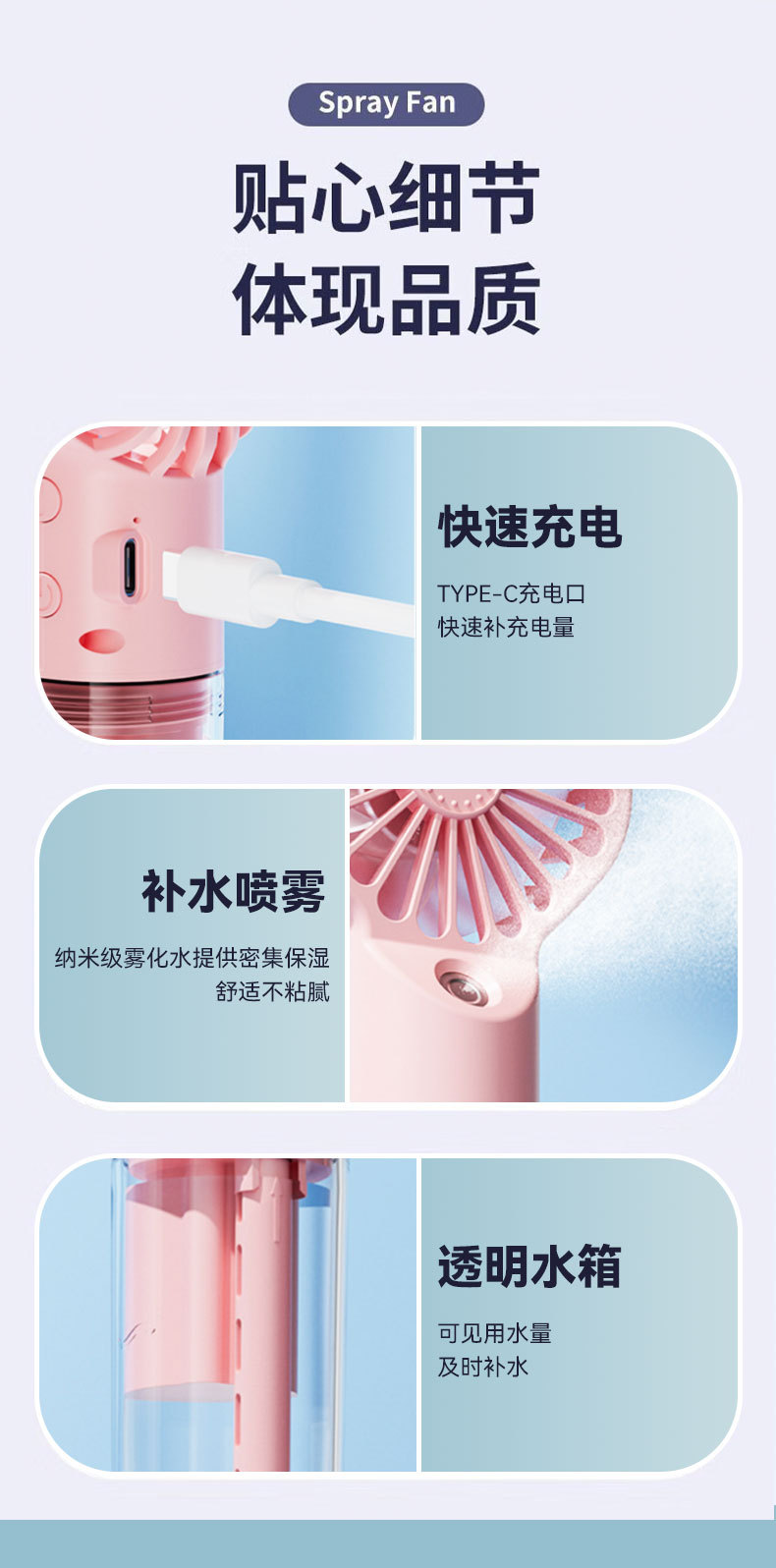 F03手持喷雾风扇便携式迷你充电手持风扇喷雾加湿礼品手持小风扇