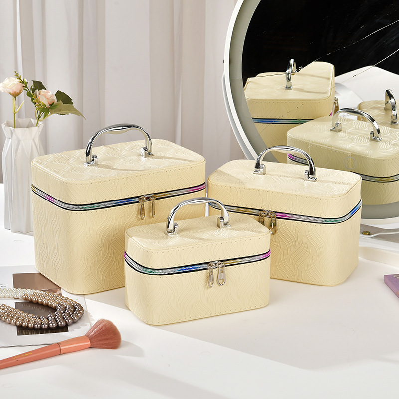 化妆包源头厂家可来样新款PU防水化妆箱三件套大容量旅行洗漱包工