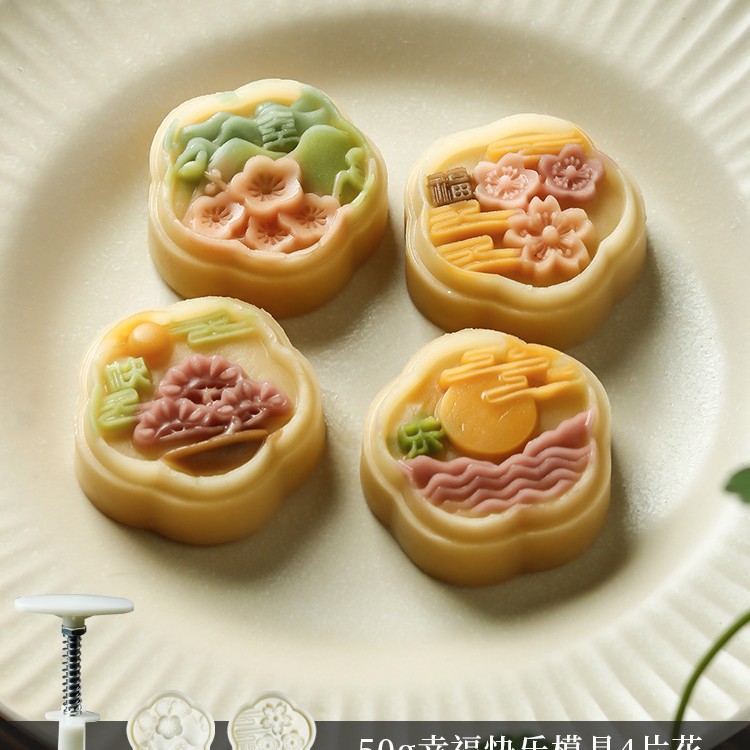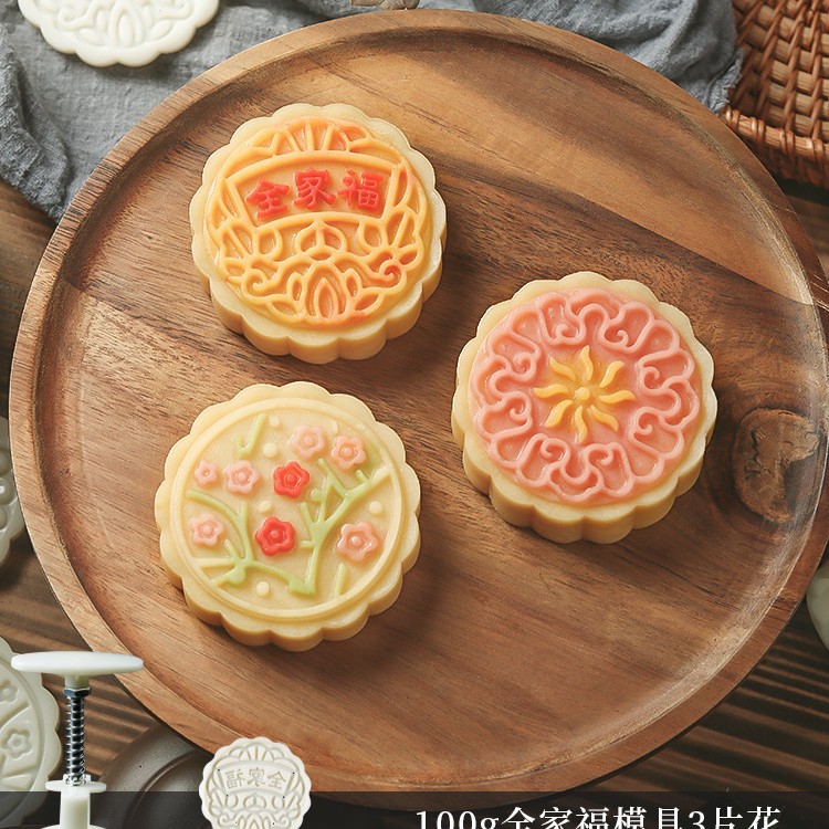 新款中秋冰皮月饼模具家用创意DIY立体绿豆糕烘焙压花磨具批发