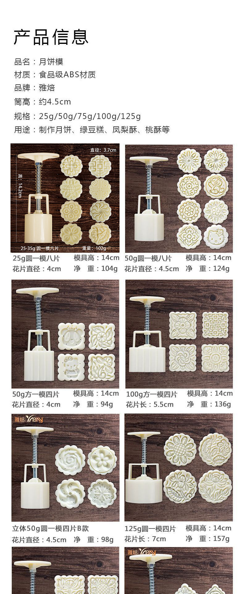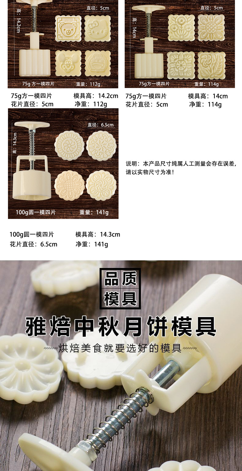 月饼模多款手压月饼模具手压式中秋冰皮月饼模 立体模 绿豆糕点模