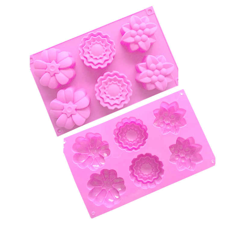 现货批发 6连3组不同花形硅胶蛋糕模 月饼模香薰石膏模易脱不掉色