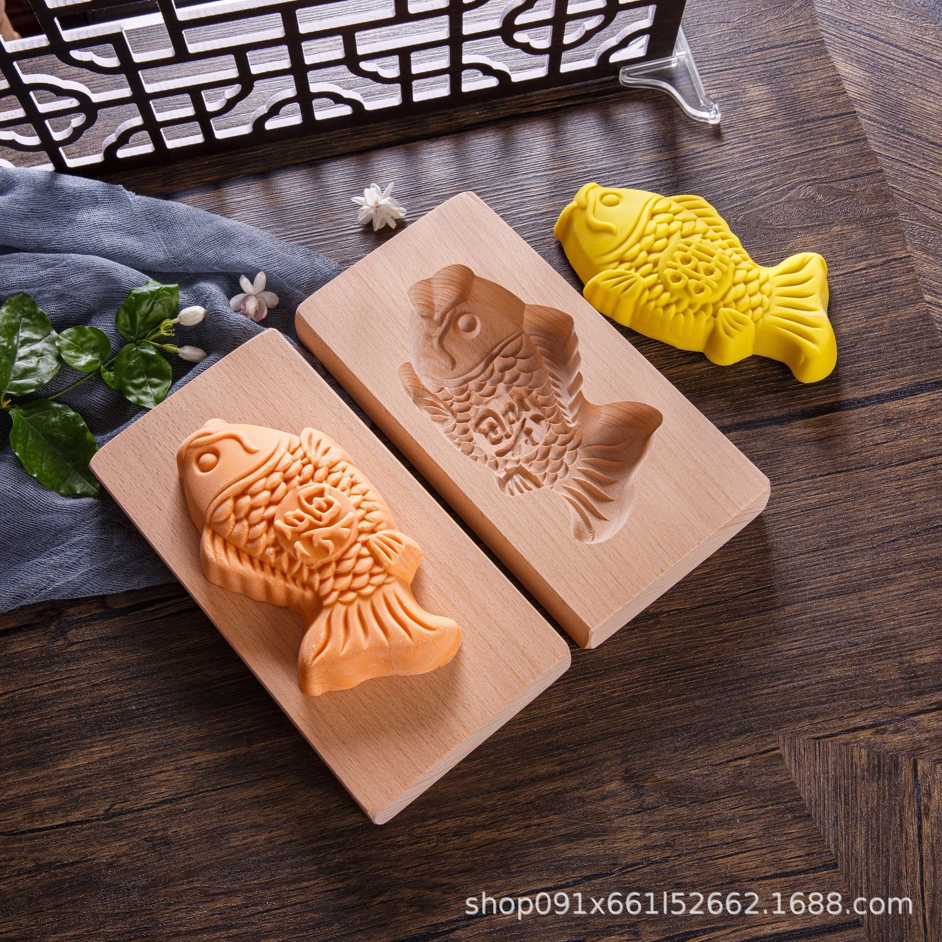 新款花鱼馒头木质月饼绿豆糕模具 烘焙糕点模具木制面食模具