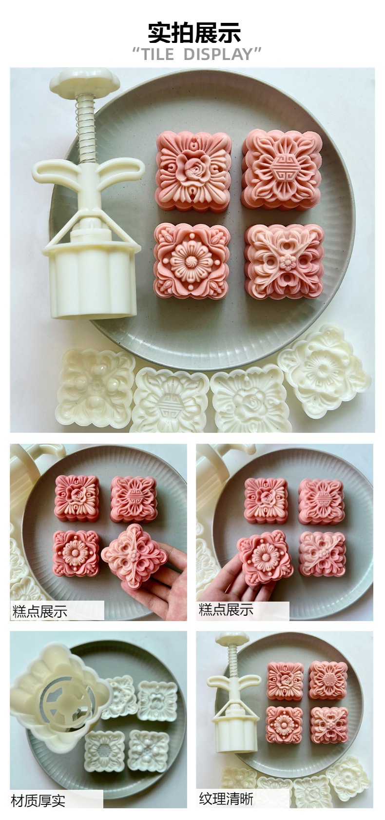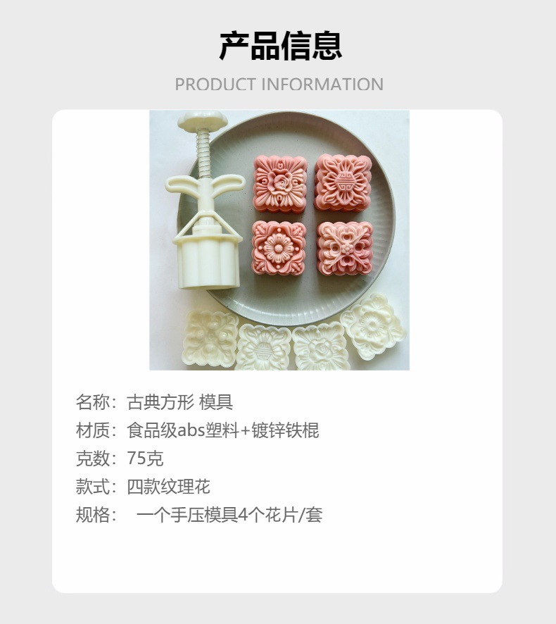 【古典方形】月饼模具75克 花卉纹理四片装 mooncakemould