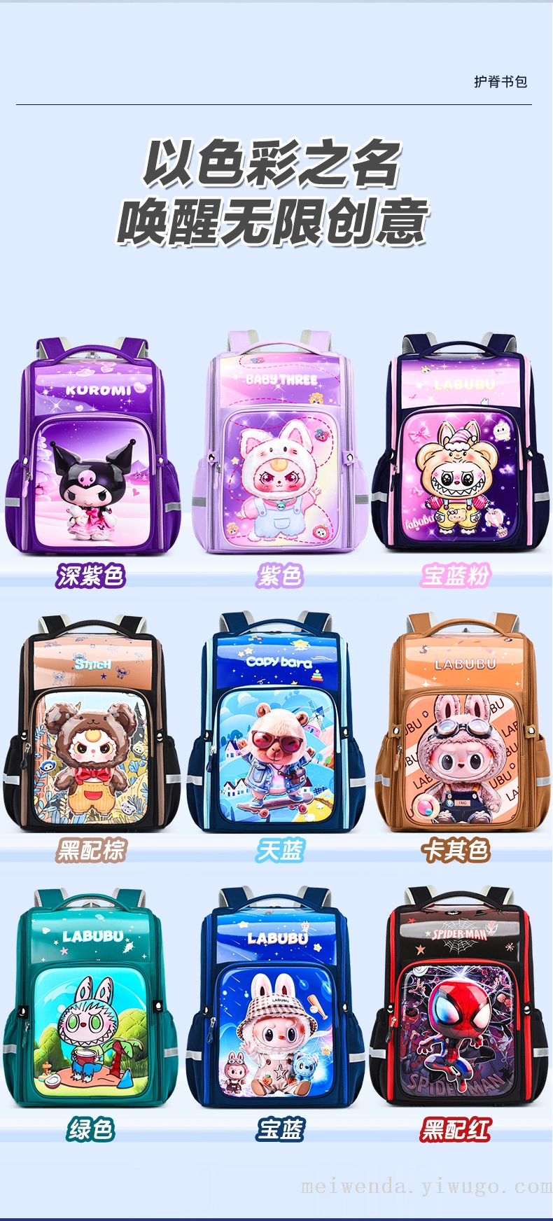 一件代发新款卡通书包学生1-6年级轻便护脊大容量防泼水背包