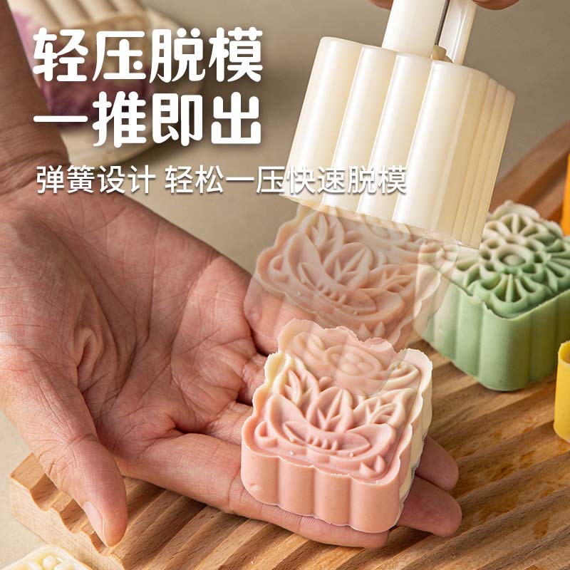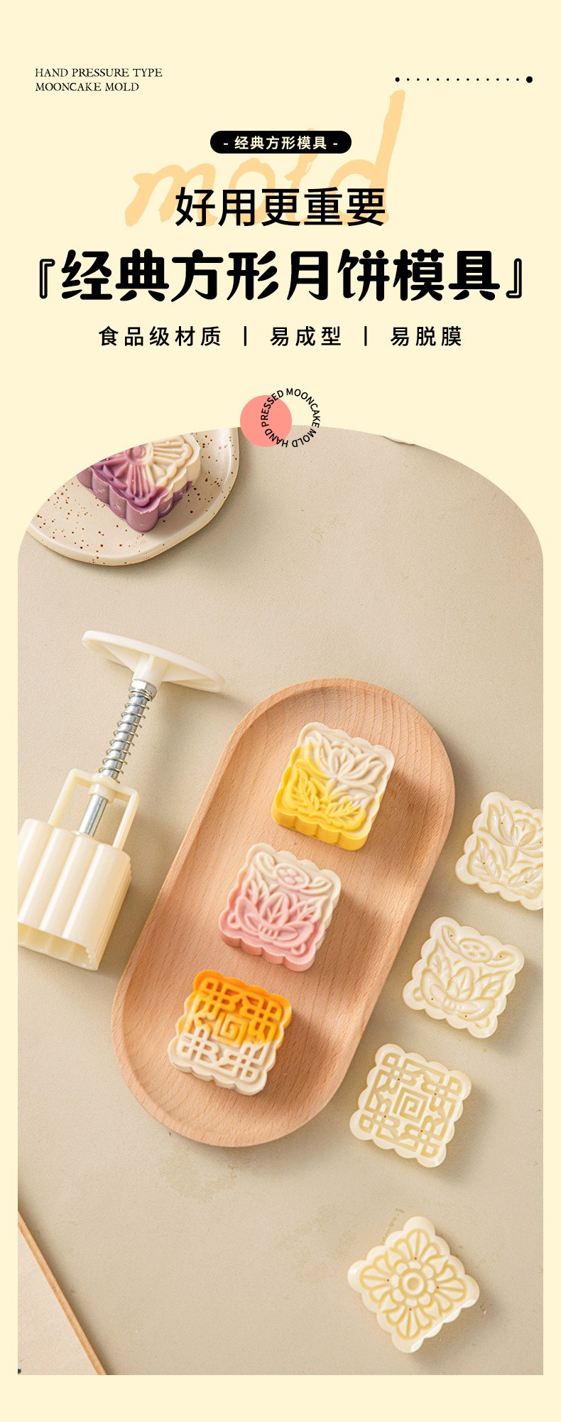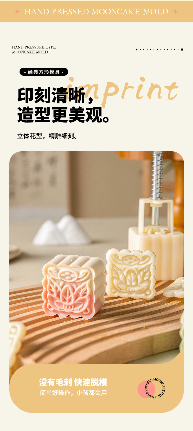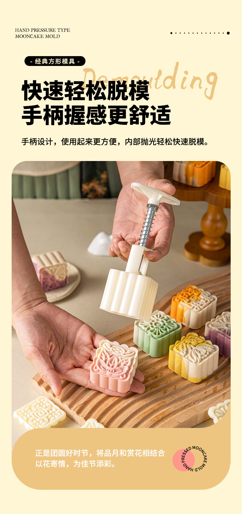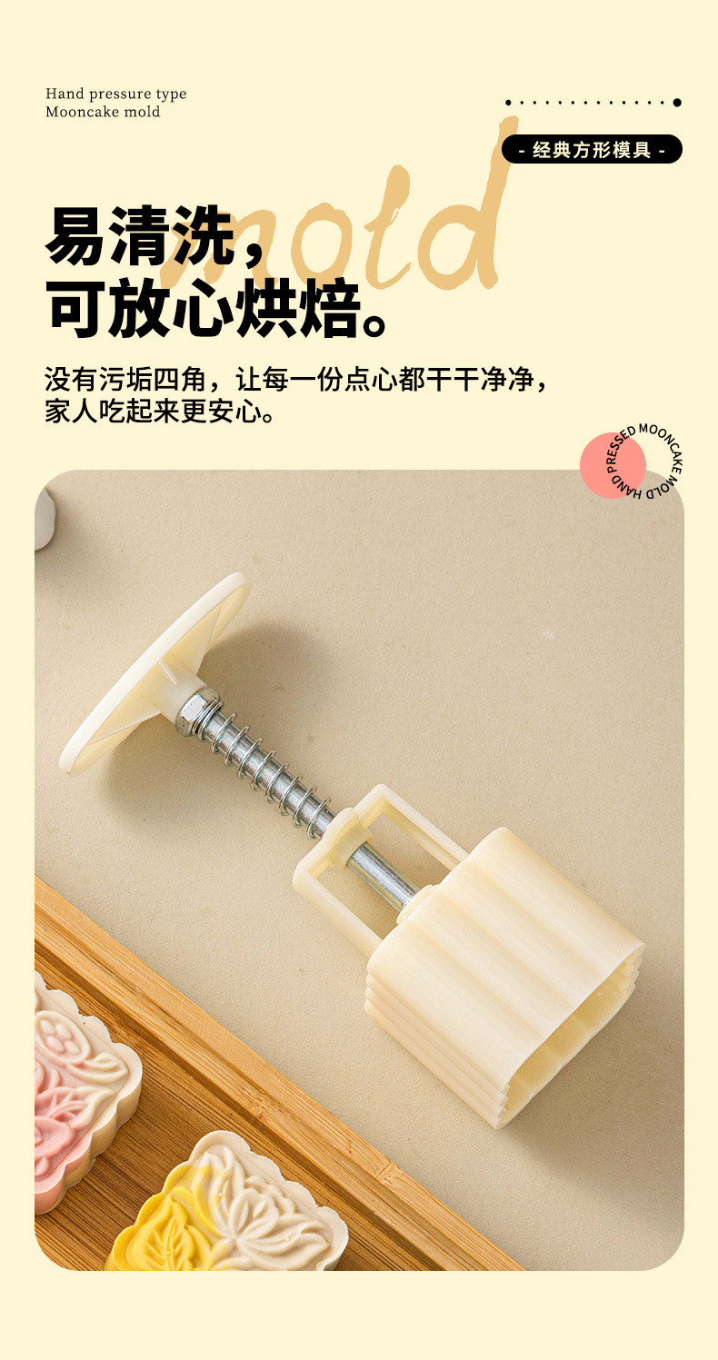 2025新款成品月饼模具75g克食品级脱模家用经典方形手压式压花50g