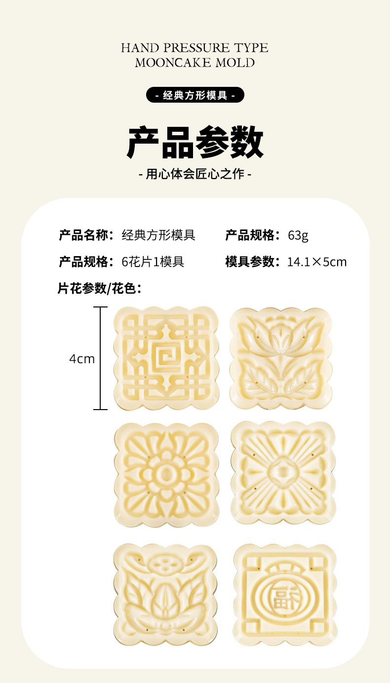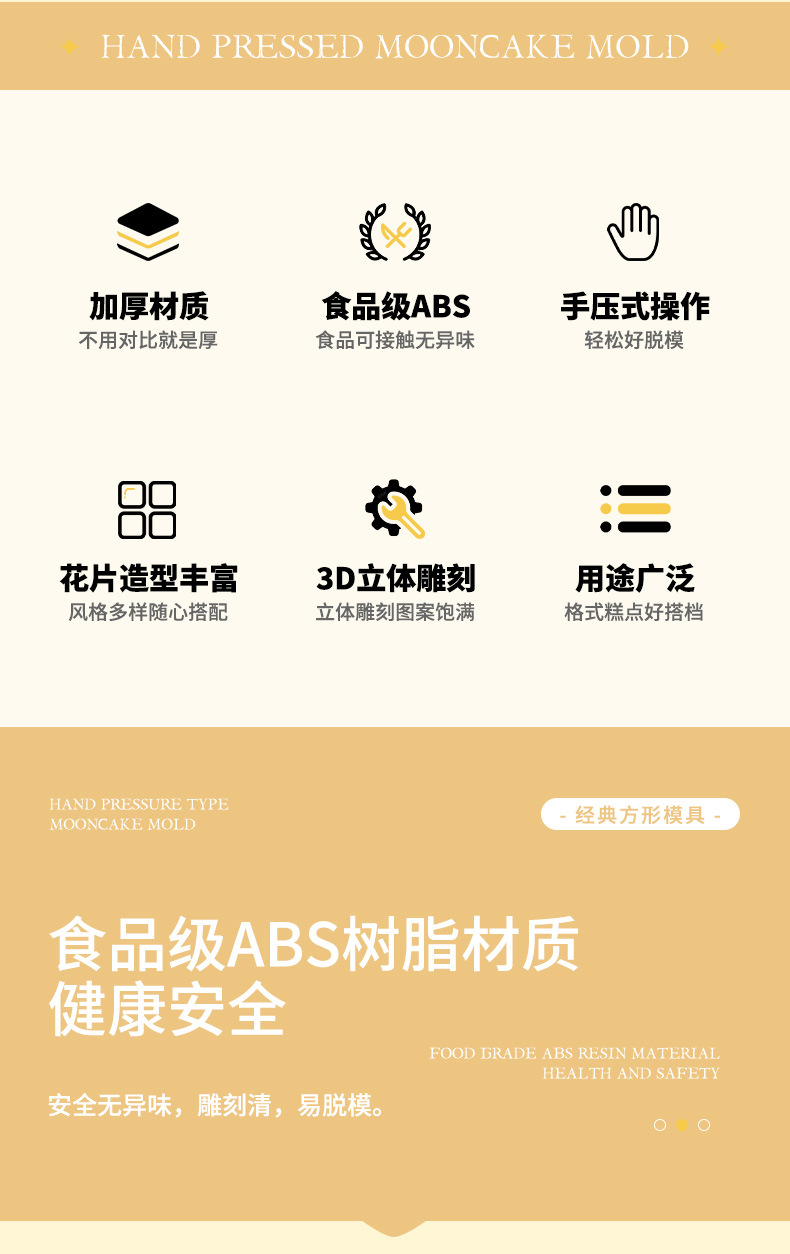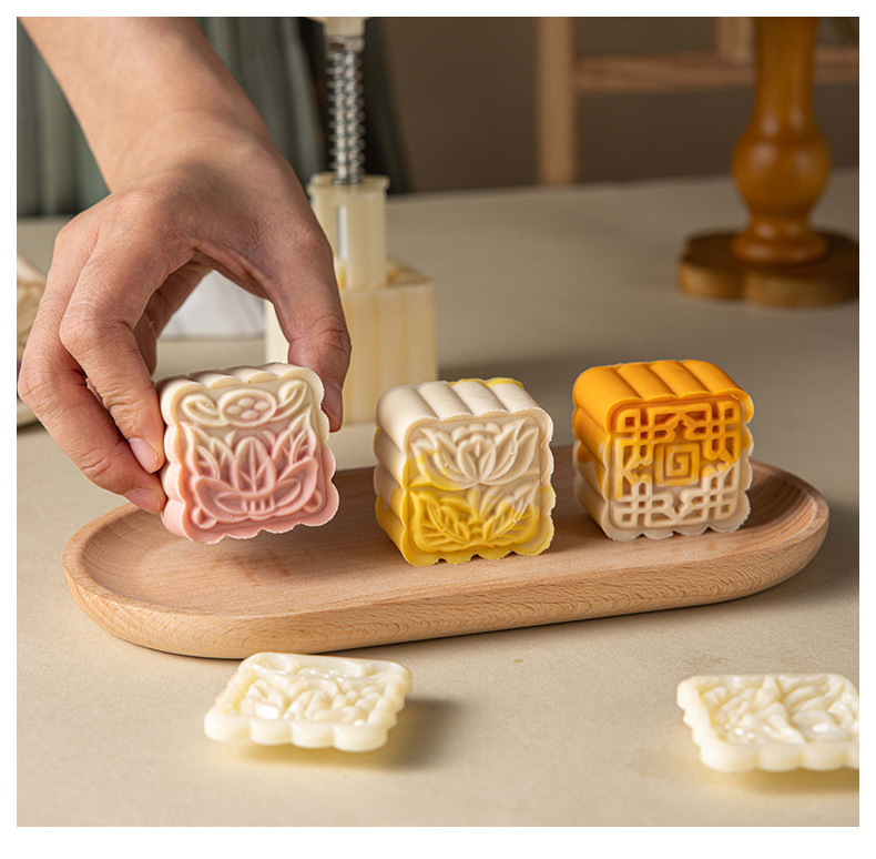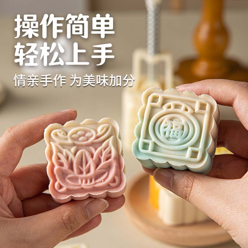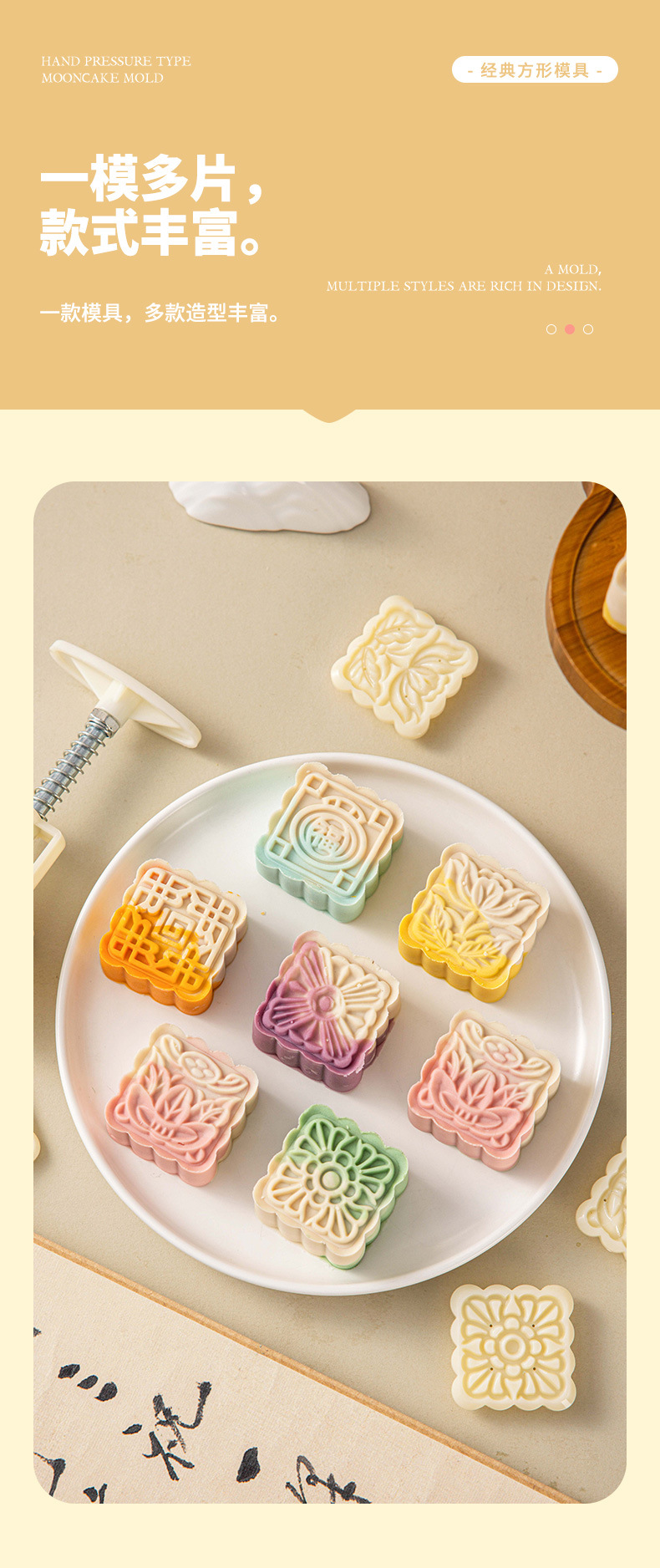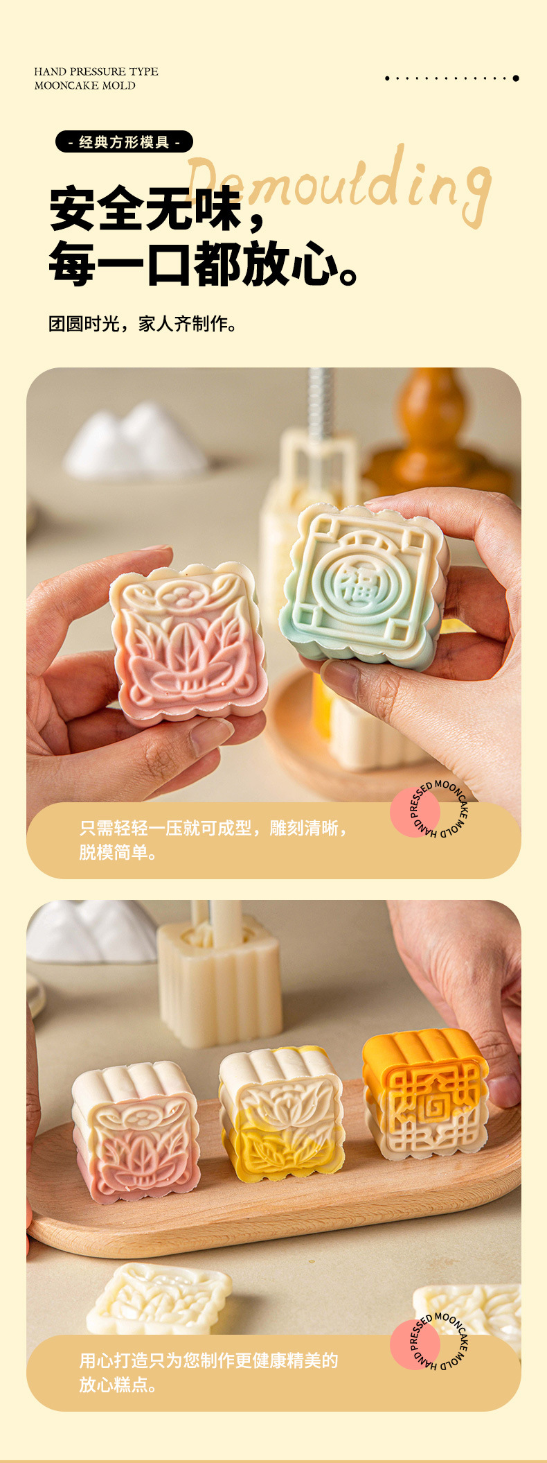 2025新款成品月饼模具75g克食品级脱模家用经典方形手压式压花50g