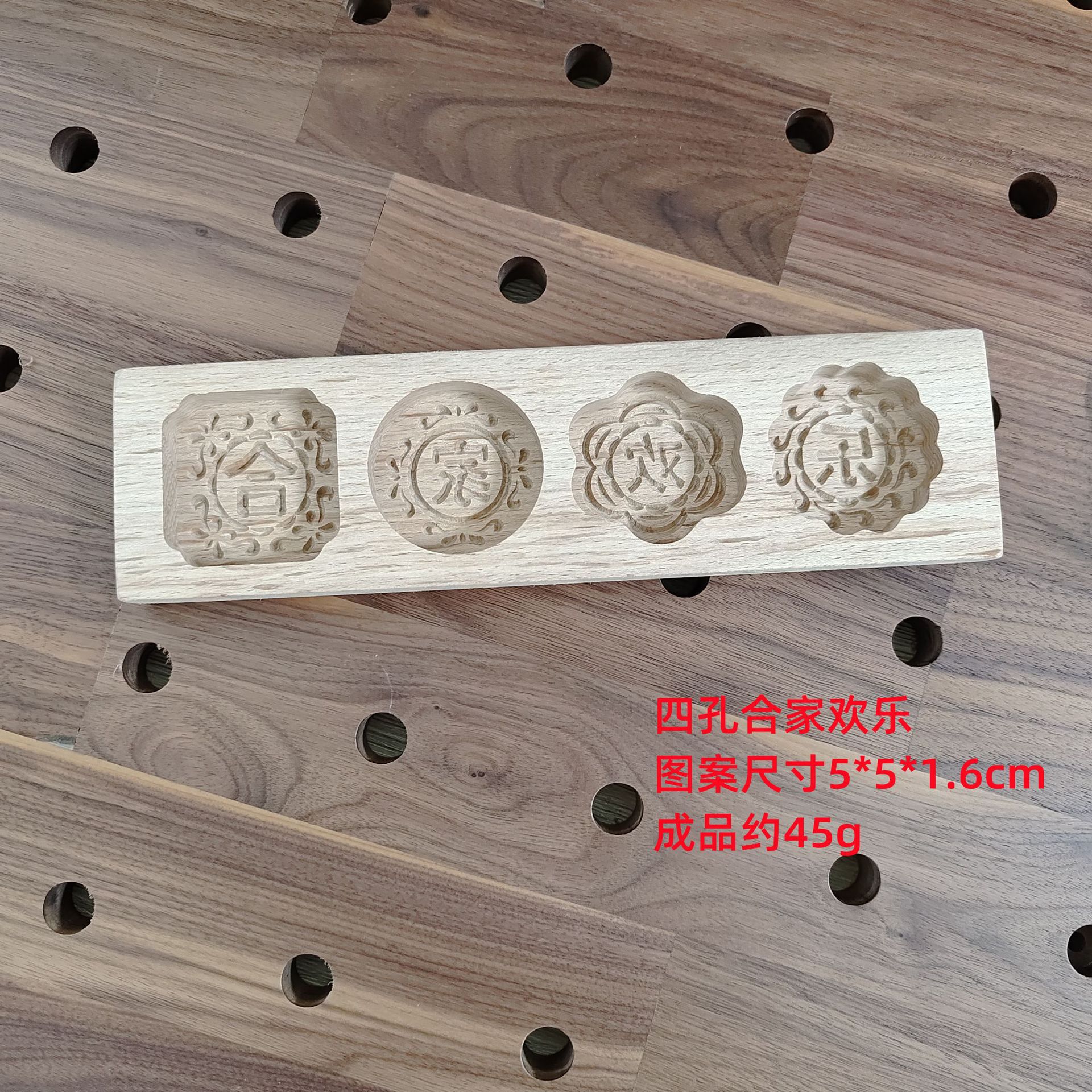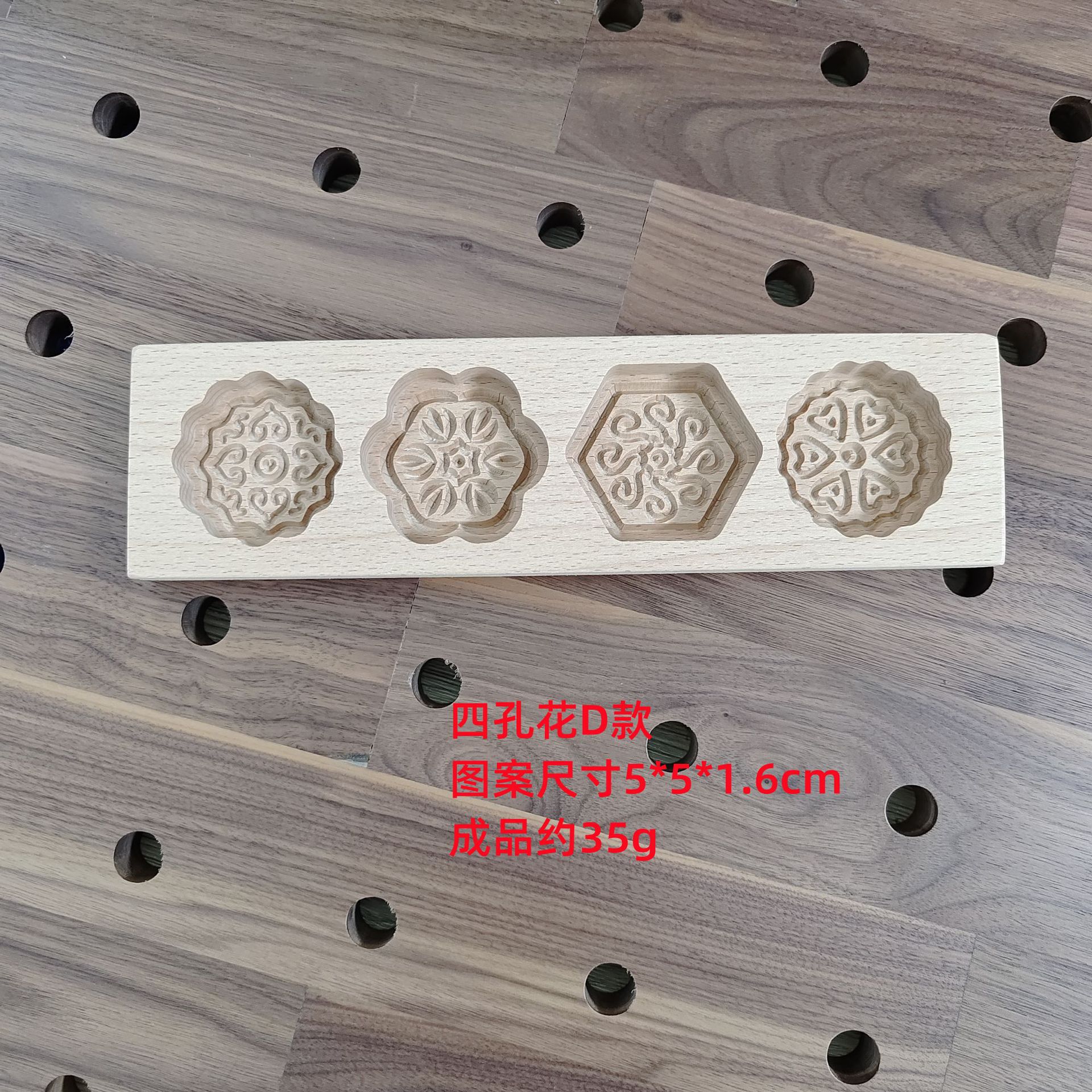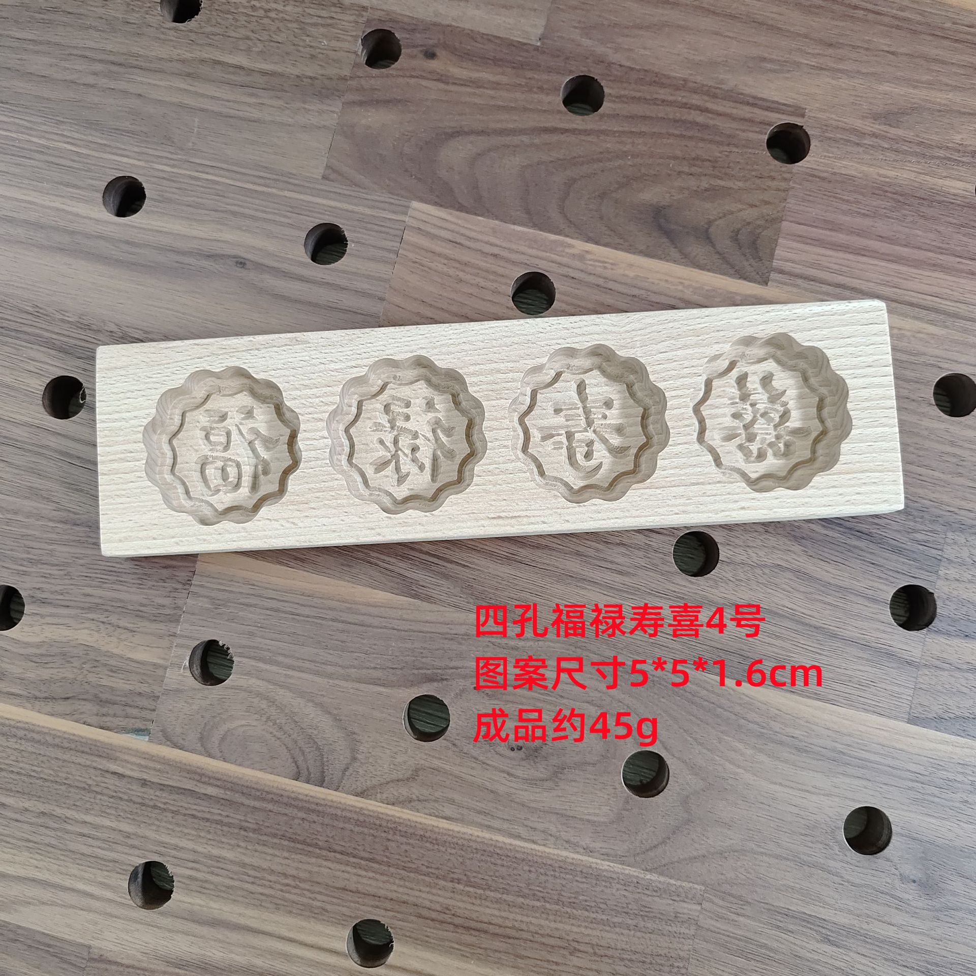 四孔模具花样馒头模具 实木质月饼模具糕点饽饽卡饼干模具DIY模具