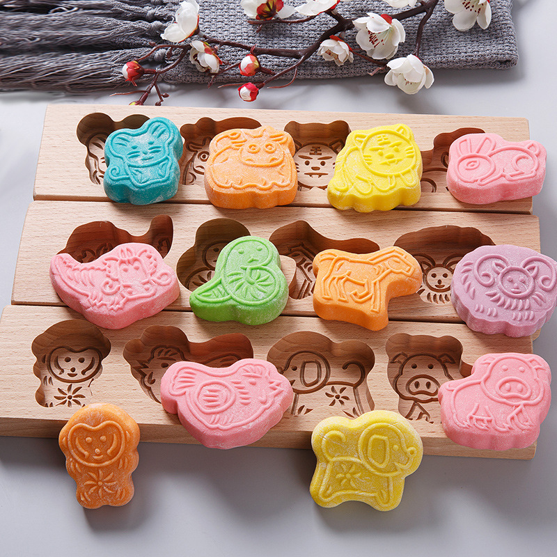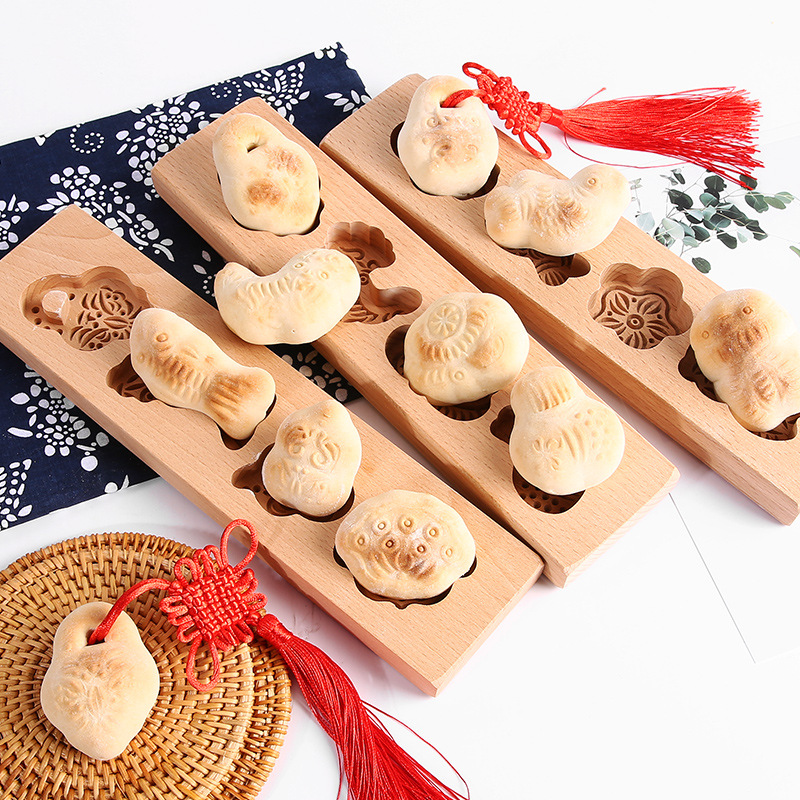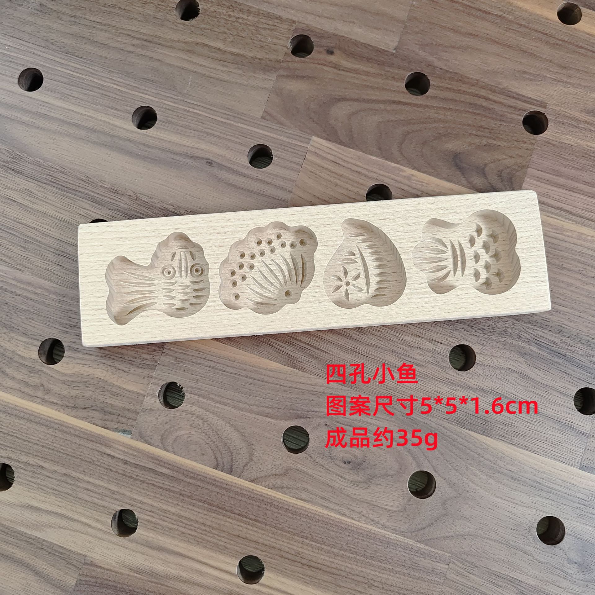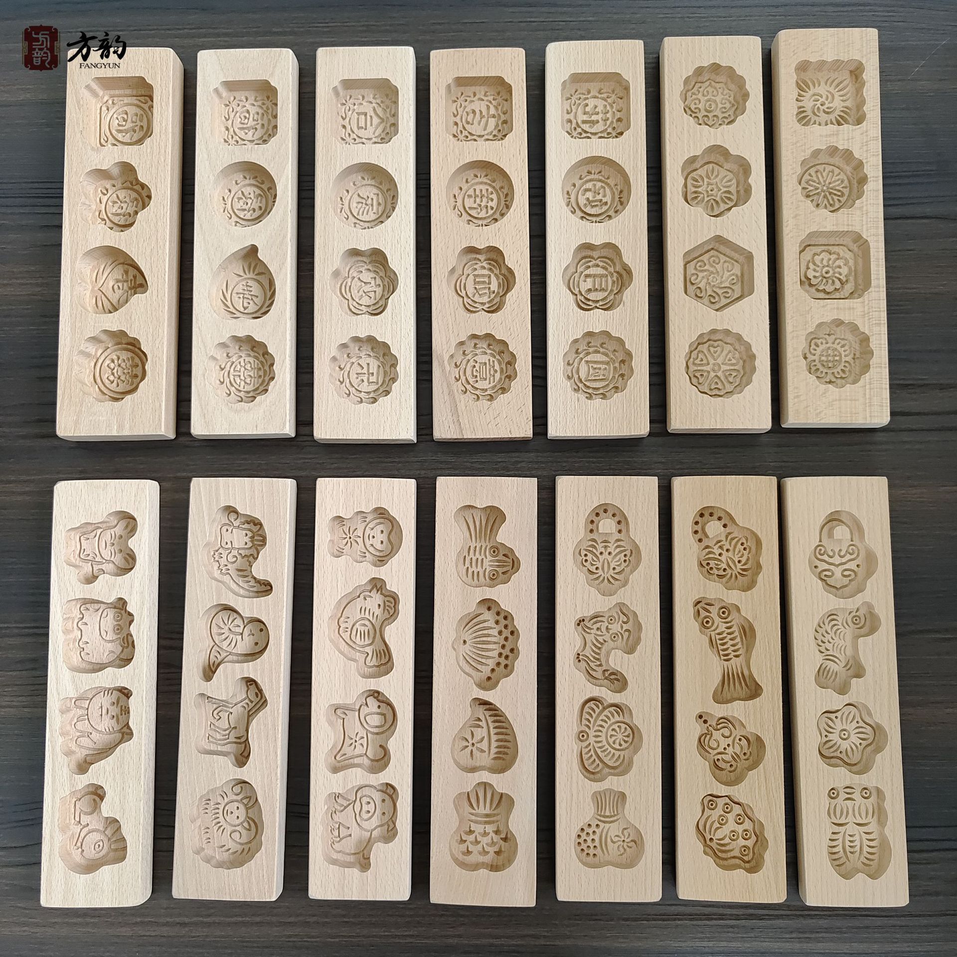 四孔模具花样馒头模具 实木质月饼模具糕点饽饽卡饼干模具DIY模具