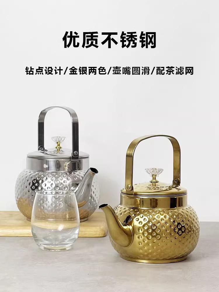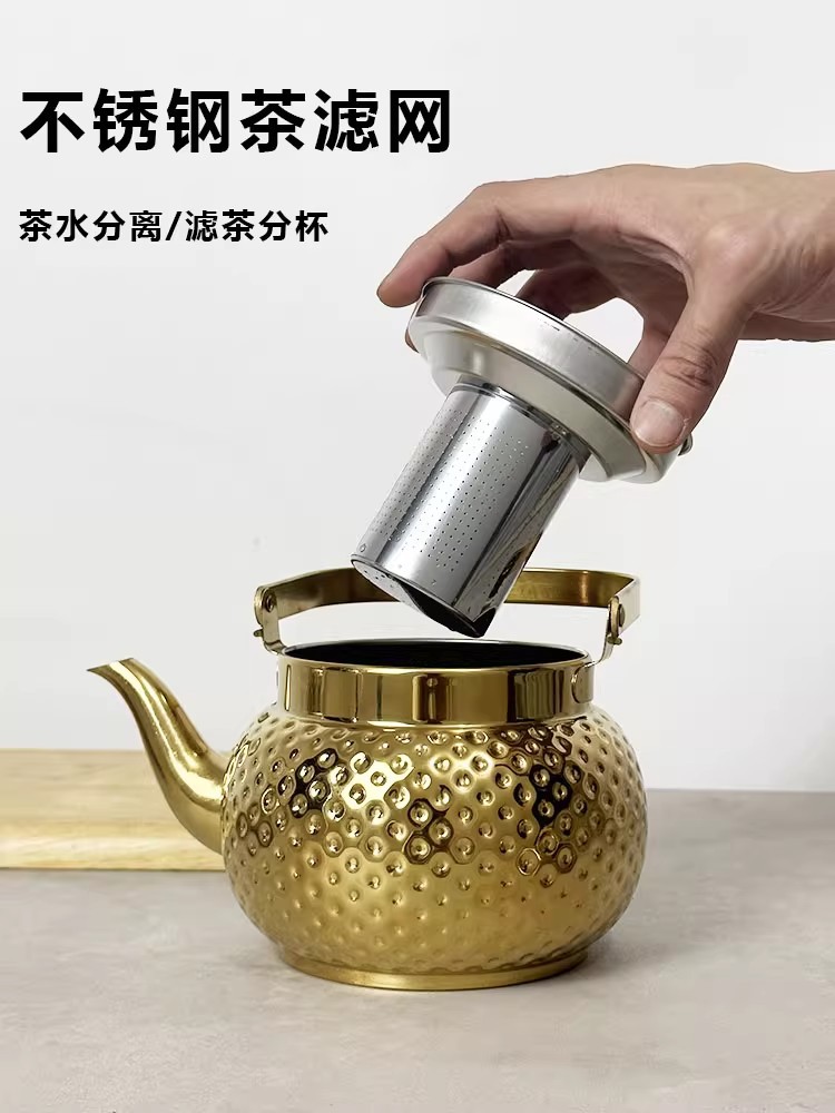 水壶不锈钢锤纹壶带滤网茶壶饭店酒店泡茶壶烧水壶煮茶壶茶水壶