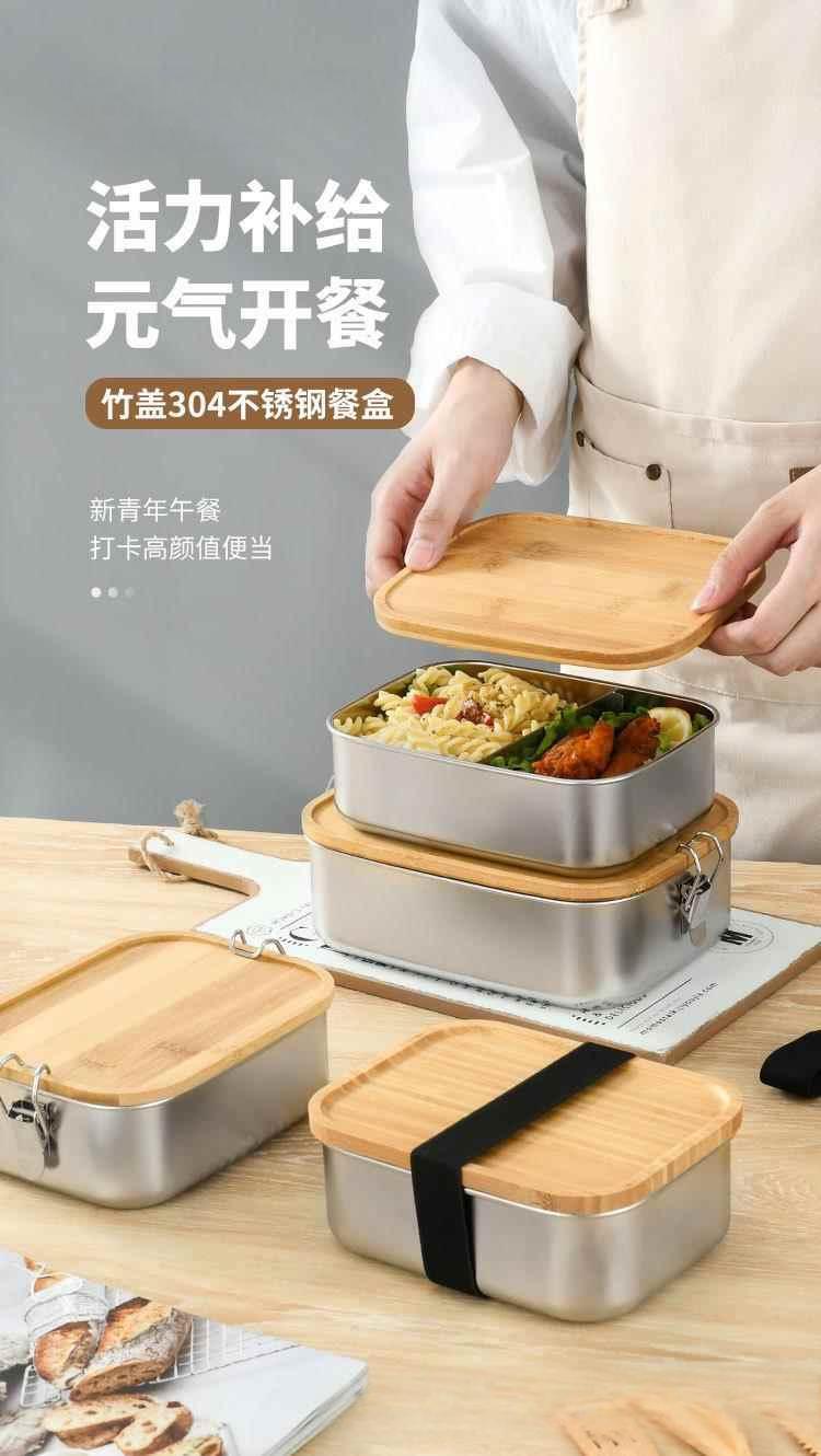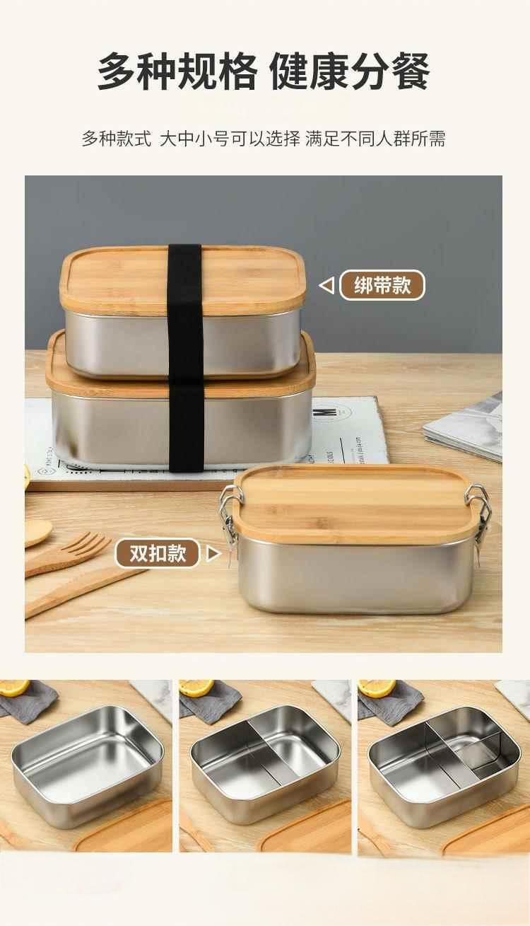 便当盒野餐盒午餐盒304不锈钢竹食品木盖日式饭盒上班族学生户外