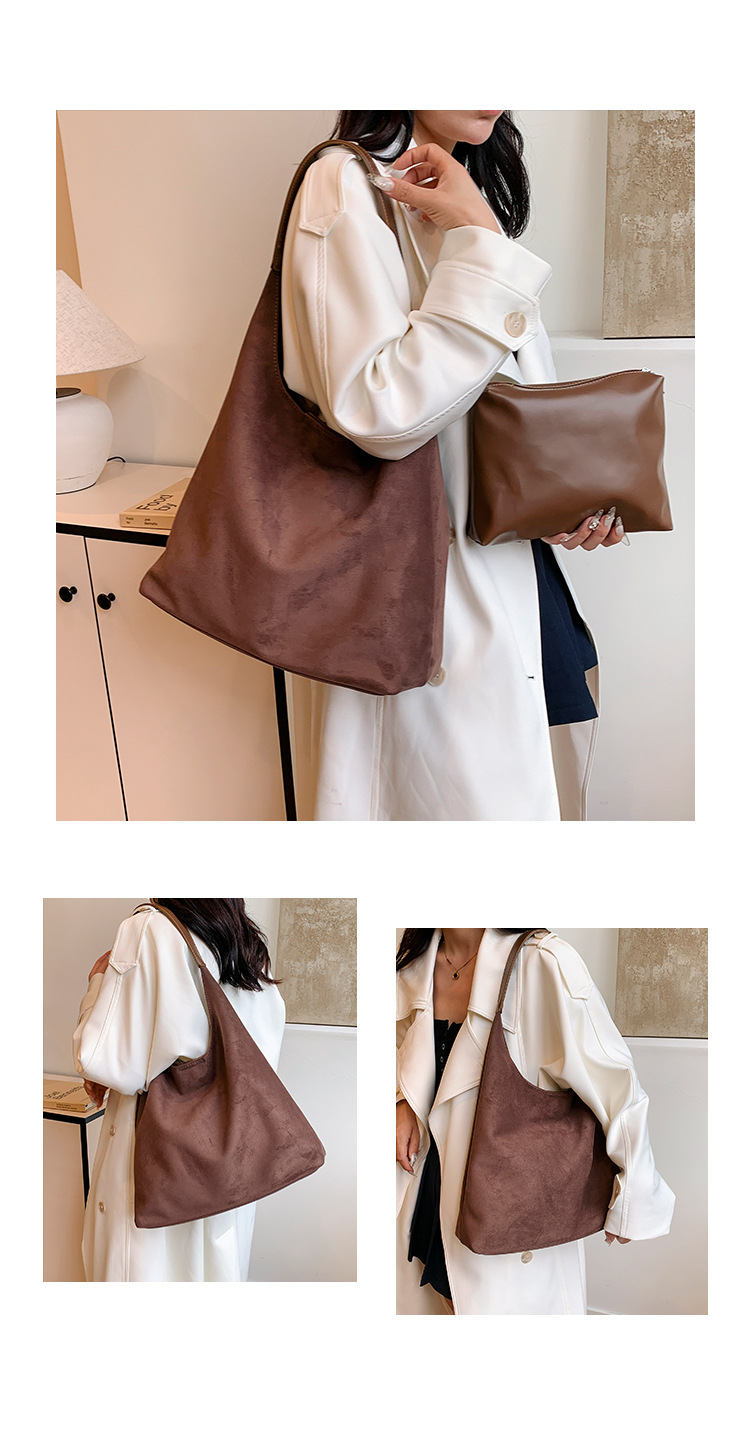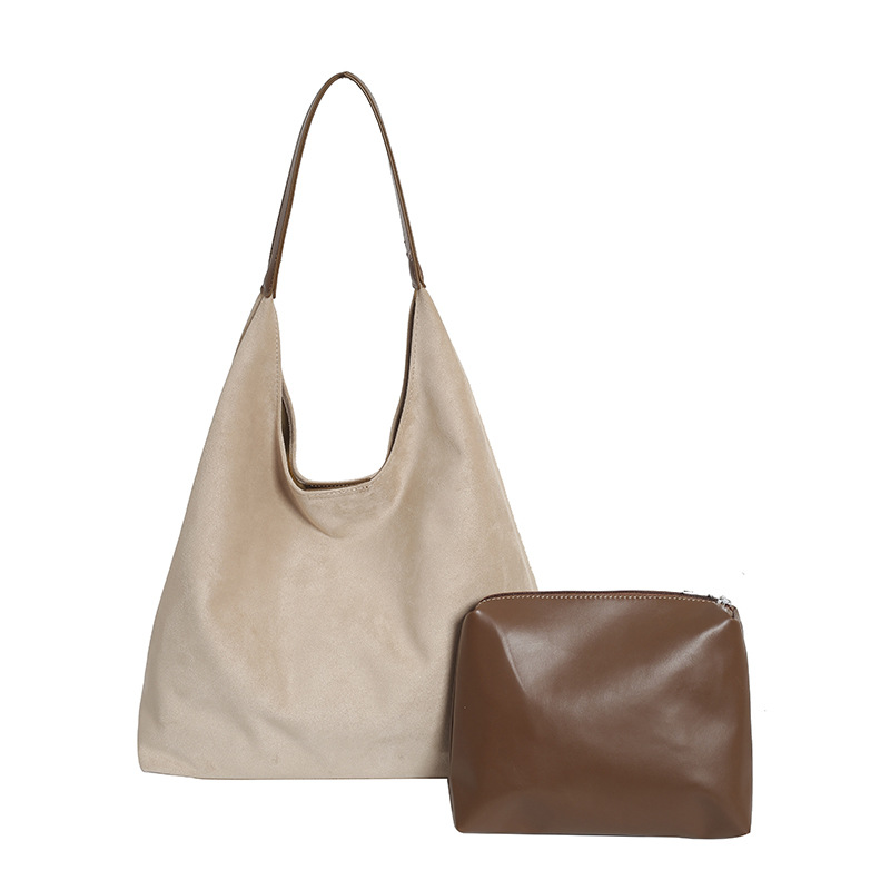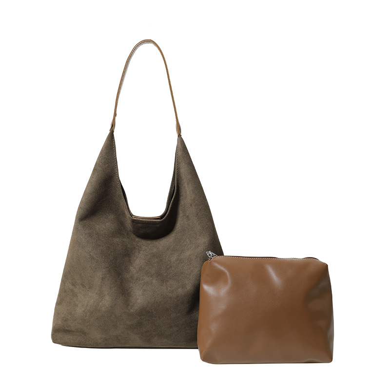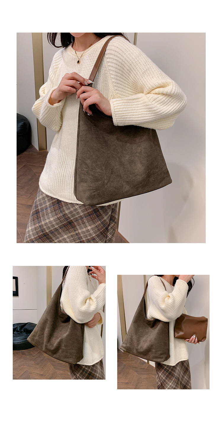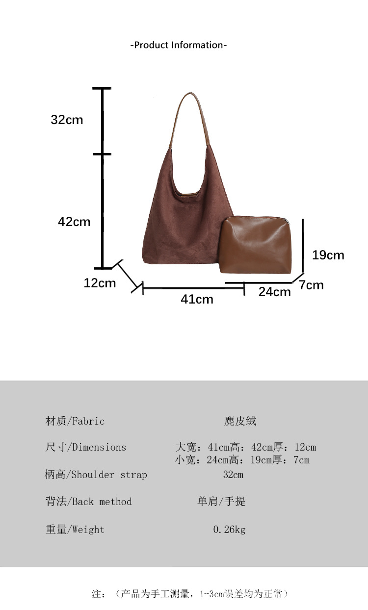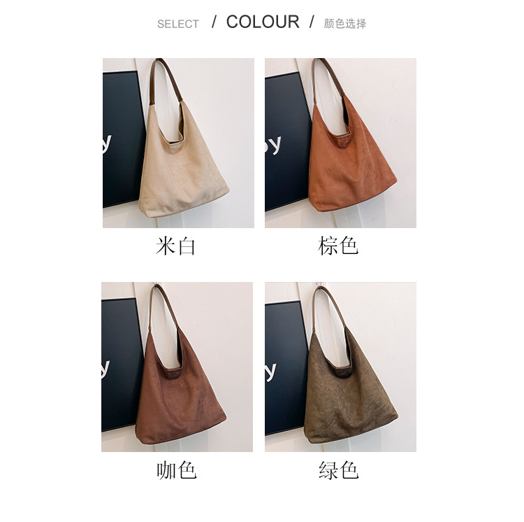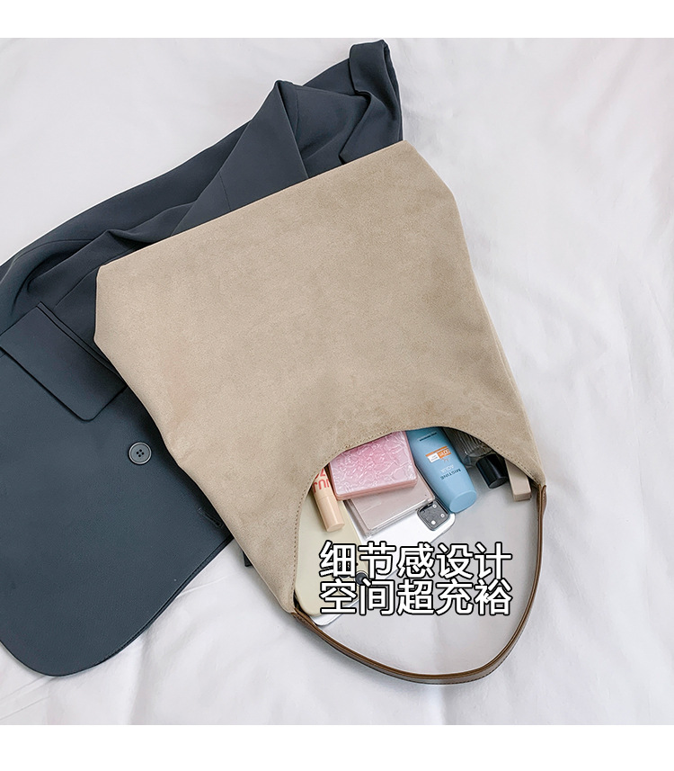 厂家小众麂皮绒单肩包女新款简约百搭托特包磨砂包包女轻奢水桶包