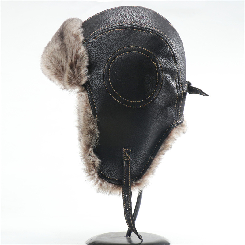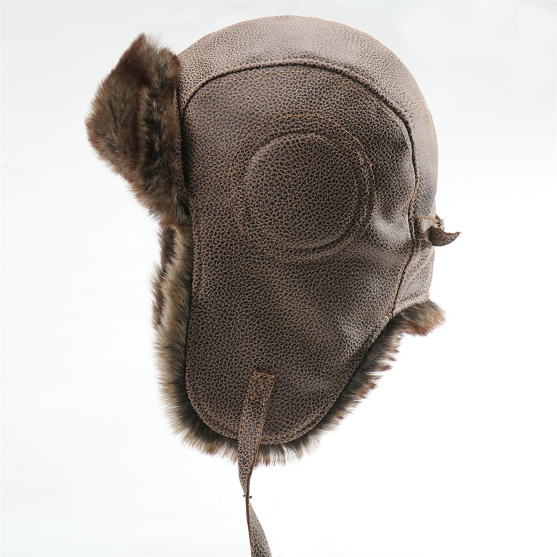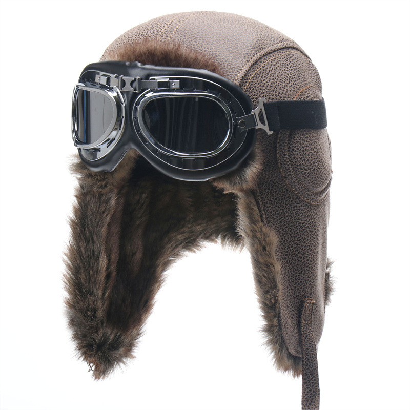 新款皮革护目镜雷锋帽防风护耳机车帽男女户外帽加厚东北保暖帽