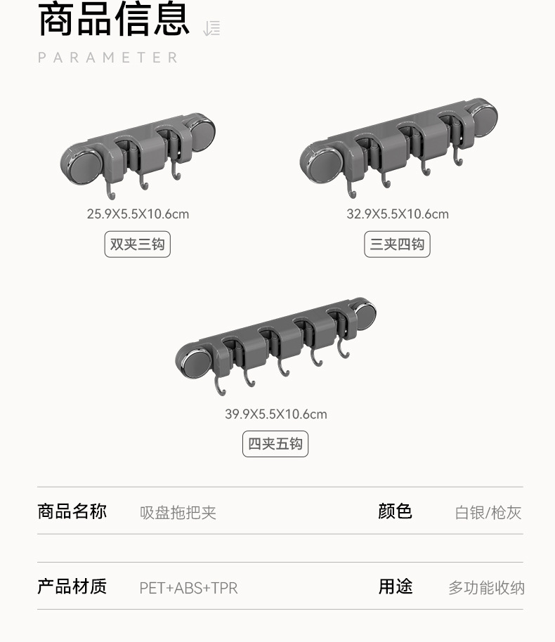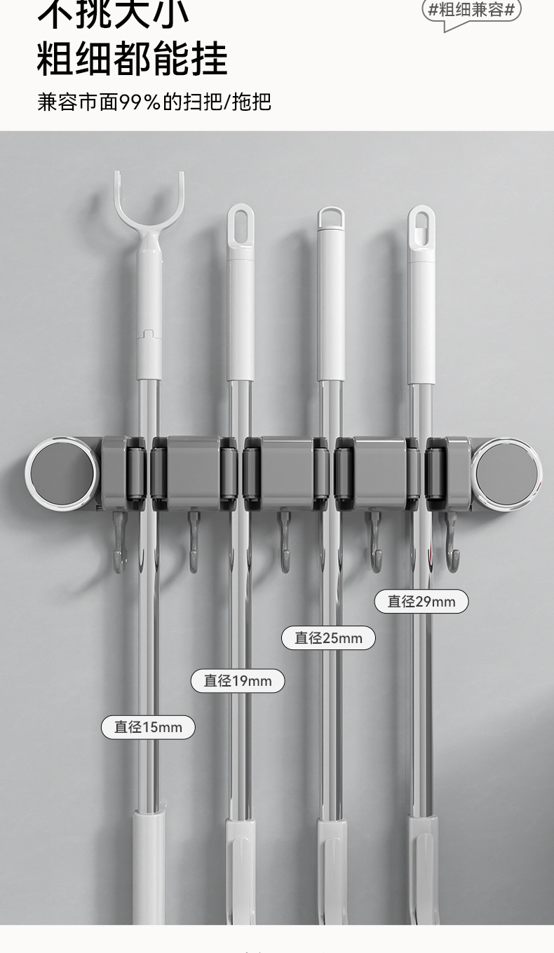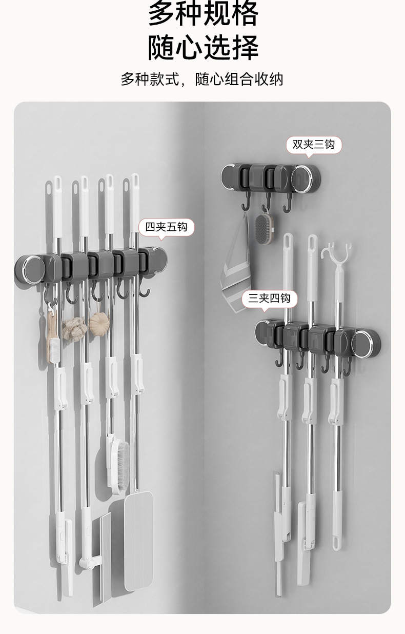 拖把壁挂夹吸盘式免打孔强力固定器卫生间浴室门后扫把拖布置物架
