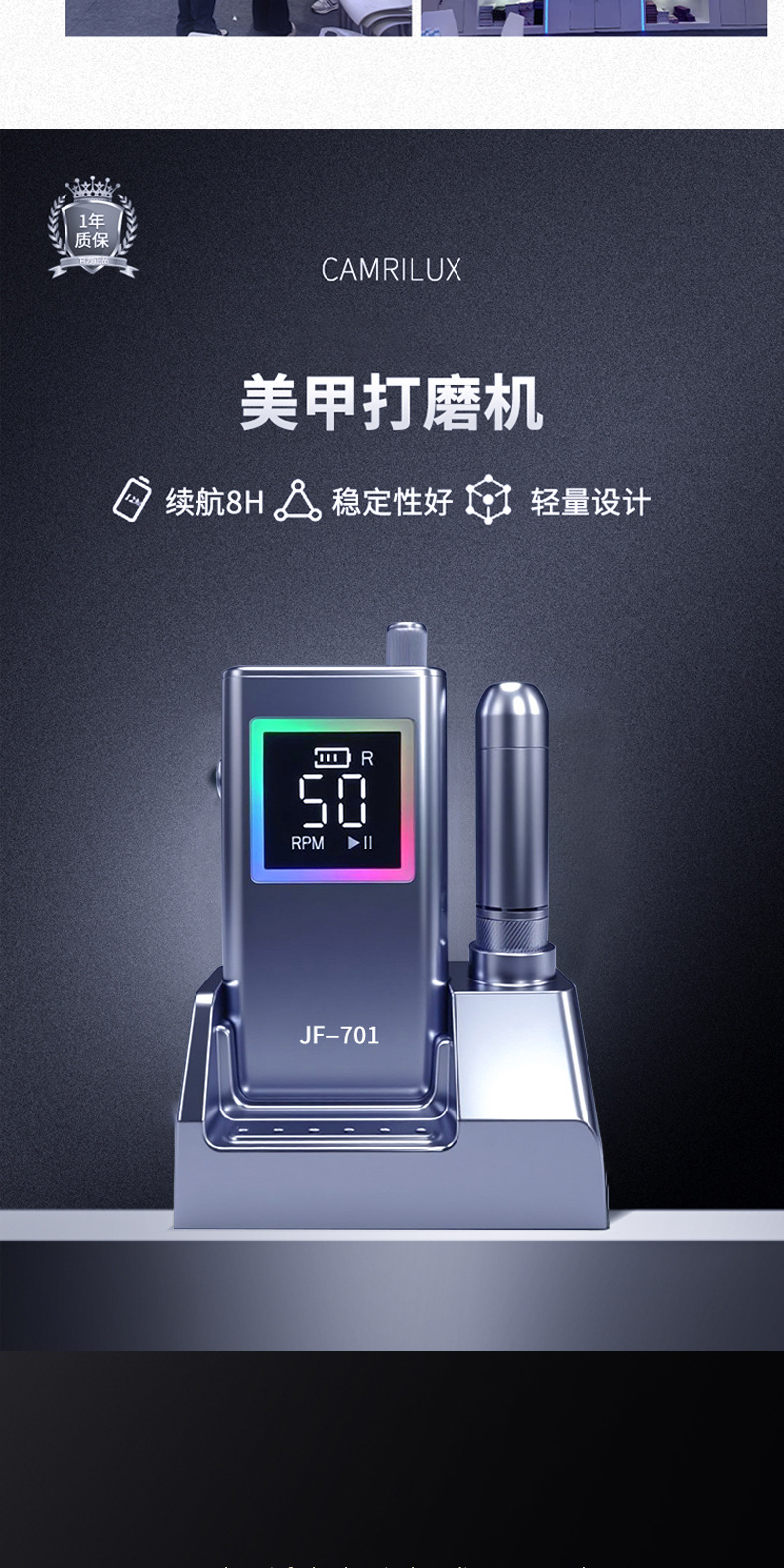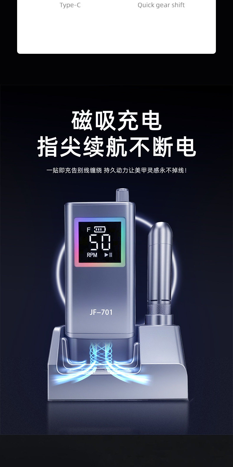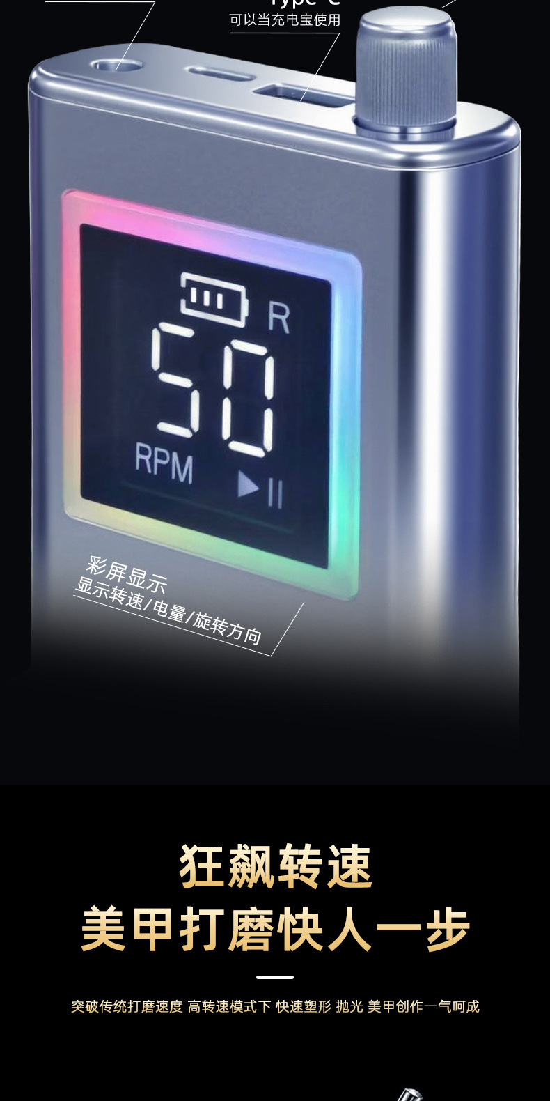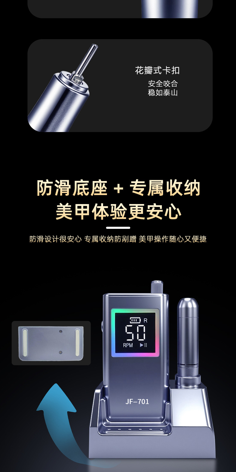 跨境新品磁吸充电电动磨甲器大屏数显底座收纳卸甲打磨机美甲工具