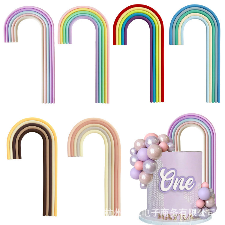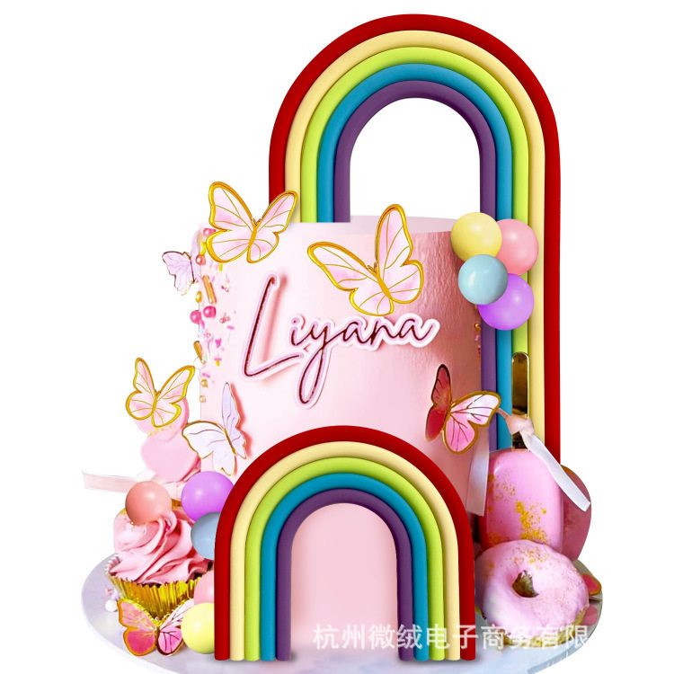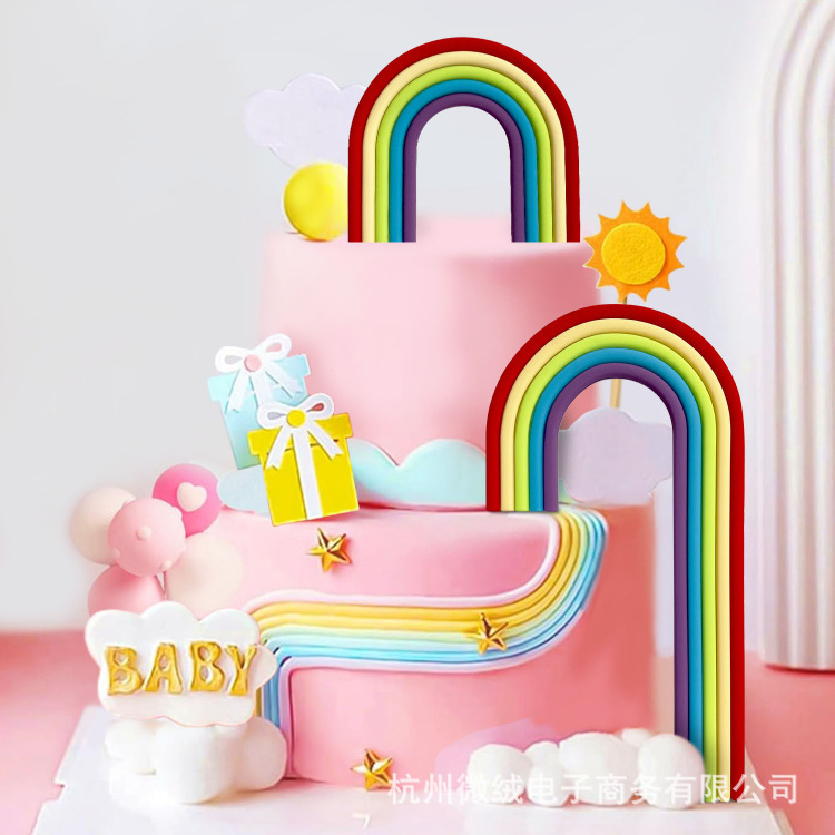 跨境热销立体彩虹软陶蛋糕装饰Boho系列INS风派对烘焙蛋糕插件