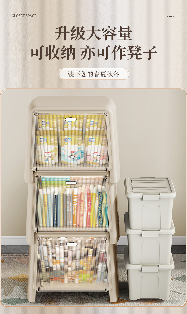 多功能可叠放透明收纳凳整理箱收纳箱换鞋凳塑料储物凳儿童收纳凳