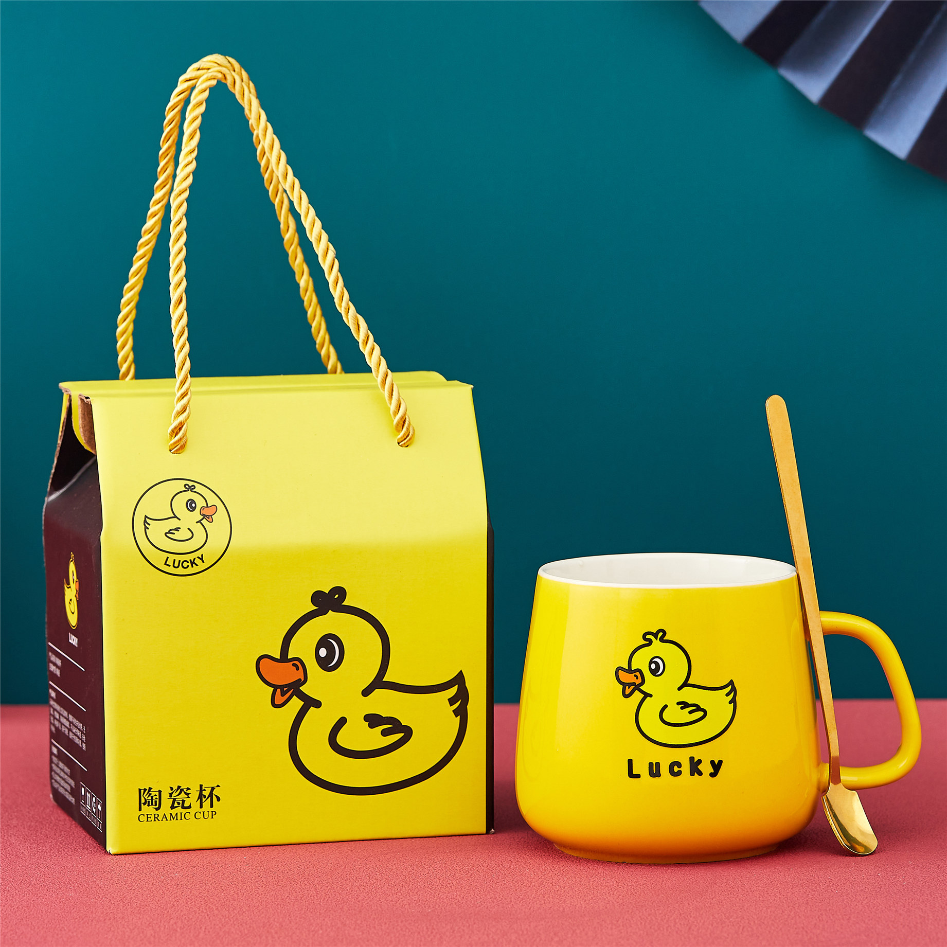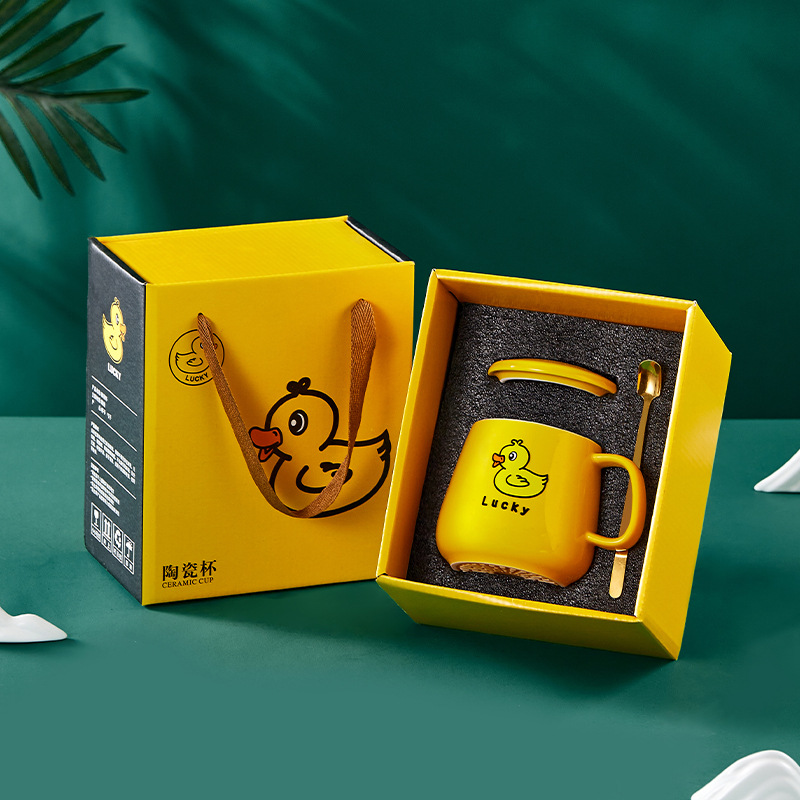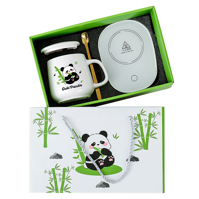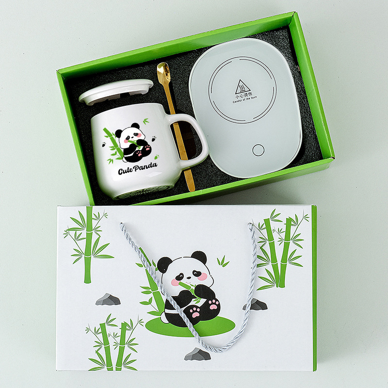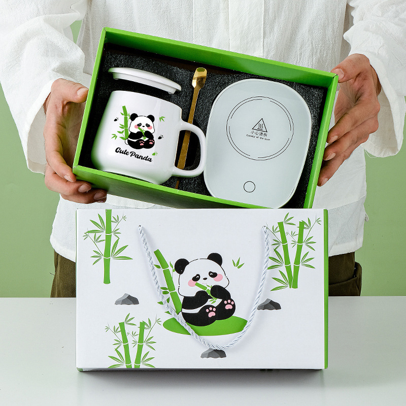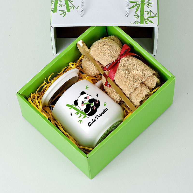 商务实用小礼品卡通熊猫伴手礼套装陶瓷杯开业活动礼物水杯礼盒装