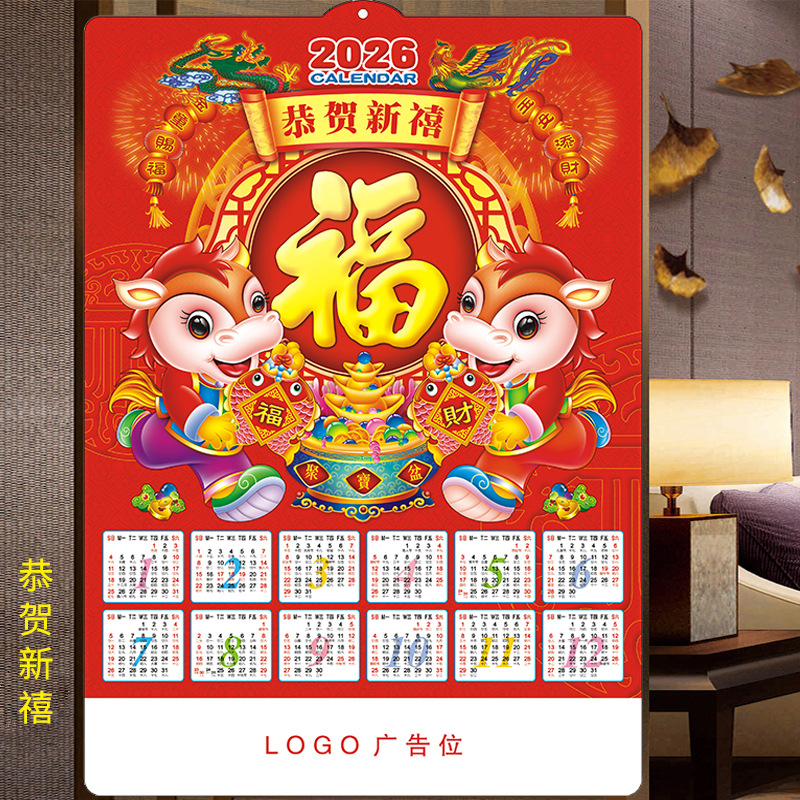 2026马年凹凸挂历批发立体福字日历广告3D三维年历印刷吸塑挂历
