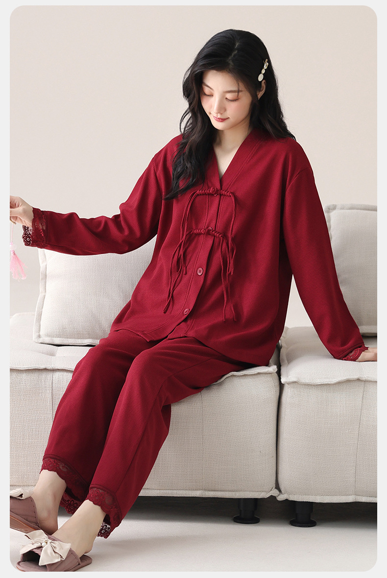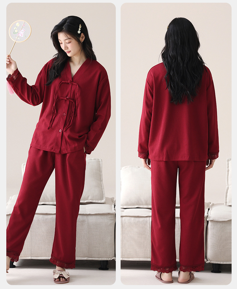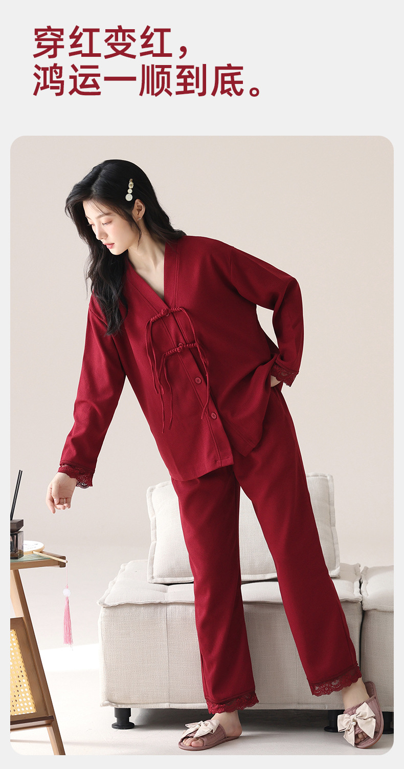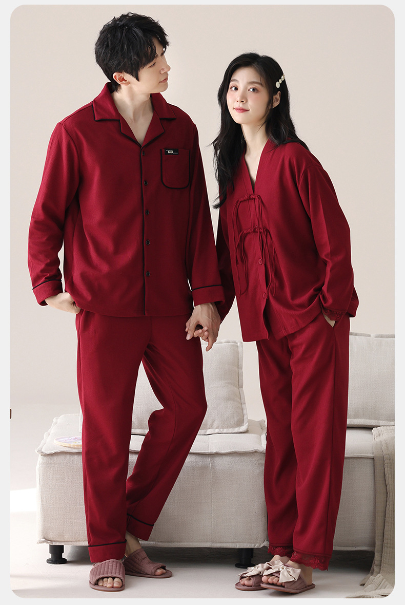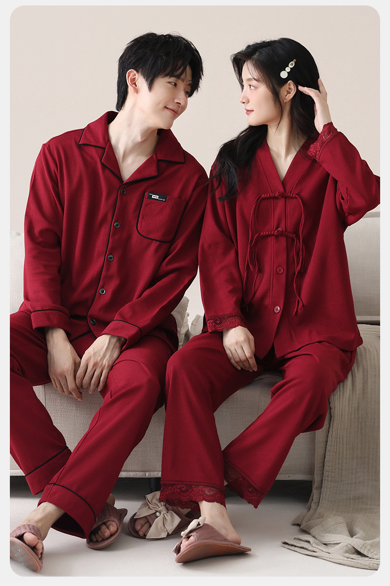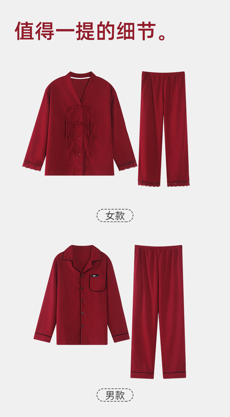 纯棉睡衣女春秋季情侣款新婚结婚红色本命年家居服男长袖保暖套装