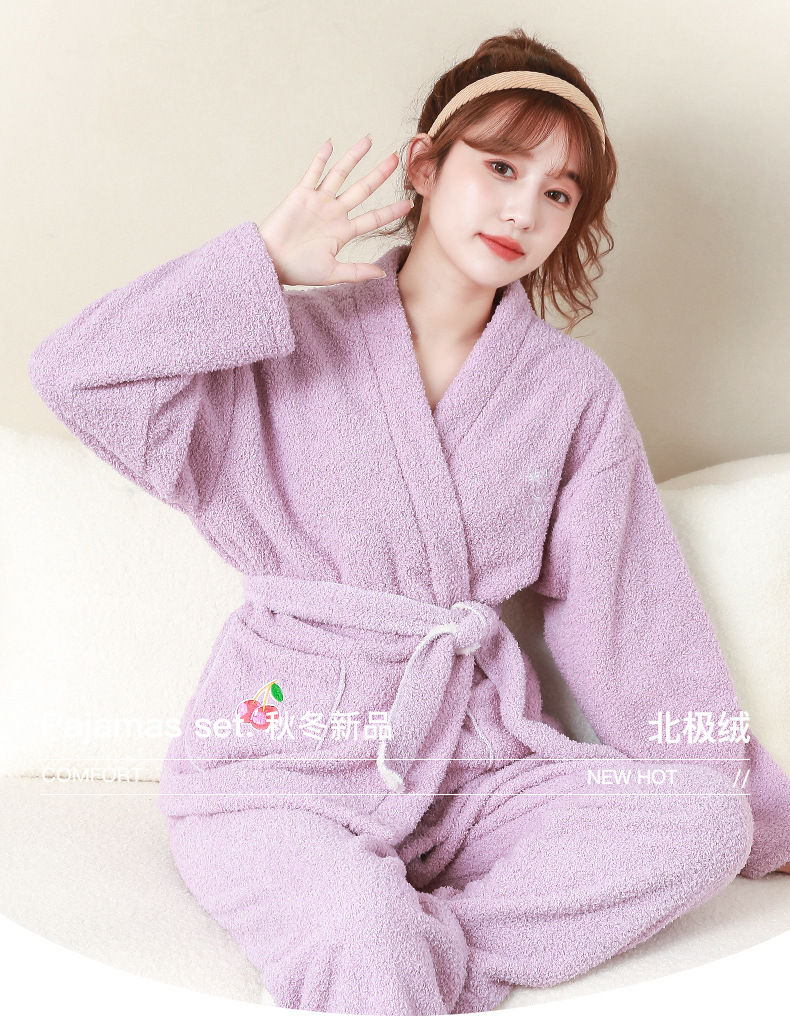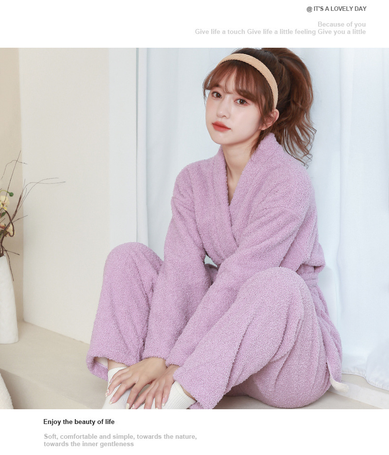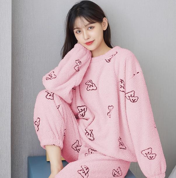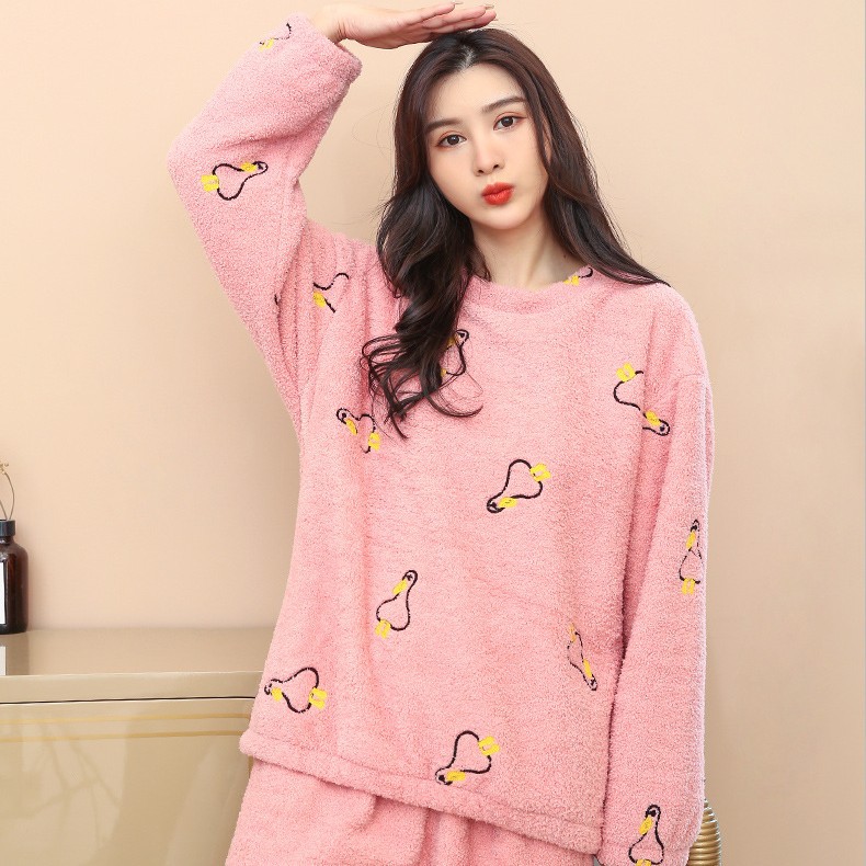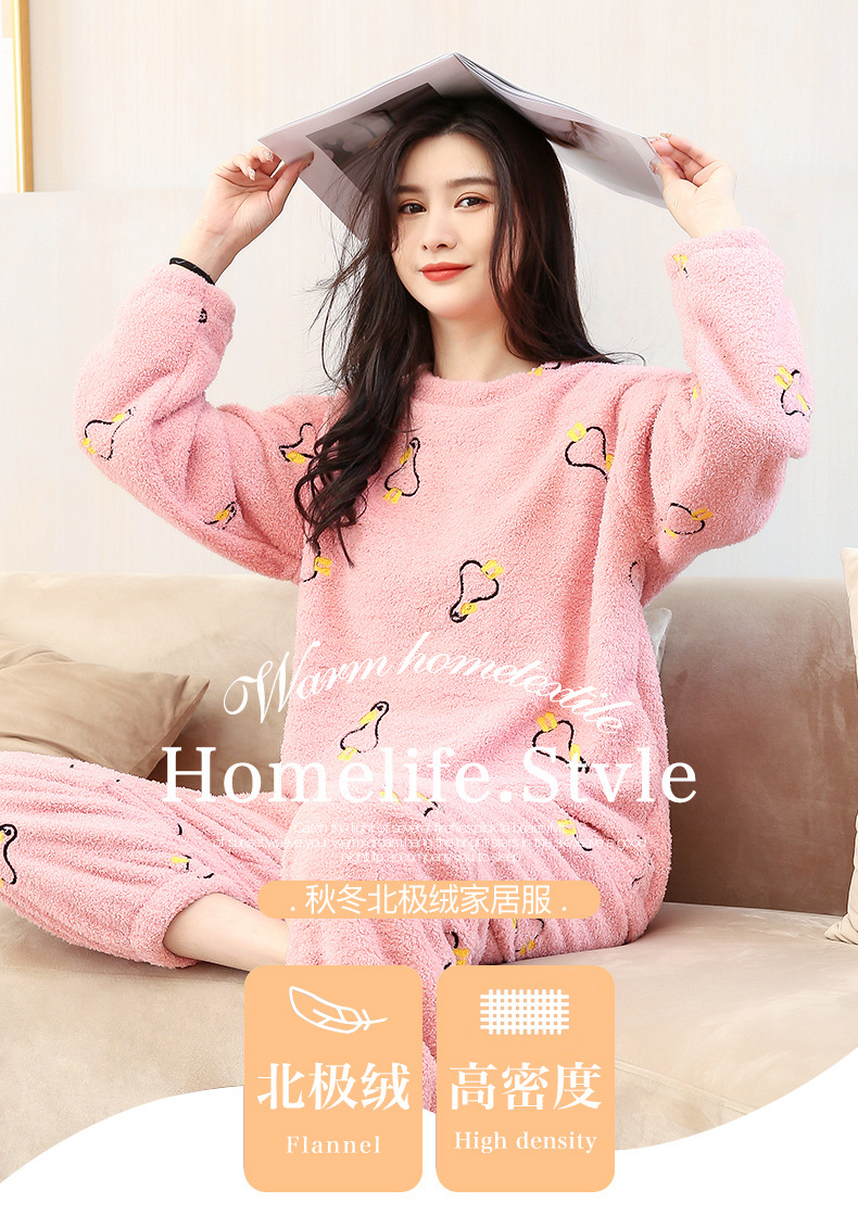 睡衣女士2025年秋冬季加绒加厚珊瑚绒冬天保暖家居服两件套装绣花
