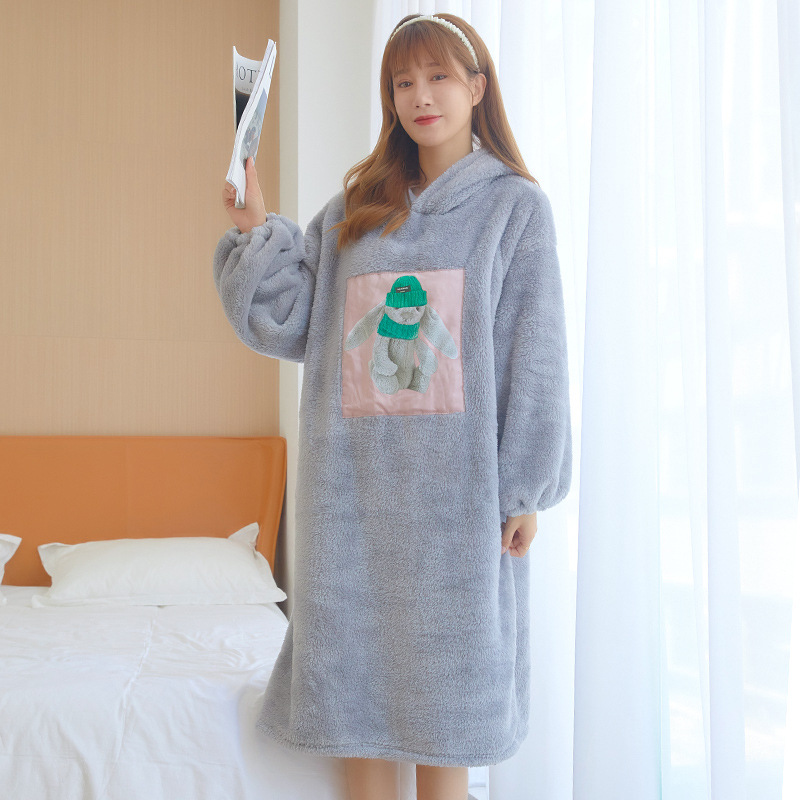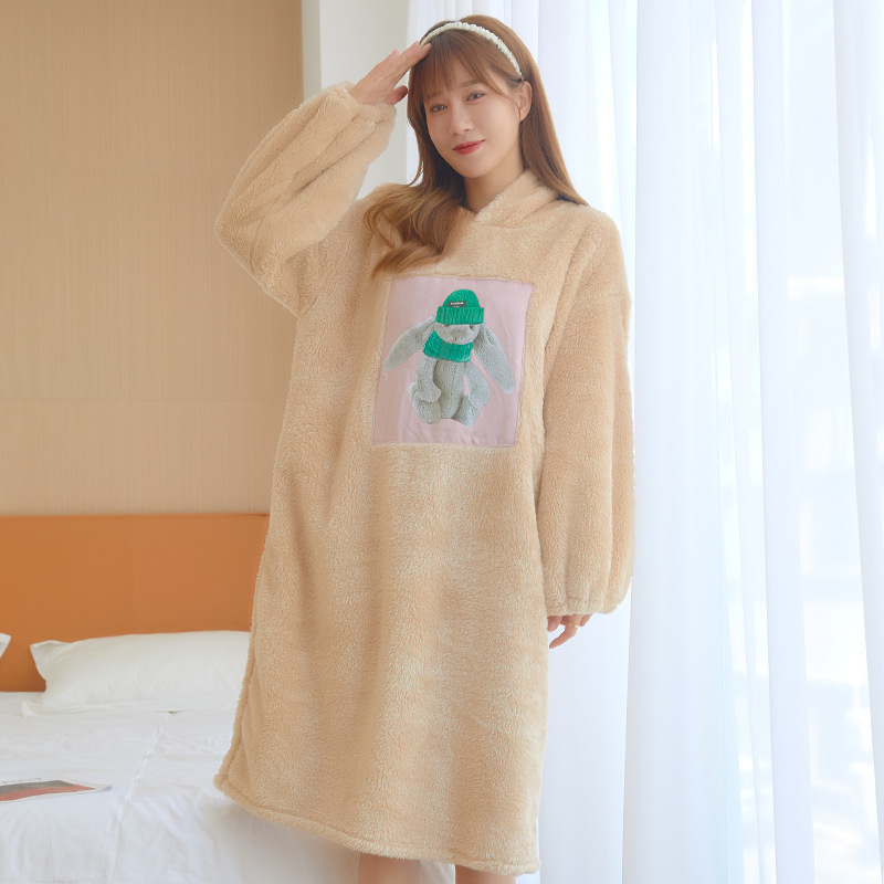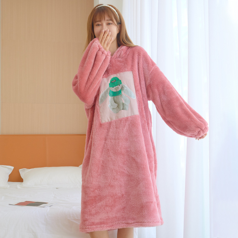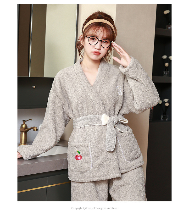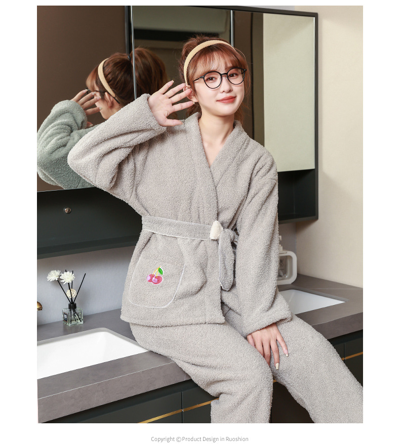 睡衣女士2025年秋冬季加绒加厚珊瑚绒冬天保暖家居服两件套装绣花