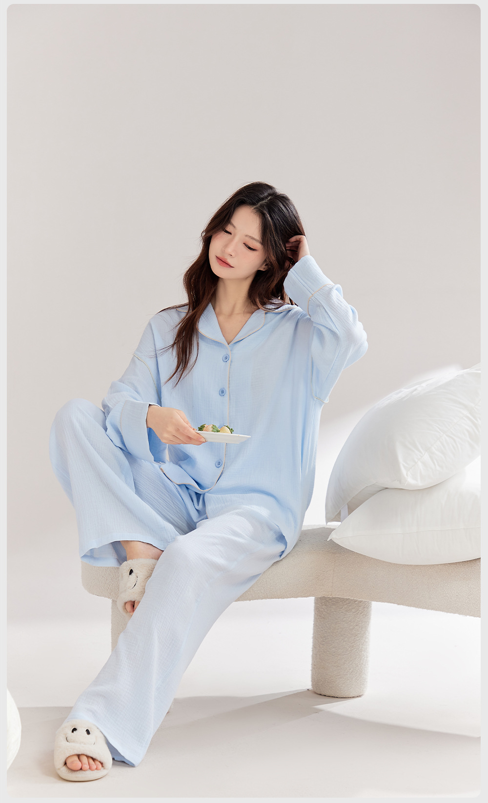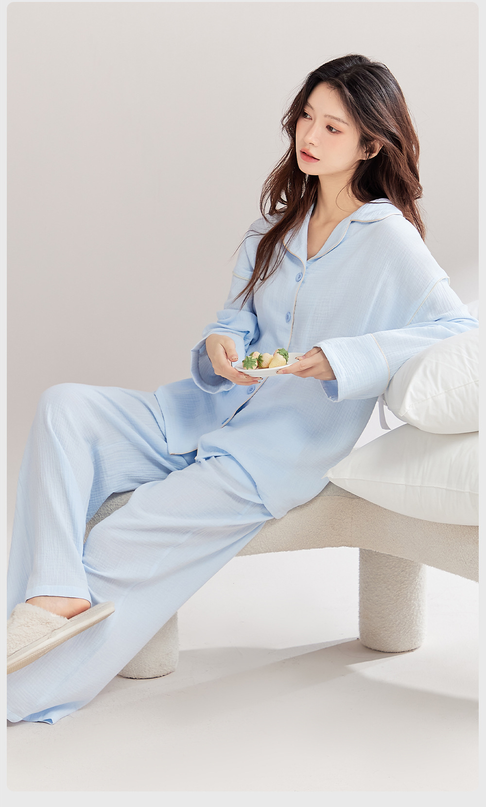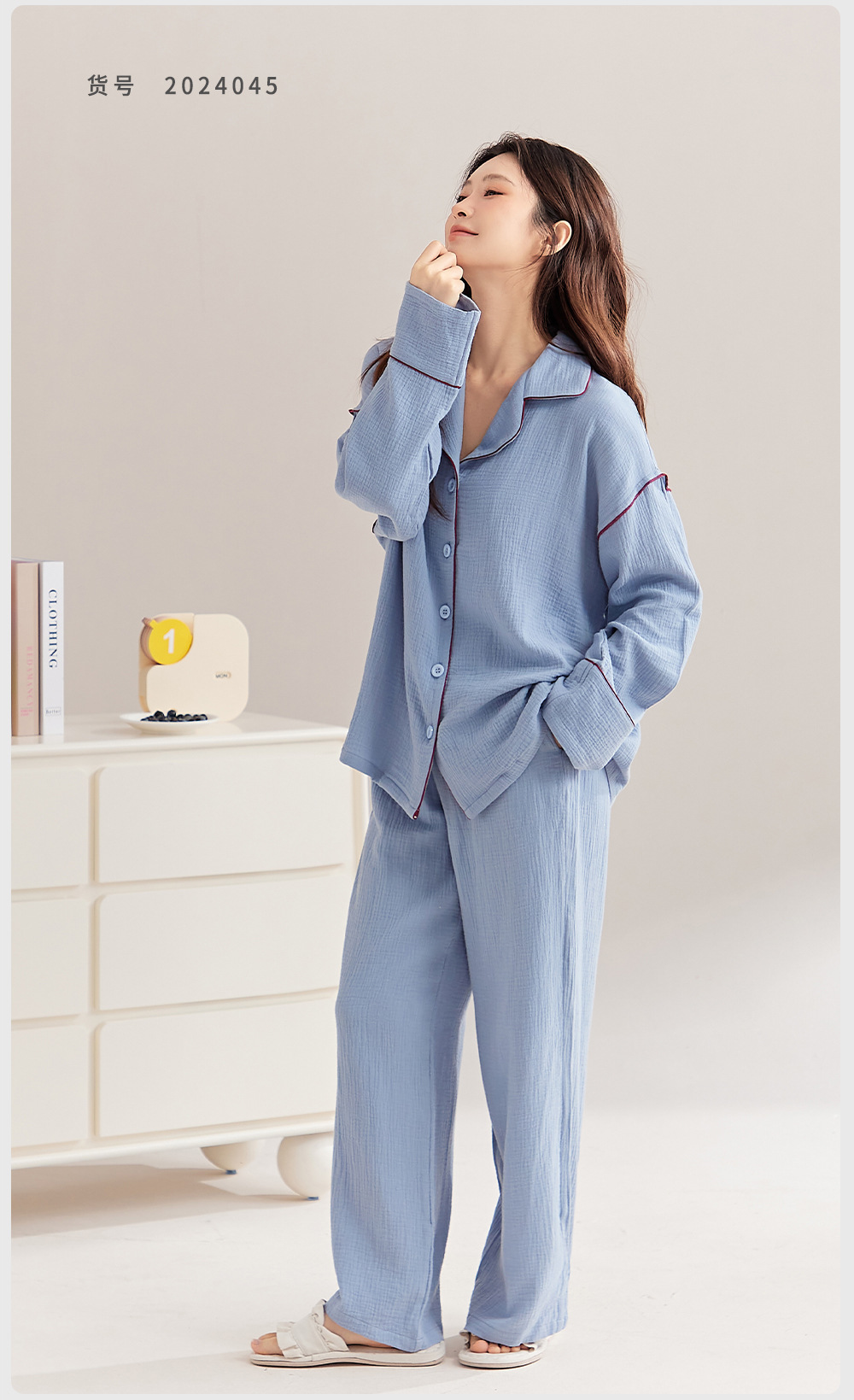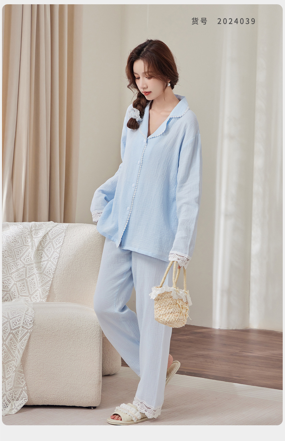 纯棉a类母婴级春秋季吸汗纱布睡衣月子服月子睡衣哺乳衣宽松版